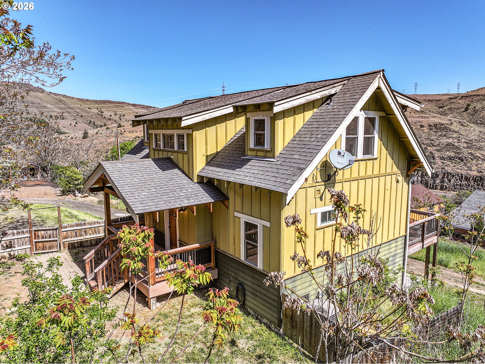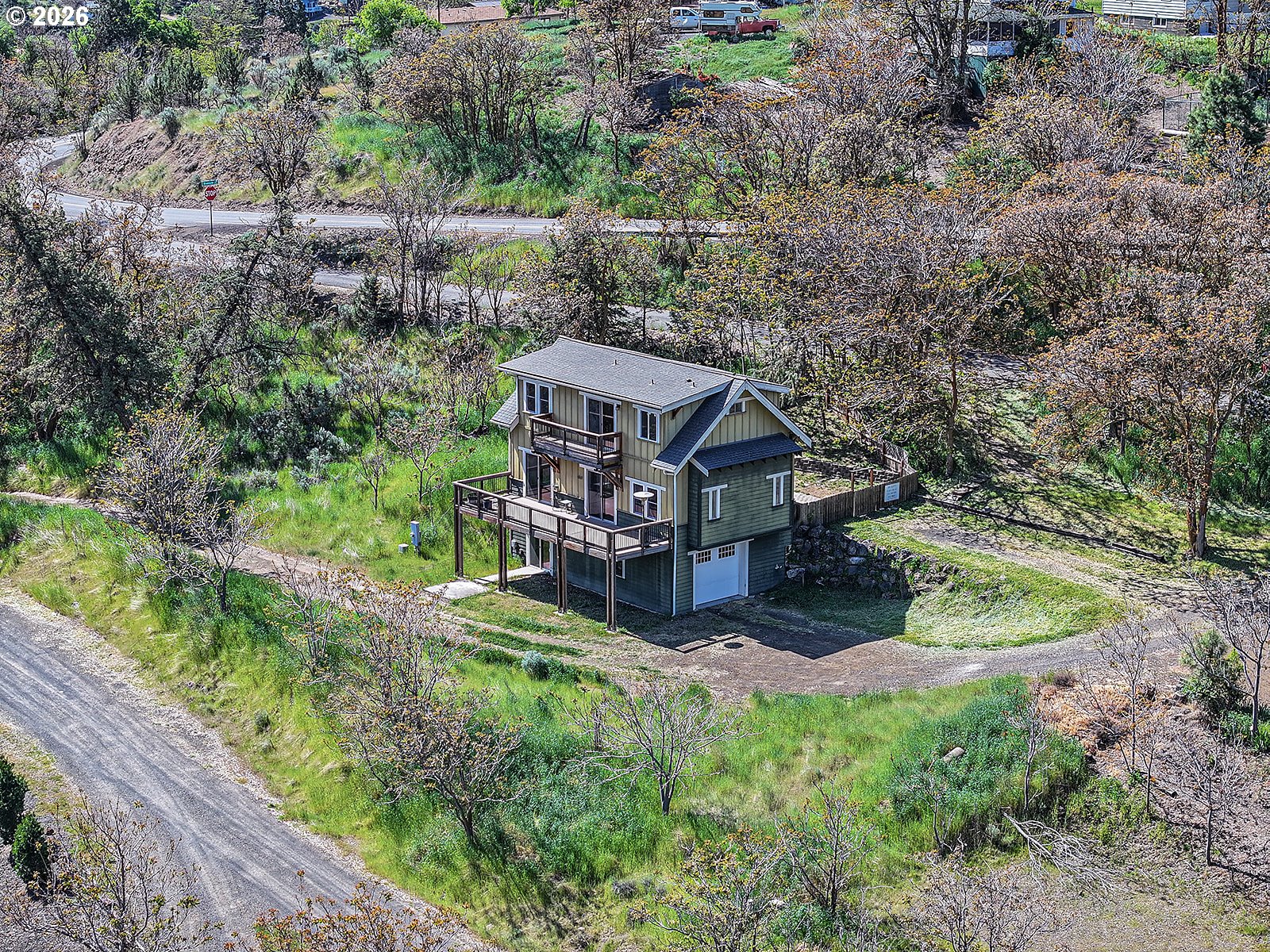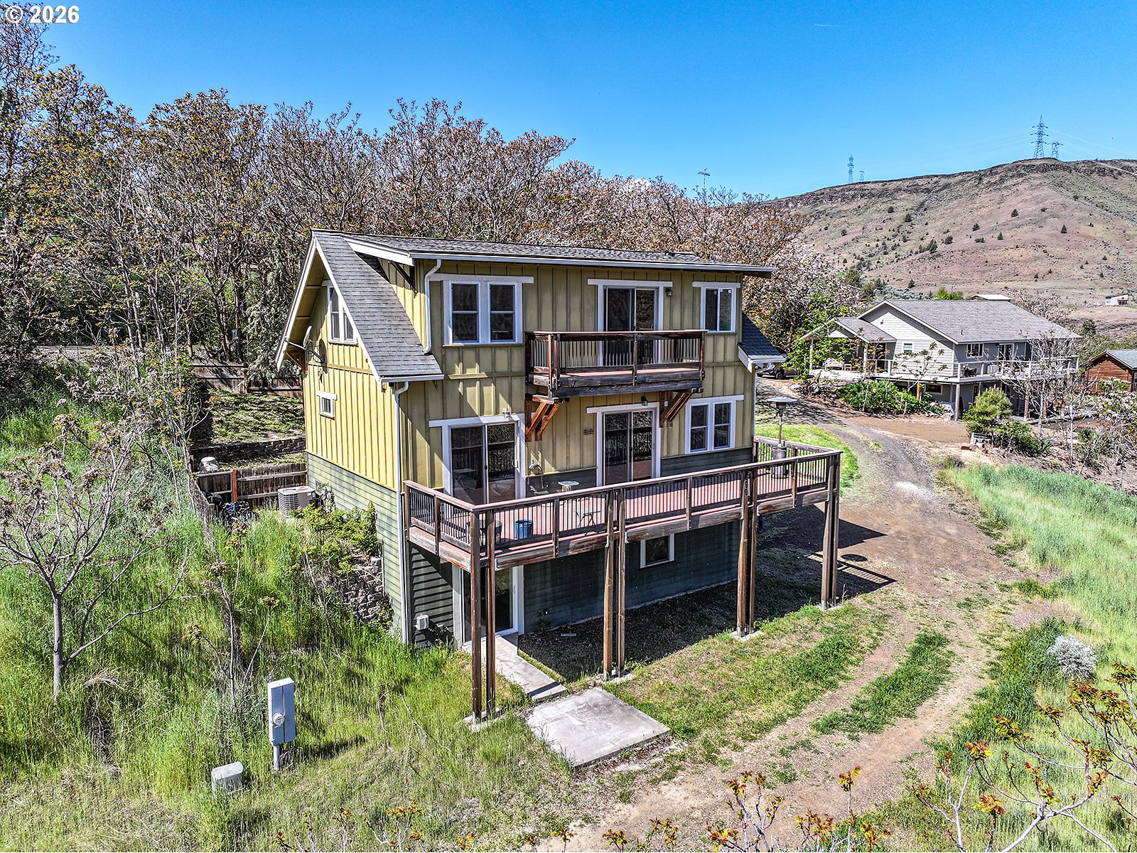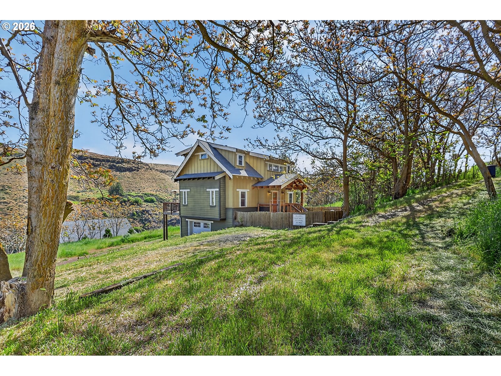 Stunning riverfront retreat on the Deschutes River with sweeping views and a rare blend of modern comfort and peaceful surroundings. Built in 2006, this modern Craftsman-style home is ideal as a full-time residence or weekend escape. This three-story home features updated bamboo flooring on the first floor and rich hickory on the second, creating a warm, cohesive aesthetic. Natural light fills the home, complemented by the calming sound of the rushing river.The second-floor primary bedroom offers a serene retreat with a clawfoot soaking tub, walk-in shower, vaulted ceilings, and a private deck overlooking the river. A second upstairs bedroom includes a custom hickory-topped built-in. The first-floor bedroom opens directly to the main deck, and a fourth flex room in the walkout basement is perfect for an office or hobby space. The kitchen features granite countertops, a breakfast bar, and updated appliances, open to the main living area for easy entertaining.Outdoor living shines with multiple decks, a fenced yard, and an additional 20 feet of natural hillside with expansion potential. Bonus highlights include an oversized single-car garage with a 240V outlet for Level 2 EV charging or workshop use, ample driveway parking, an energy-efficient heat pump, updated vinyl windows with improved insulation, and gas line infrastructure for a range, future fireplace, and outdoor grilling.