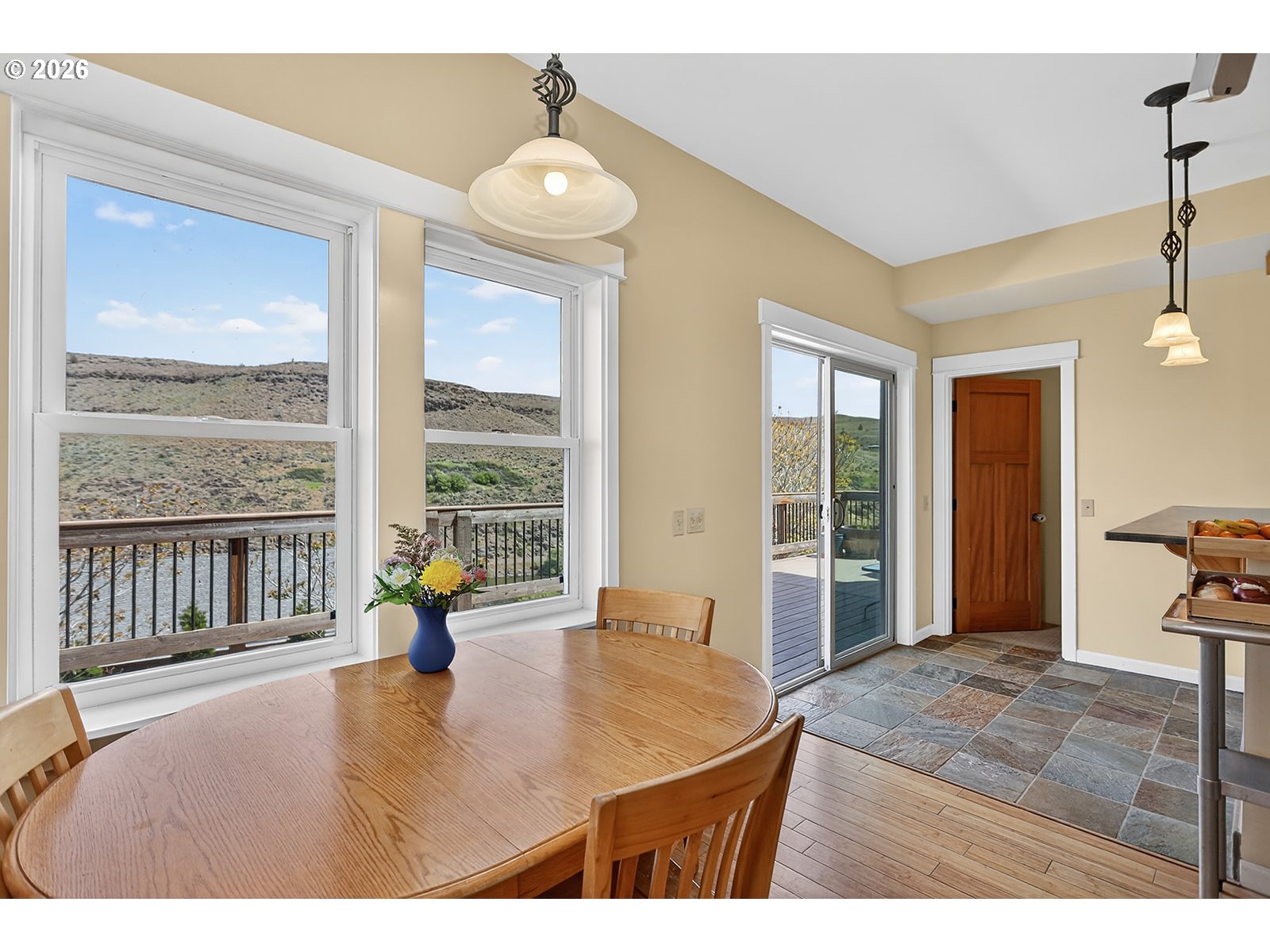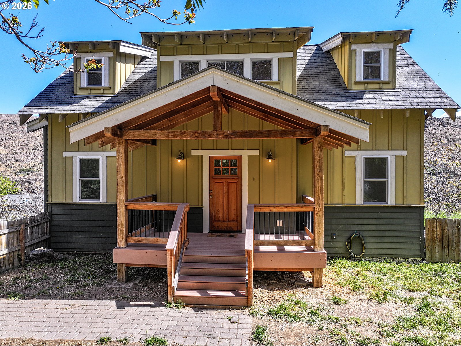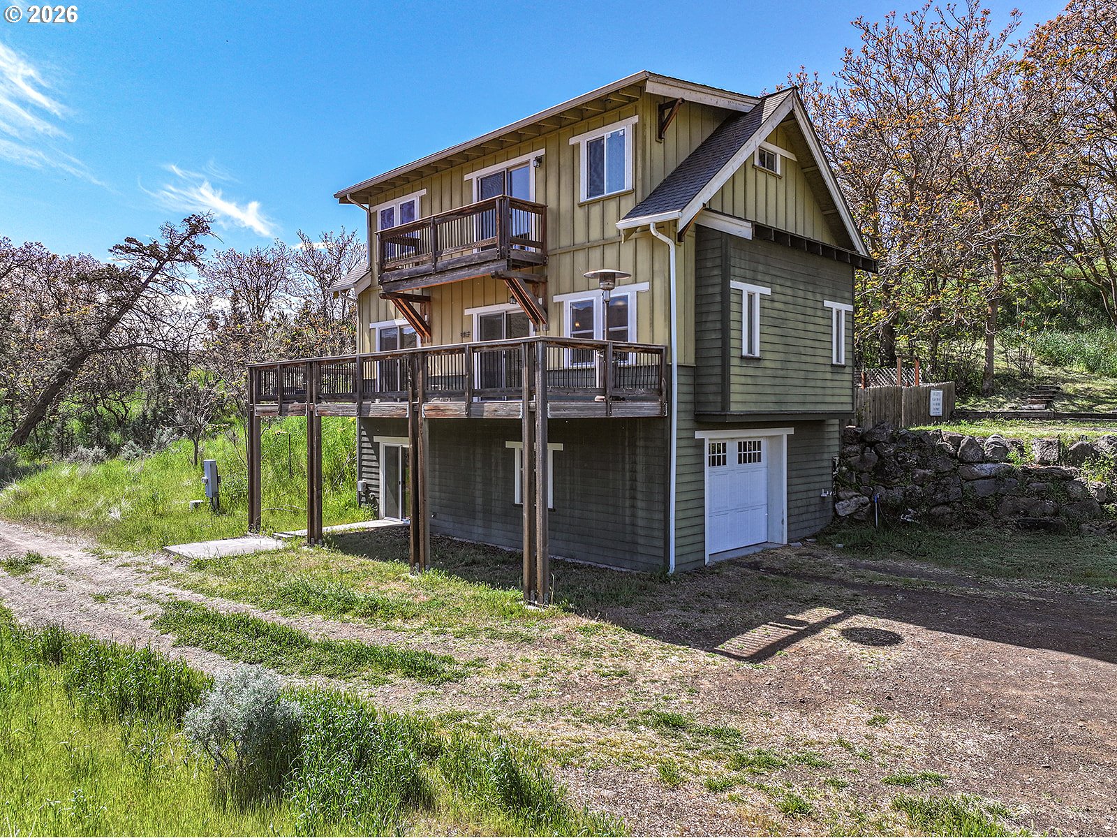 Stunning riverfront retreat on the Deschutes River with sweeping views and a rare blend of modern comfort and peaceful surroundings. Built in 2006, this modern Craftsman-style home is ideal as a full-time residence or weekend escape. This three-story home features updated bamboo flooring on the first floor and rich hickory on the second, creating a warm, cohesive aesthetic. Natural light fills the home, complemented by the calming sound of the rushing river.The second-floor primary bedroom offers a serene retreat with a clawfoot soaking tub, walk-in shower, vaulted ceilings, and a private deck overlooking the river. A second upstairs bedroom includes a custom hickory-topped built-in. The first-floor bedroom opens directly to the main deck, and a fourth flex room in the walkout basement is perfect for an office or hobby space. The kitchen features granite countertops, a breakfast bar, and updated appliances, open to the main living area for easy entertaining.Outdoor living shines with multiple decks, a fenced yard, and an additional 20 feet of natural hillside with expansion potential. Bonus highlights include an oversized single-car garage with a 240V outlet for Level 2 EV charging or workshop use, ample driveway parking, an energy-efficient heat pump, updated vinyl windows with improved insulation, and gas line infrastructure for a range, future fireplace, and outdoor grilling.