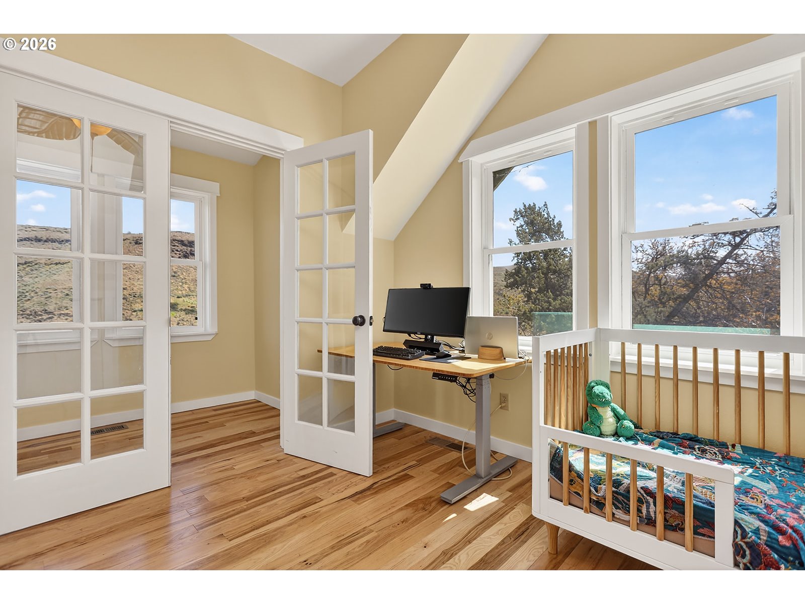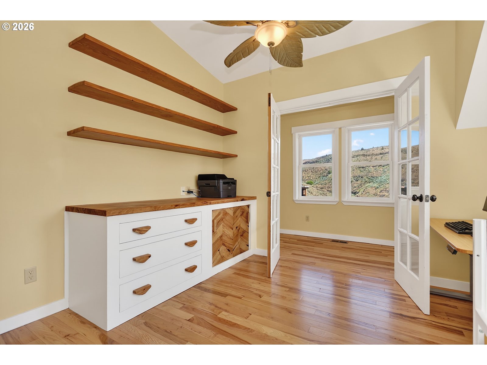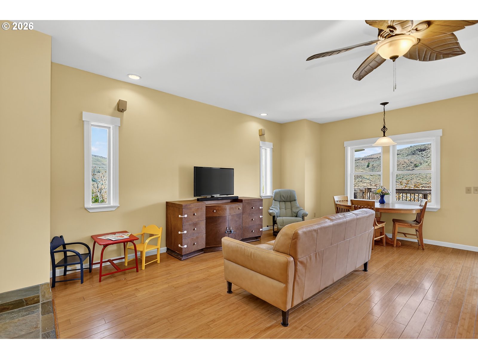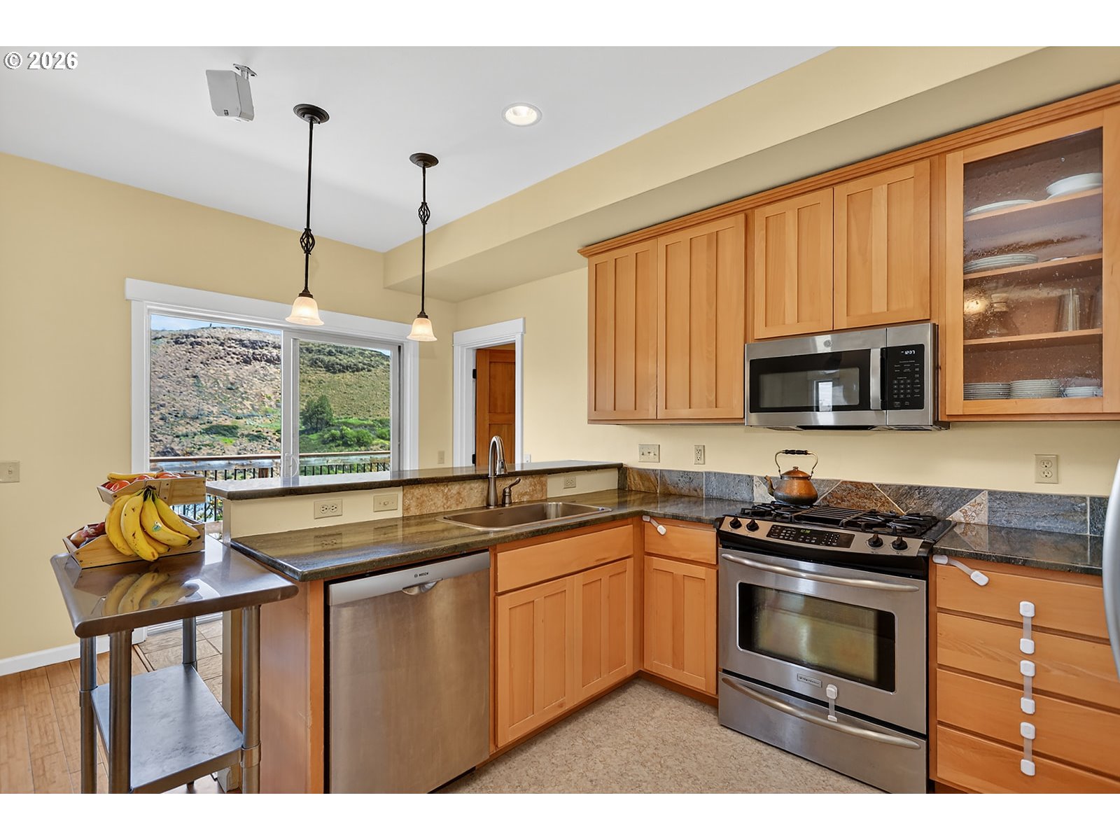 Stunning riverfront retreat on the Deschutes River with sweeping views and a rare blend of modern comfort and peaceful surroundings. Built in 2006, this modern Craftsman-style home is ideal as a full-time residence or weekend escape. This three-story home features updated bamboo flooring on the first floor and rich hickory on the second, creating a warm, cohesive aesthetic. Natural light fills the home, complemented by the calming sound of the rushing river.The second-floor primary bedroom offers a serene retreat with a clawfoot soaking tub, walk-in shower, vaulted ceilings, and a private deck overlooking the river. A second upstairs bedroom includes a custom hickory-topped built-in. The first-floor bedroom opens directly to the main deck, and a fourth flex room in the walkout basement is perfect for an office or hobby space. The kitchen features granite countertops, a breakfast bar, and updated appliances, open to the main living area for easy entertaining.Outdoor living shines with multiple decks, a fenced yard, and an additional 20 feet of natural hillside with expansion potential. Bonus highlights include an oversized single-car garage with a 240V outlet for Level 2 EV charging or workshop use, ample driveway parking, an energy-efficient heat pump, updated vinyl windows with improved insulation, and gas line infrastructure for a range, future fireplace, and outdoor grilling.