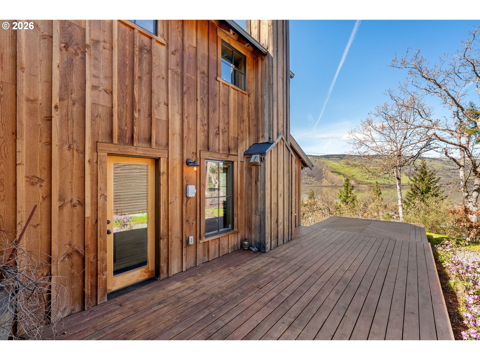 Perched above the Columbia River on a scenic bluff, this beautifully crafted modern Craftsman captures breathtaking, unobstructed views of the river, Coyote Wall, and the dramatic Syncline. Designed to complement the natural beauty of the Gorge, the home features classic Northwest architecture with warm cedar board-and-batten siding and high-quality finishes throughout.This 3-bedroom, 2-bath home offers an open-concept layout filled with natural light. Expansive windows frame ever-changing river vistas and seasonal colors, while the inviting living room features a cozy wood-burning fireplace—perfect for relaxing year-round. The well-appointed kitchen combines style and function with new appliances, including an induction range, along with quartz and butcher block countertops. Step out to the wind-protected deck, ideal for outdoor dining, entertaining, or simply taking in the views.The flexible floor plan includes a main-level bedroom and full bath, plus two vaulted upstairs bedrooms with an additional full bath—perfect for guests, remote work, or creative space. Thoughtful design ensures stunning views from nearly every room, creating a seamless connection to the surrounding landscape.A covered breezeway leads to the detached two-car garage, offering ample storage for vehicles and gear. The landscaped yard features mature plantings and raised garden beds, ideal for those who enjoy gardening and outdoor living.This property is just a short walk to downtown Mosier, with easy access to shops, dining, and coffee. Enjoy nearby recreation including the Historic Columbia River Highway and Mosier Waterfront Park. Enjoy a peaceful Gorge retreat with unforgettable views.