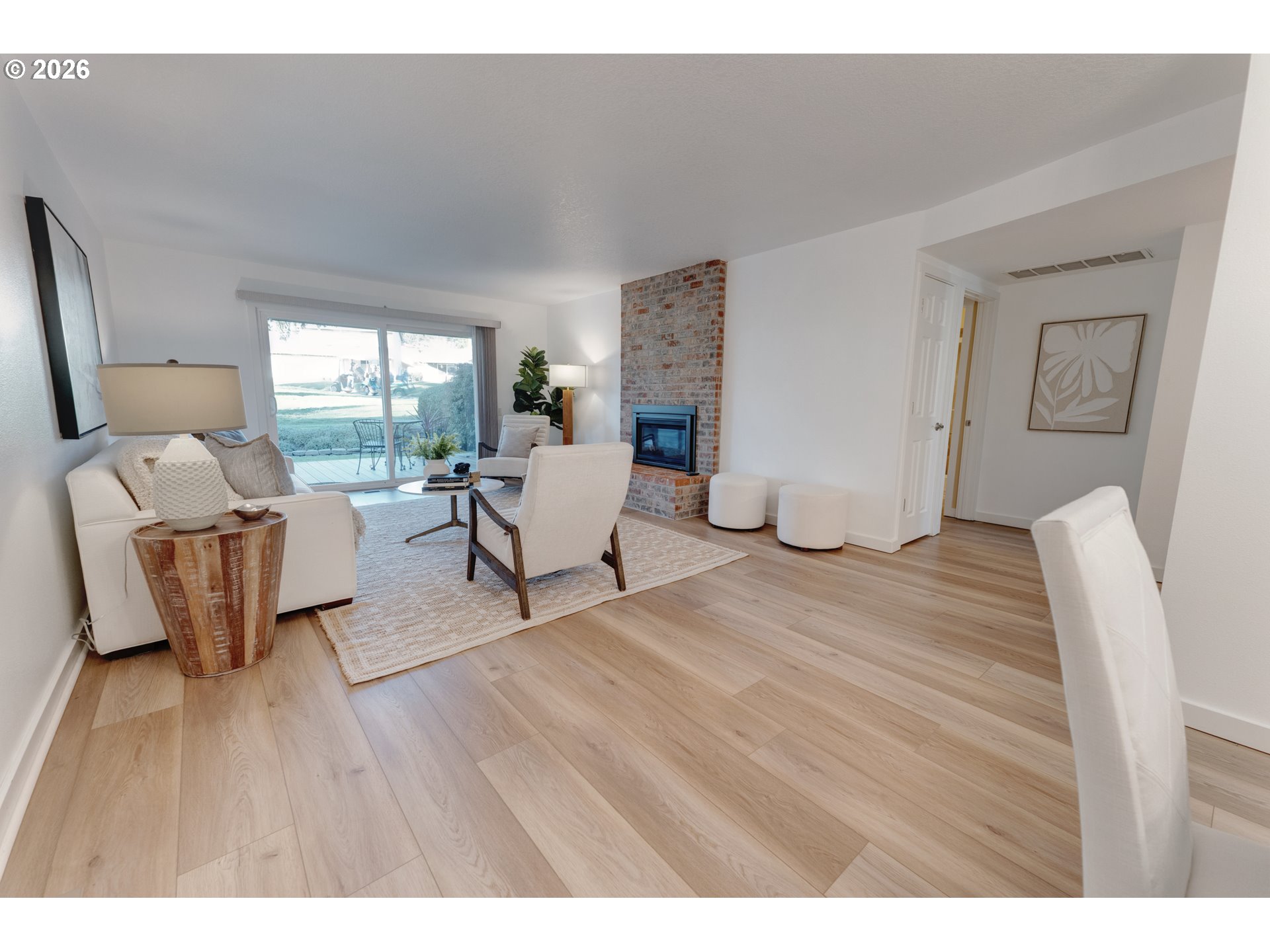 Deck, Fireplace, LivingRoomDiningRoomCombo, SlidingDoors