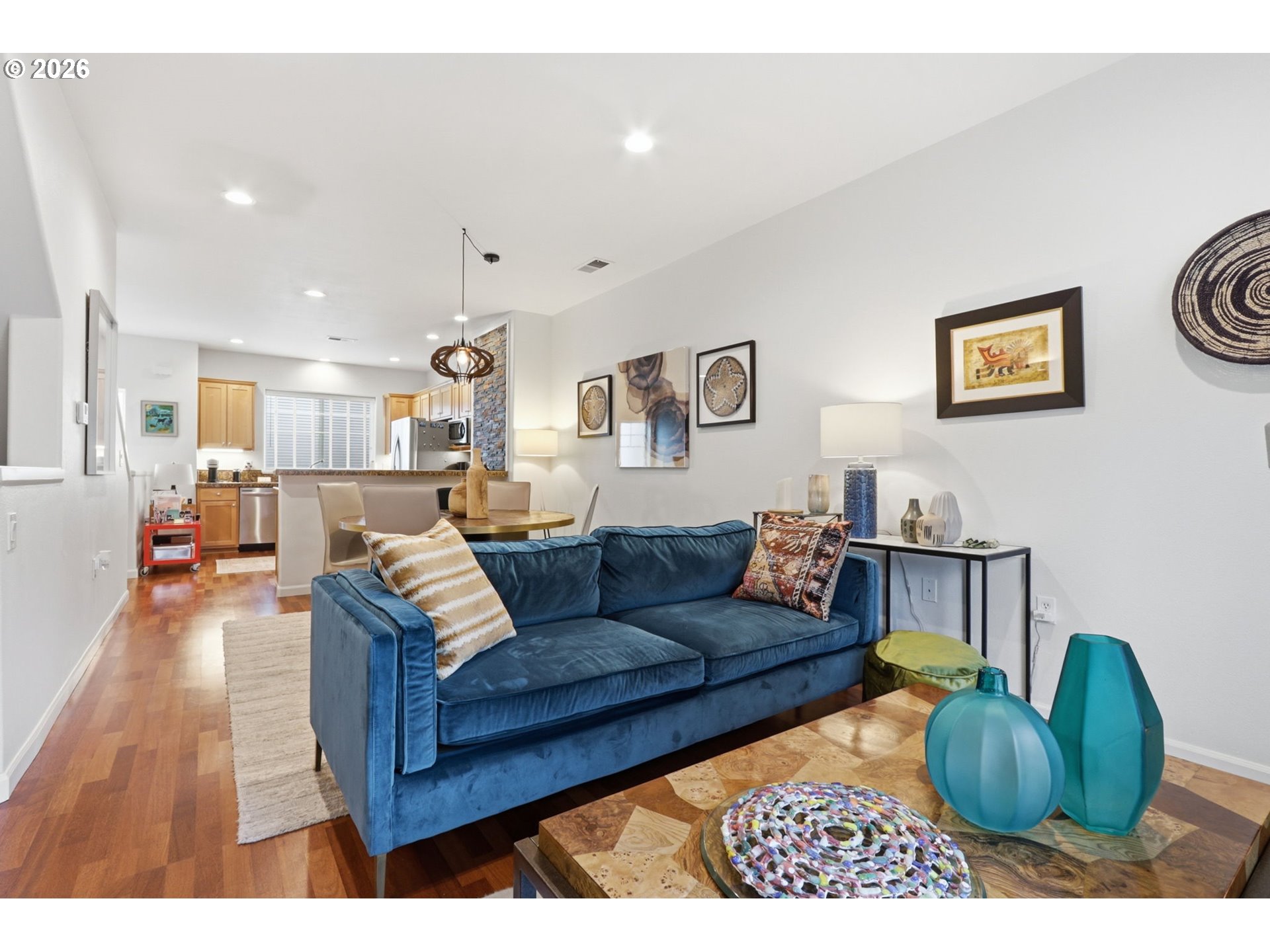 Beautiful condo in the Southern end of West Slope. Perhaps the best location for commutes in all points of the compass! Updated condo with remodeled kitchen. Hardwood floors on main floor. Long lasting berber carpeting on the stairs as well as the upper, bedroom level. Kitchen complete with breakfast bar, upper level convection oven and range, included stainless steel refrigerator. Spacious slab granite counters in kitchen. Living room with gas fireplace and balcony/deck. Primary bedroom features a wall of closets and attached bathroom. Second bedroom is right next to the main hall bathroom upstairs. Laundry is conveniently located between the bedrooms and the Washer/Dryer are included! Extra long 2 car tandom garage spacious enough for a car and flex space or 2 tandom parking.