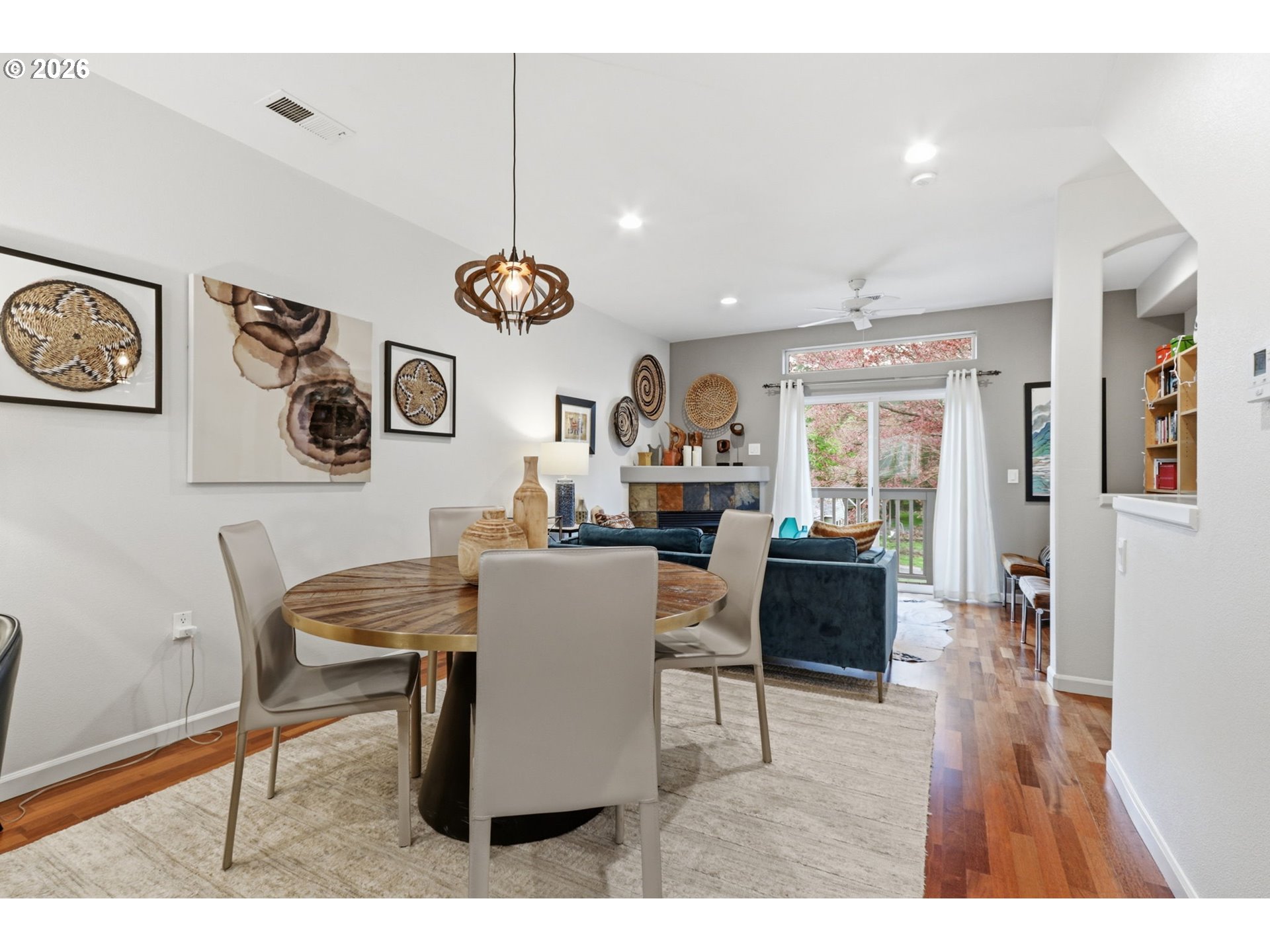 Deck, Fireplace, HardwoodFloors, SlidingDoors