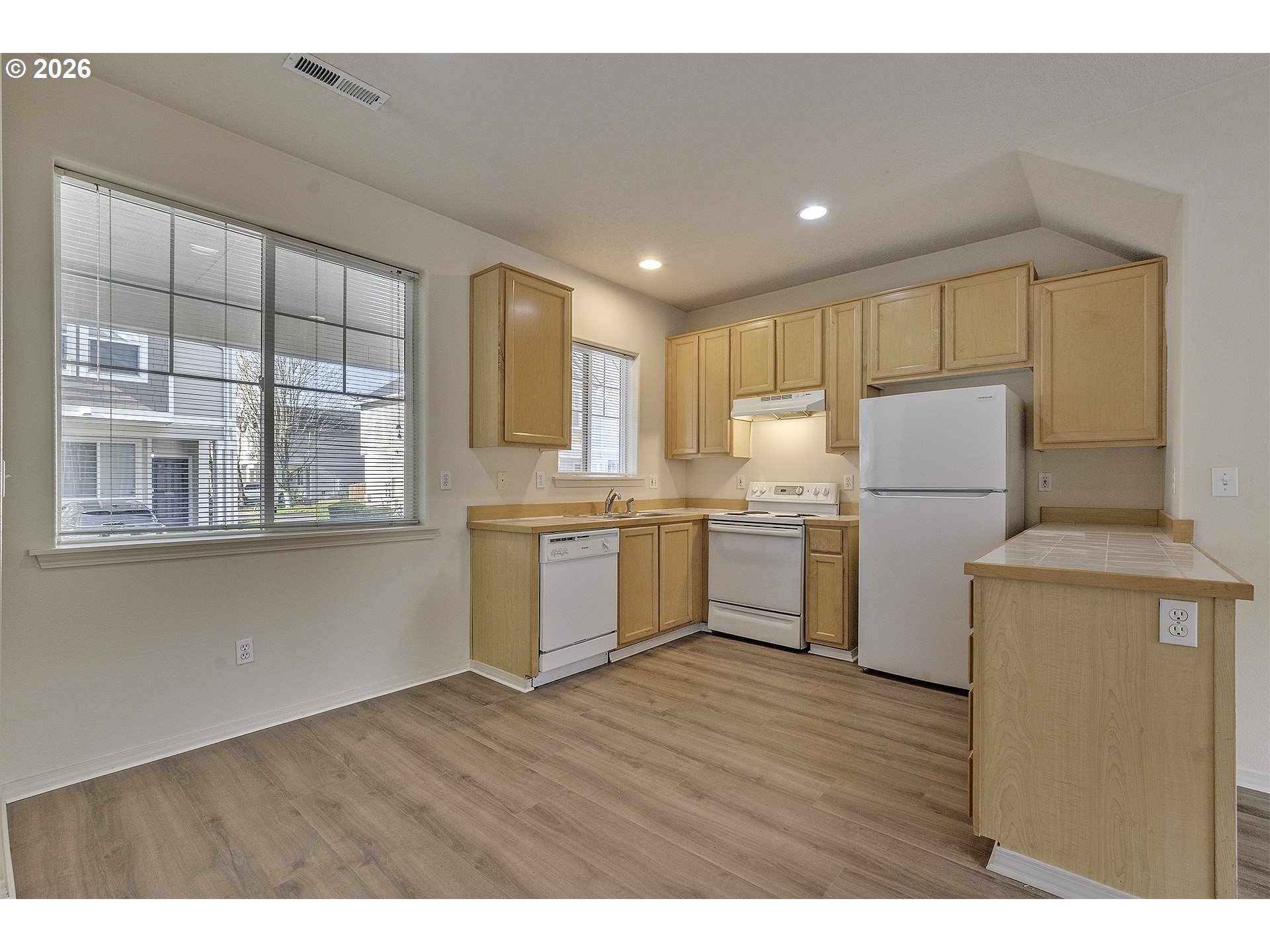 OPEN HOUSE ~ SUNDAY 3/1 ~ 2-4PM ~ This 3 bedroom 2 bath, move-in ready end unit offers the perfect blend of style, comfort, and convenience in the heart of the desirable Amberglen area. Seller will pay the full HOA assessment balance at closing. Enjoy peace of mind with no surprise costs. Spacious living and priced to sell, this home is a smart move in a competitive market. Move-in ready with major value included. With low HOA dues, no special assessments fees, and no rental cap, this home presents a fantastic opportunity for both homeowners and investors. The main level features tall ceilings, new luxury vinyl plank flooring, and a spacious open-concept living and dining area that flows seamlessly into a bright, well-appointed kitchen with included appliances. It's ideal for both everyday living and entertaining. Upstairs, the vaulted primary suite features dual closets and a private en suite bathroom. Two additional bedrooms provide flexible space for guests, a home office, or extra storage. A full-size washer and dryer included for added convenience. New fresh interior paint, and a private fenced backyard retreat with a patio that is perfect for outdoor dining or gardening. New water heater! Exterior upgrades managed by the HOA include a new roof, new siding, and fresh exterior paint, offering peace of mind for years to come. Additional features include a two-car covered tuck-under carport. The location is just minutes from the MAX light rail, Intel campuses, and major shopping, dining, and recreation options at Streets of Tanasbourne, Orenco Station, Orchard Park, and Orenco Woods Nature Park. Do not miss your chance to own this turnkey townhouse in one of Hillsboro’s most convenient and connected communities. Schedule your showing today! [Home Energy Score = 8. HES Report at https://rpt.greenbuildingregistry.com/hes/OR10245143]