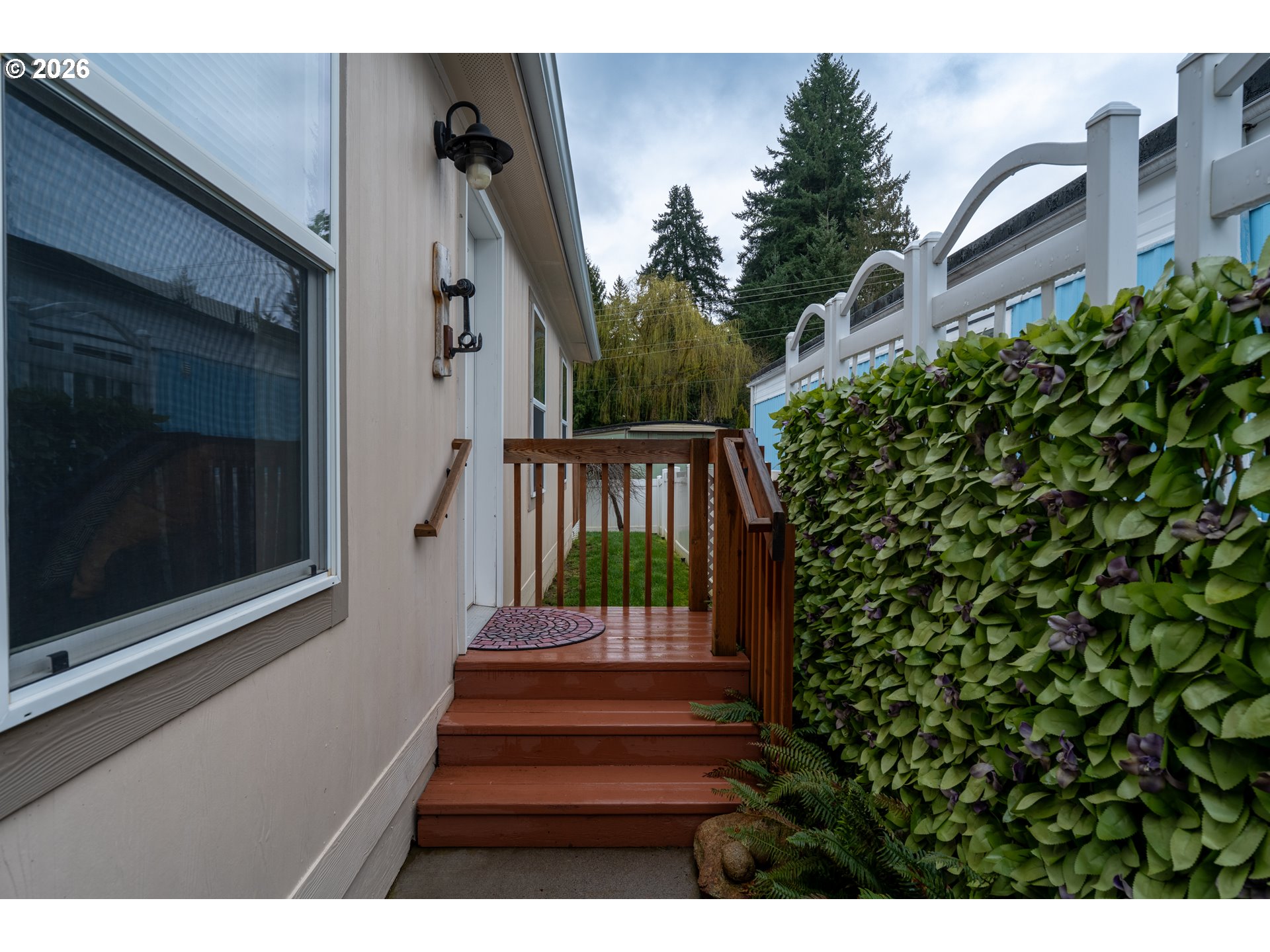 TIGARD OREGON; Welcome to this better than new, beautifully maintained 2018 double-wide home in the desirable 55+ community of Royal Villas. One of the few homes in the community featuring fencing for added privacy, this property offers comfort, flexibility, and upgrades throughout. Enjoy convenient access to nearby highways, along with a variety of local shops, restaurants, and everyday services just minutes away. Inside, the open-concept living area creates a bright and welcoming space perfect for relaxing or entertaining. The kitchen features an breakfast bar and flows seamlessly into the main living area. The thoughtful floor plan places the primary suite on one end of the home, complete with a walk-in closet and private bathroom with walk-in shower, providing a peaceful retreat. A third bedroom flex space offers versatility—ideal for a home office, arts and crafts studio, workout room, workout space, or guest room. Step outside to the deck, a perfect spot for morning coffee or afternoon tea. The home also features covered carport parking and a large handy shed for extra storage. Residents of Royal Villa enjoy access to wonderful community amenities including a clubhouse, swimming pool, putting green, pickleball court and shuffleboard, making it easy to stay active and social in this well-established 55+ community. A fantastic opportunity for comfortable, low-maintenance living in a welcoming neighborhood. Some furnishings can stay. Primary bedroom furnishings excluded.