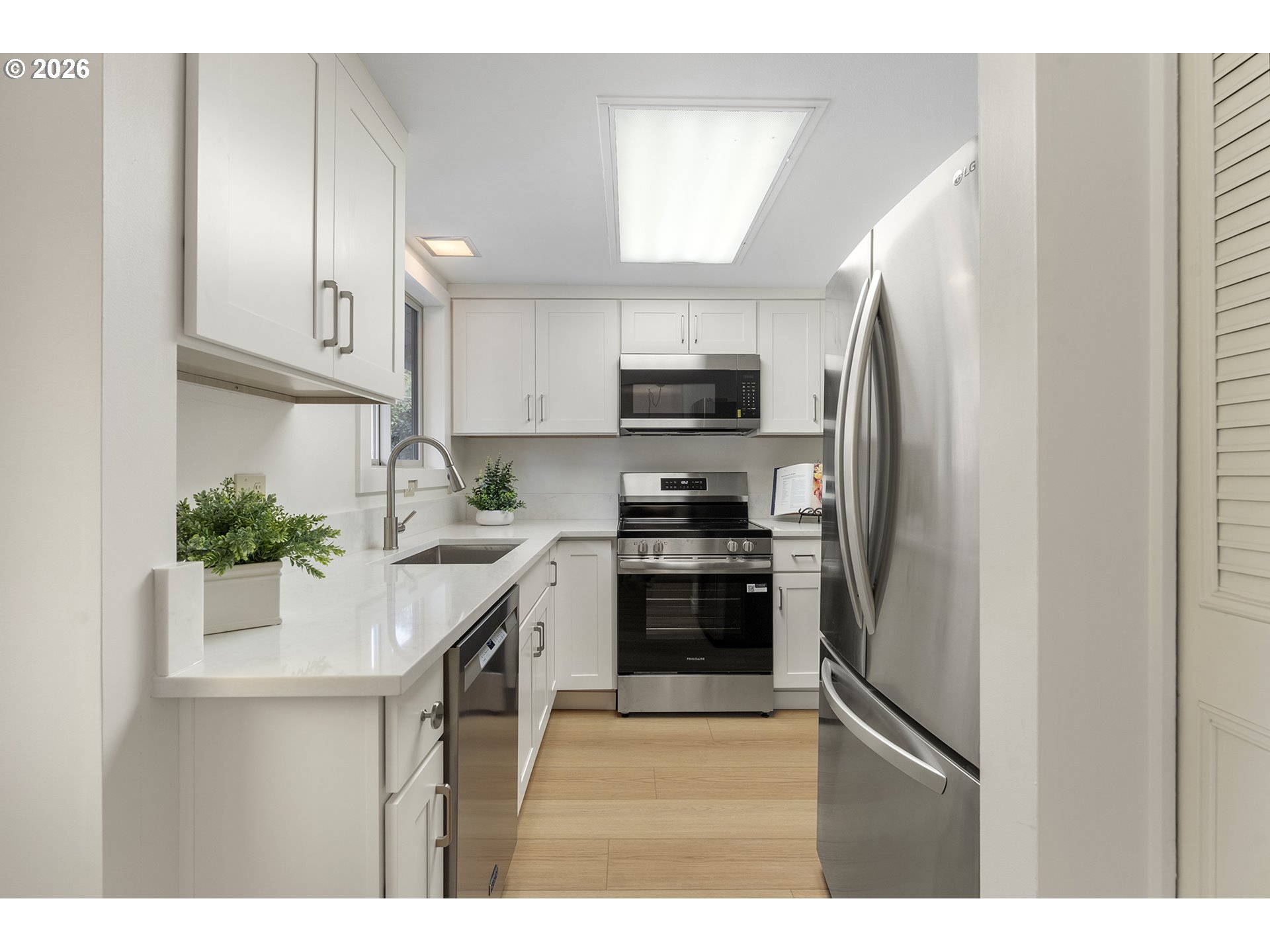 Dishwasher, FreeStandingRange, FreeStandingRefrigerator, Microwave, Quartz, StainlessSteelAppliance