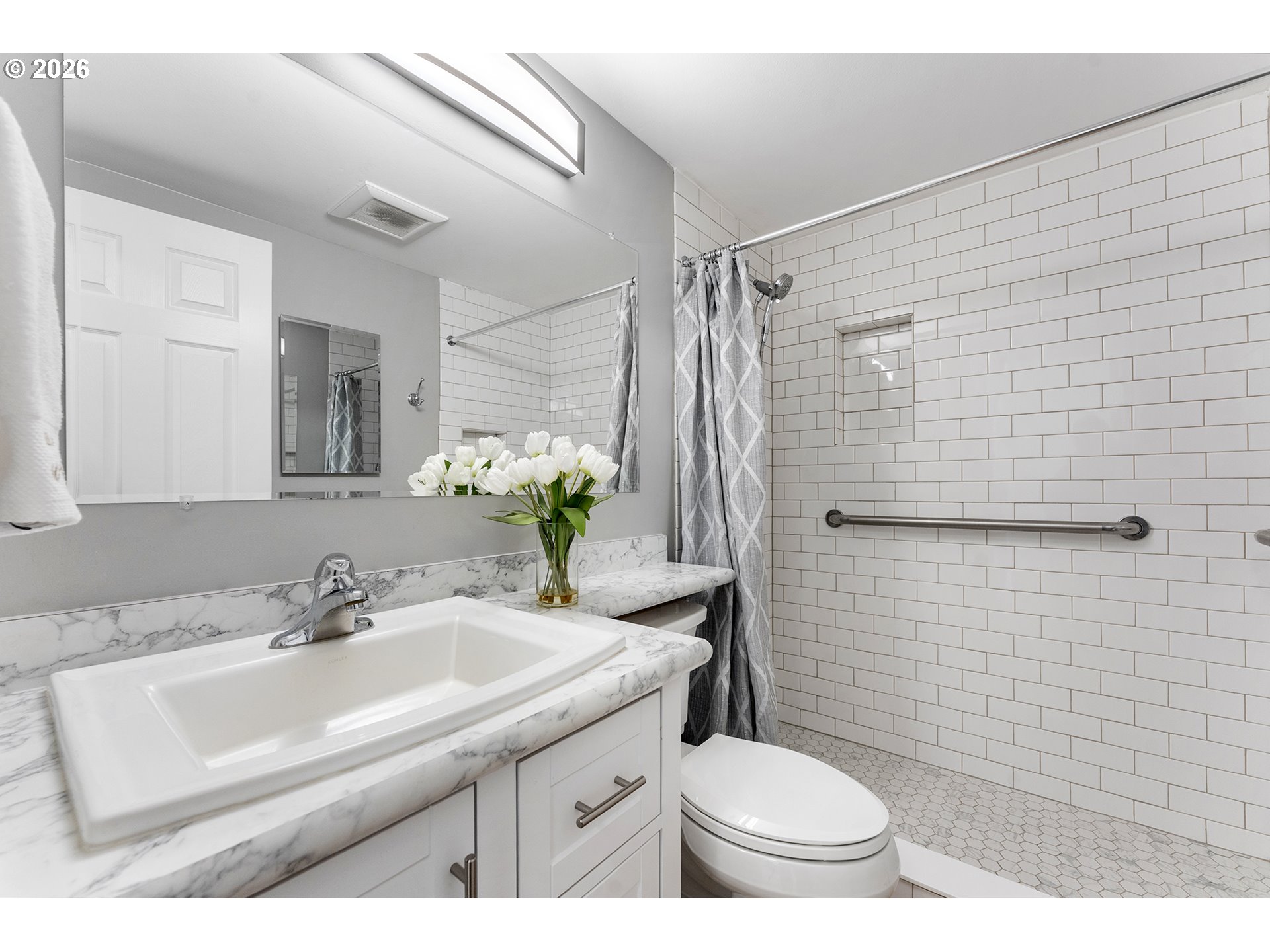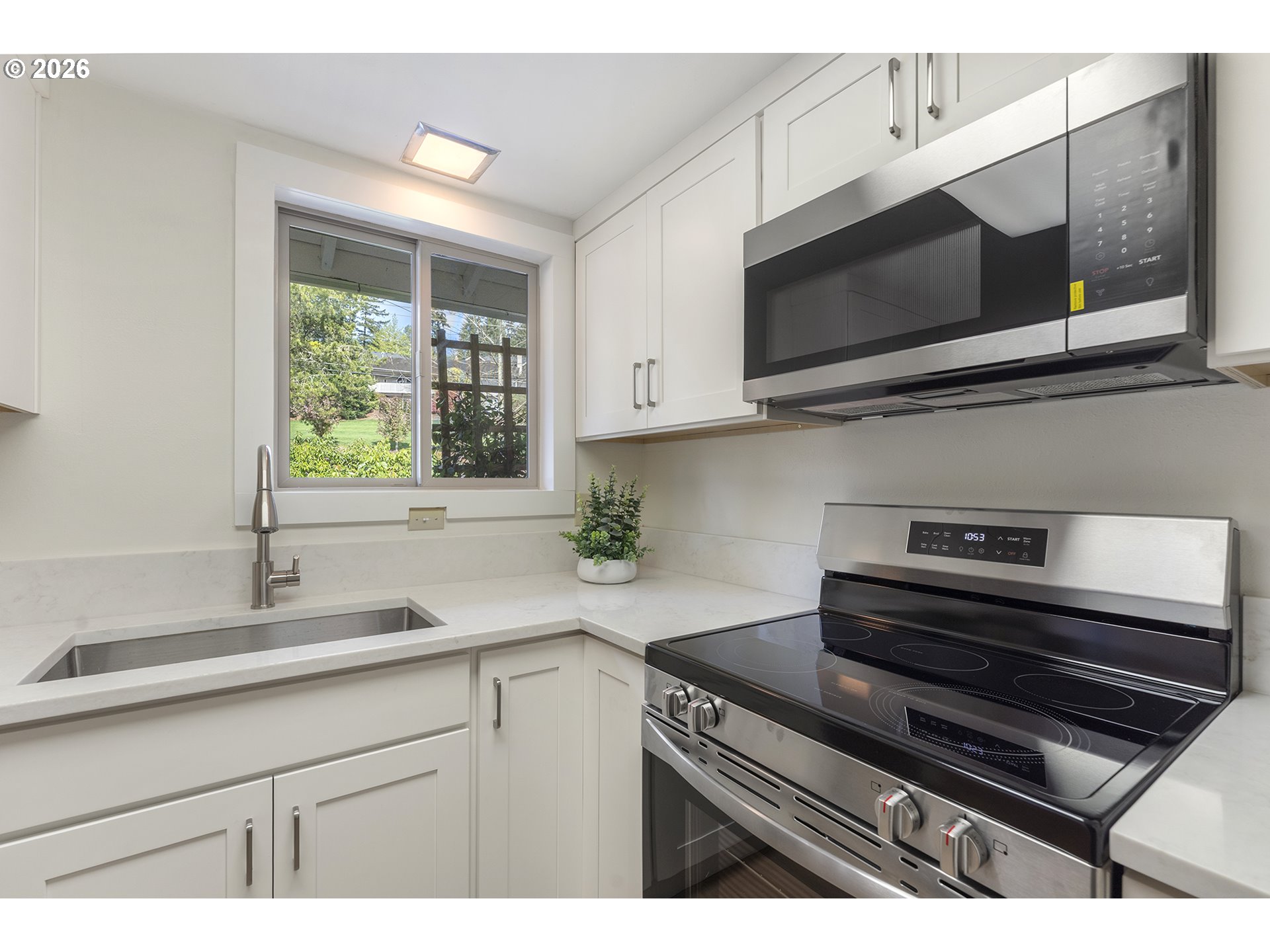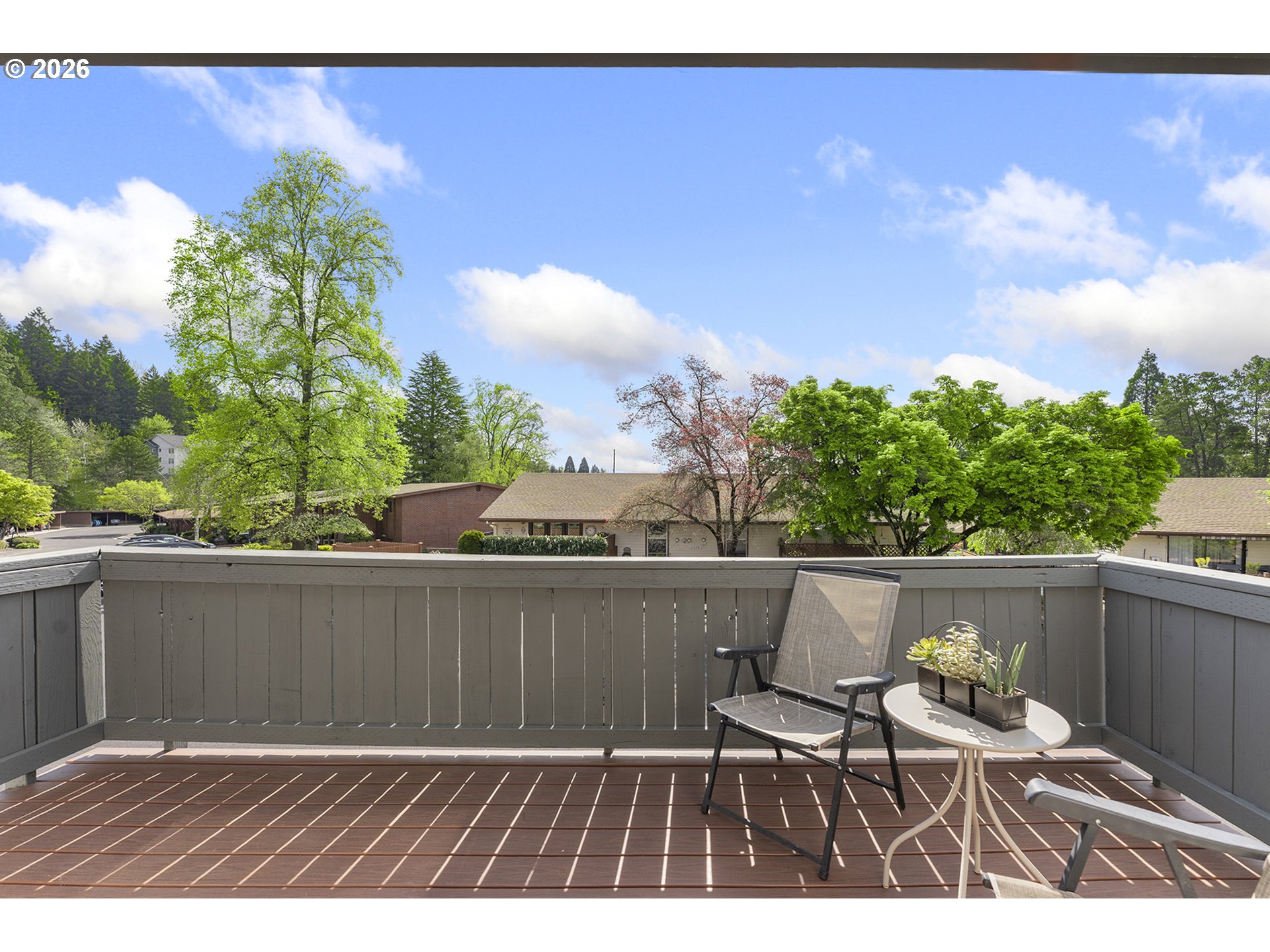 Tucked into a quiet corner of the sought-after King City Civic Association, this charming 1-bedroom, 1-bath condominium at 11575 SW Crown Ct Unit #2 offers the perfect blend of ground floor access with no step entry, comfort, style, and easy living—all in a beautifully updated 672 sq ft package. Step inside and feel instantly at home. Fresh interior paint, new doors, molding, and baseboards create a crisp, modern feel, while luxury vinyl plank flooring flows throughout (with cozy carpet in the bedroom). Sunlight pours through vinyl windows and the sliding glass door, illuminating a thoughtfully refreshed interior. The kitchen shines with new cabinetry, sleek countertops, stainless steel appliances, and a built-in microwave—making everyday living and entertaining effortless. The bathroom has been tastefully updated with a new vanity and a stunning walk-in tile shower. Year-round comfort is yours with an efficient mini-split system for heating and cooling. Step outside to your large view deck—perfect for morning coffee as the sun rises or unwinding at the end of the day. Just a short “Par 3” stroll to the clubhouse, you’ll enjoy access to golf, a pool, a library, and a vibrant calendar of activities. The HOA simplifies life by covering water, sewer, garbage, cable, exterior maintenance, landscaping, and more. With parking right in front (plus optional carport rental) and a dedicated storage unit, convenience is built in. Ideally located near shopping and major routes, this home offers both tranquility and accessibility. Whether you're relaxing at home or embracing the active community lifestyle, this inviting condo is your gateway to the best of King City living.