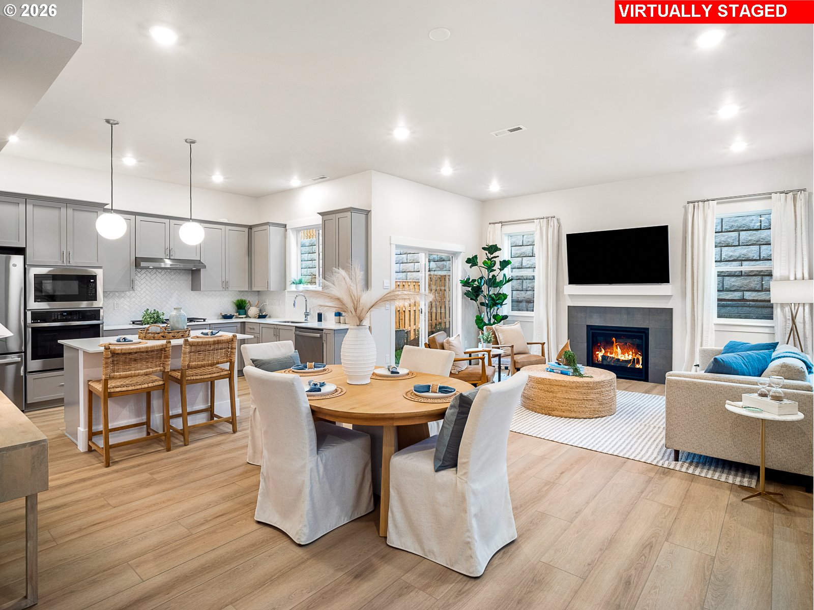 Come explore the beautifully designed 4-bedroom Dundee Tuck Under floorplan featuring a versatile main-level bonus room/bedroom with a spacious covered front deck perfect for relaxing or entertaining. Inside you’ll find soaring 10' ceilings on the main level and 9' ceilings upstairs creating a light-filled, open atmosphere throughout. The gourmet kitchen is a chef’s dream complete with a wall oven, built-in microwave, gas cooktop with hood, and entertainers island ideal for gathering and entertaining. Distinct dining area for hosting memorable meals. Enjoy the outdoors year-round with a covered back patio and fully fenced yard—great for pets, play, or privacy. The community is rich with walking and biking trails, and offers convenient access to Progress Ridge shopping, local dining, and major freeways. Located just a 5-minute walk to Mountainside High School, this home blends suburban comfort with everyday convenience. Tour daily - walk-ins welcome. A similar model home is available for viewing.
