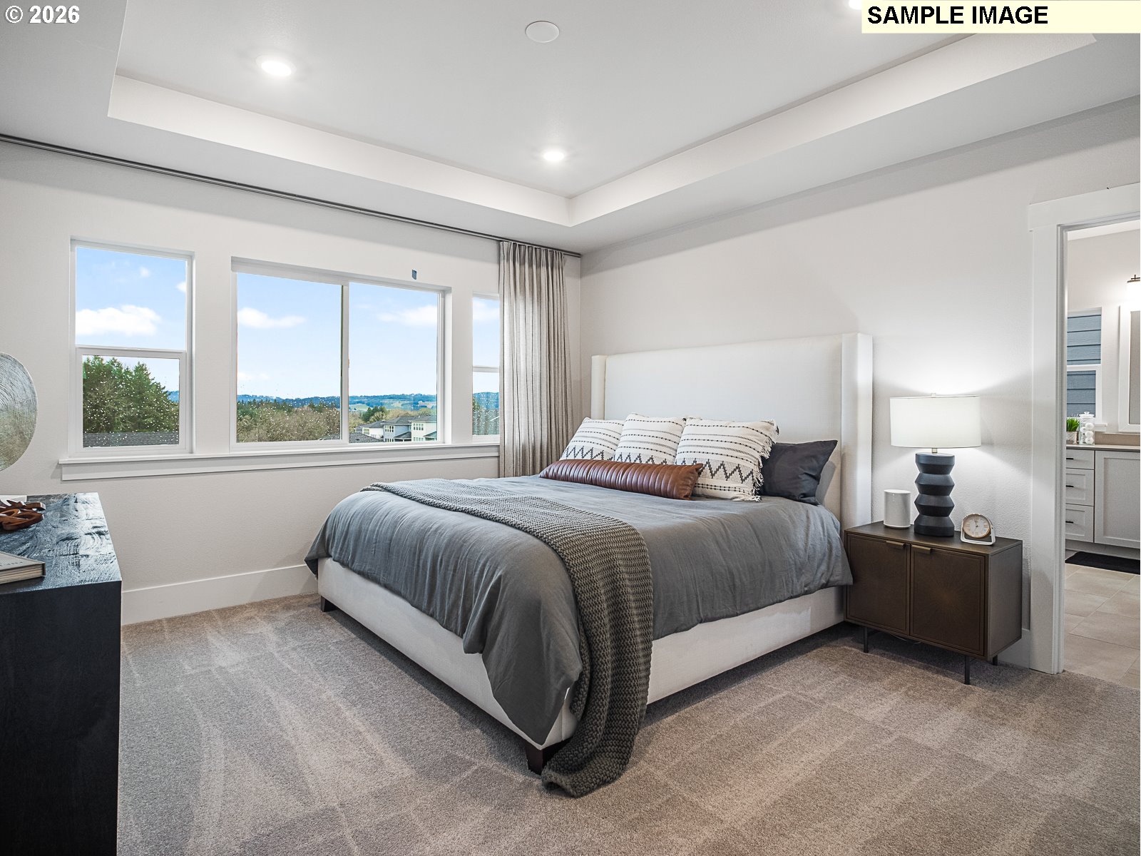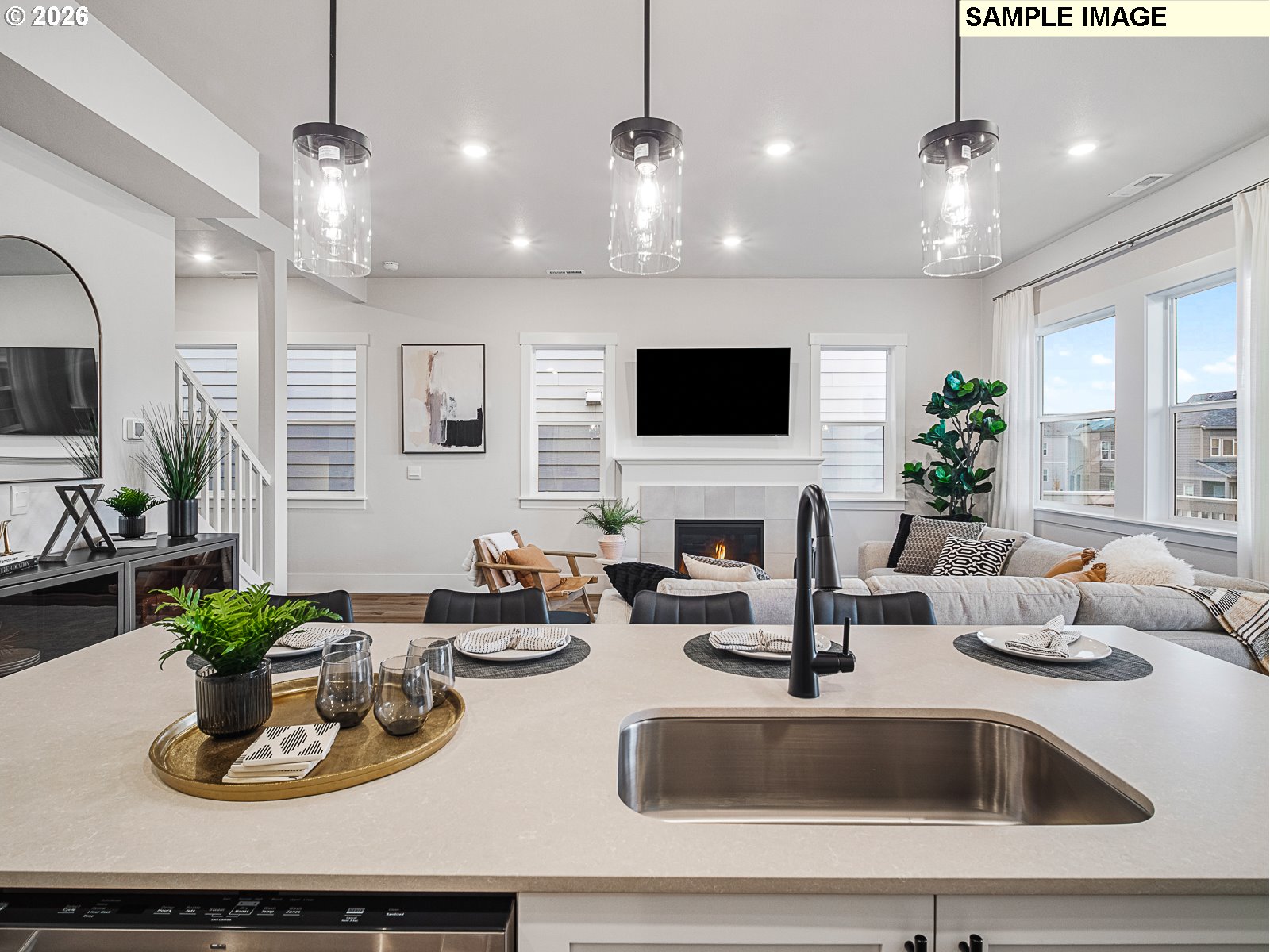 Come explore the beautifully designed 4-bedroom Navarra floorplan featuring a versatile main-level bonus room with a spacious covered front deck perfect for relaxing or entertaining while enjoying western views. Soaring 10' ceilings on the main level and 9' ceilings upstairs create a light-filled, open atmosphere throughout. The gourmet kitchen is a chef’s dream complete with GE Profile wall oven, built-in microwave, 5-burner gas cooktop with hood, and a large quartz island ideal for gathering and entertaining. Distinct dining area for hosting memorable meals. Enjoy the outdoors year-round with a covered back patio and fully fenced yard—great for pets, play, or privacy. The community is rich with walking and biking trails, and offers convenient access to Progress Ridge shopping, local dining, and major freeways. Located just a 5-minute walk to Mountainside High School, this home blends suburban comfort with everyday convenience. Tour daily - walk-ins welcome. Photos are of a former model home as well as a home in the community.