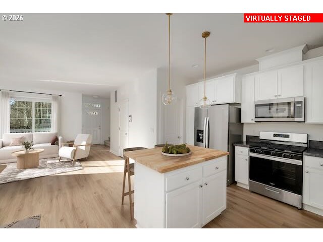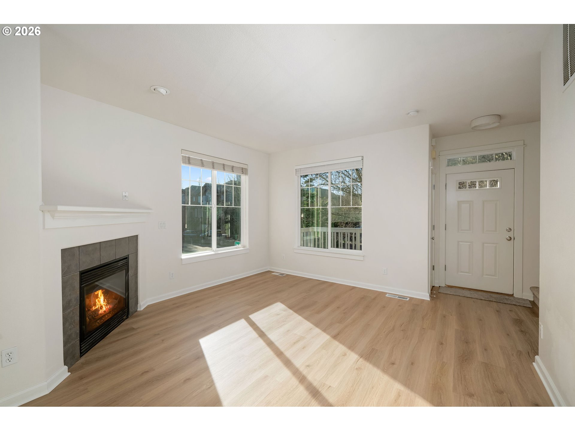Stylish, updated, and ideally situated, this 2 bedroom, 2.5 bath Beaverton townhome offers effortless living in a quiet, well-maintained community. The light filled main level features a light and airy open concept layout with 9 foot ceilings, all new luxury vinyl plank flooring, and a cozy gas fireplace. Upstairs, both bedrooms feature vaulted ceilings and private ensuite baths, with the added convenience of laundry located on the same level. Recent improvements include new luxury vinyl plank flooring and carpet, fresh interior paint, an updated kitchen island countertop, and upgraded lighting throughout. The kitchen is outfitted with all new appliances, including a gas range, stainless steel refrigerator, built-in microwave and dishwasher. Adjacent to the kitchen, the dining area features built-ins and opens to a sunny deck, providing additional outdoor living space. The lower level offers a versatile flex space ideal for a home office, den, or workout area. A two car garage just off this space adds excellent storage and functionality. Enjoy a highly walkable location near Nike, Costco, and Tualatin Hills Nature Park, with easy access to miles of trails, as well as shopping and dining at Cedar Hills and Tanasbourne. Thoughtfully updated and truly move-in ready, this home checks all the boxes!