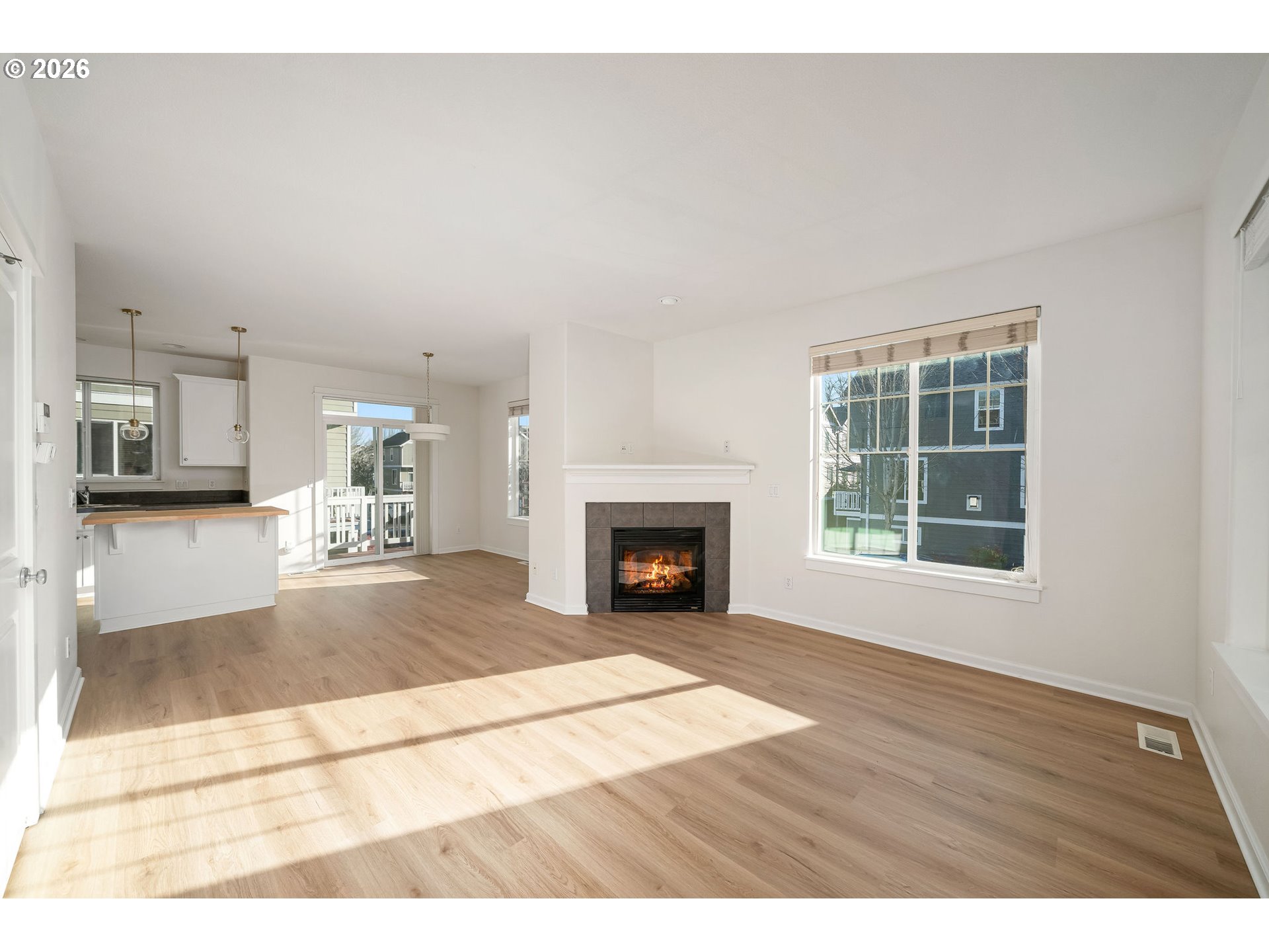 Fireplace, GreatRoom, Island, KitchenDiningRoomCombo
