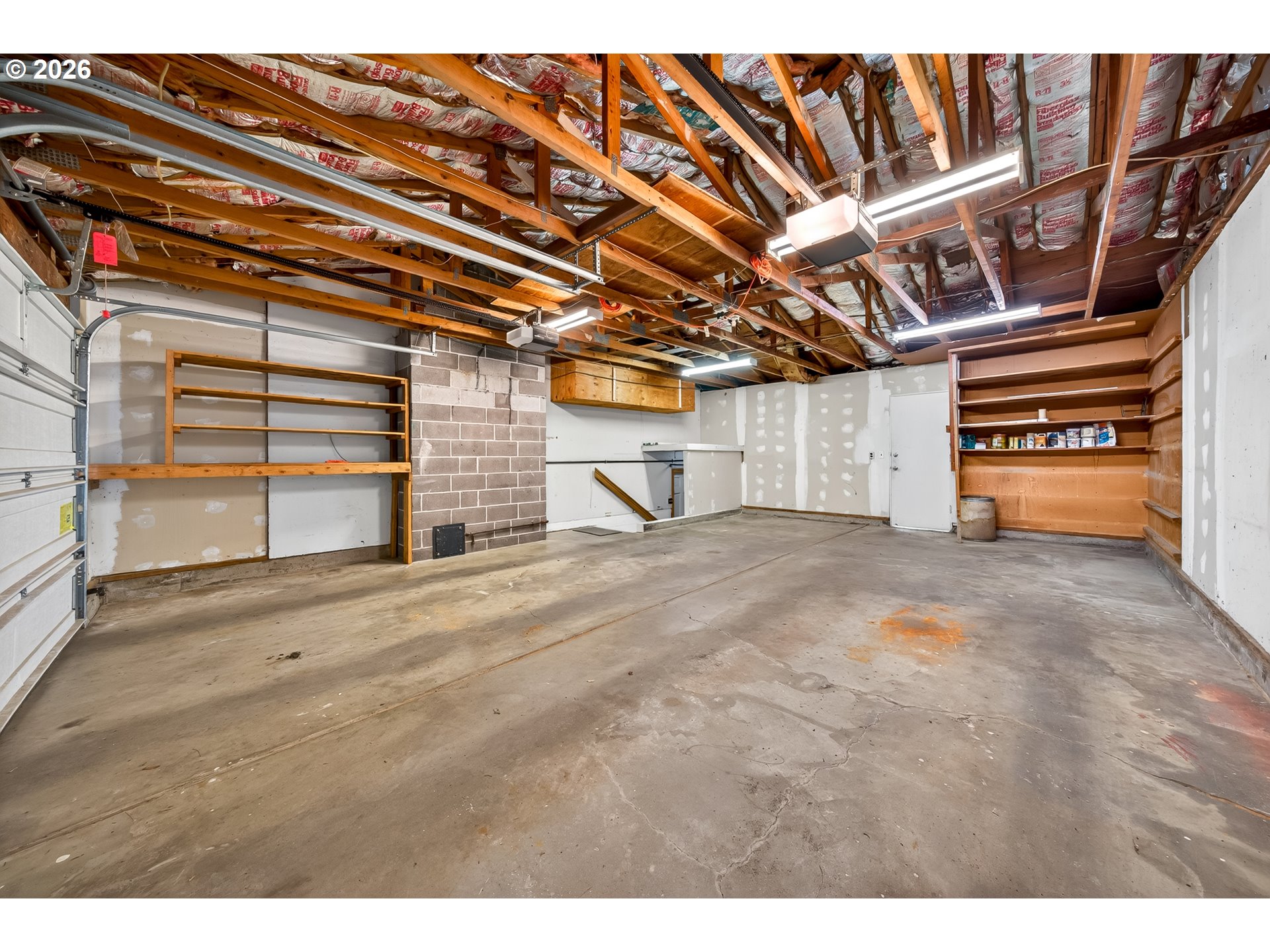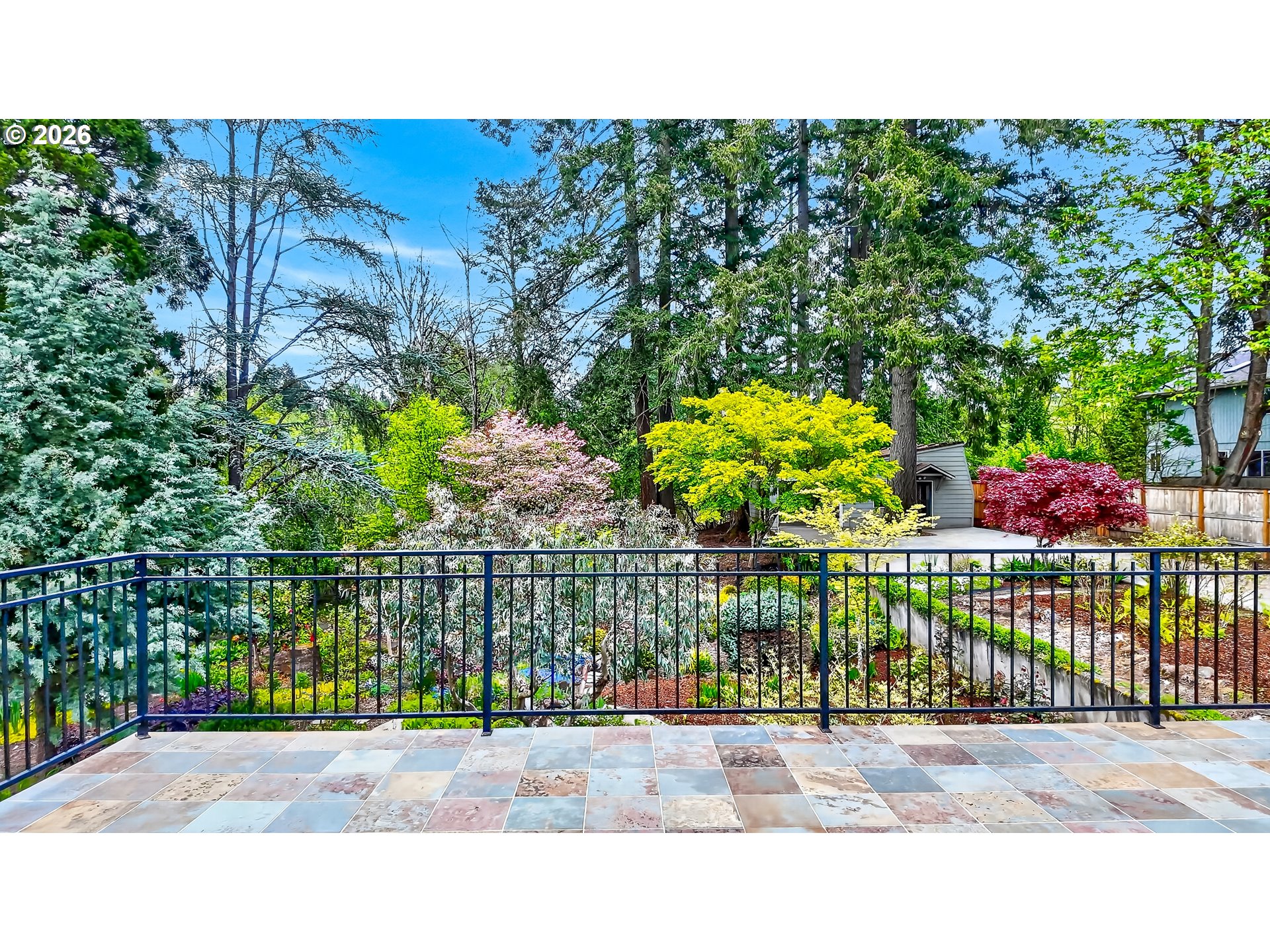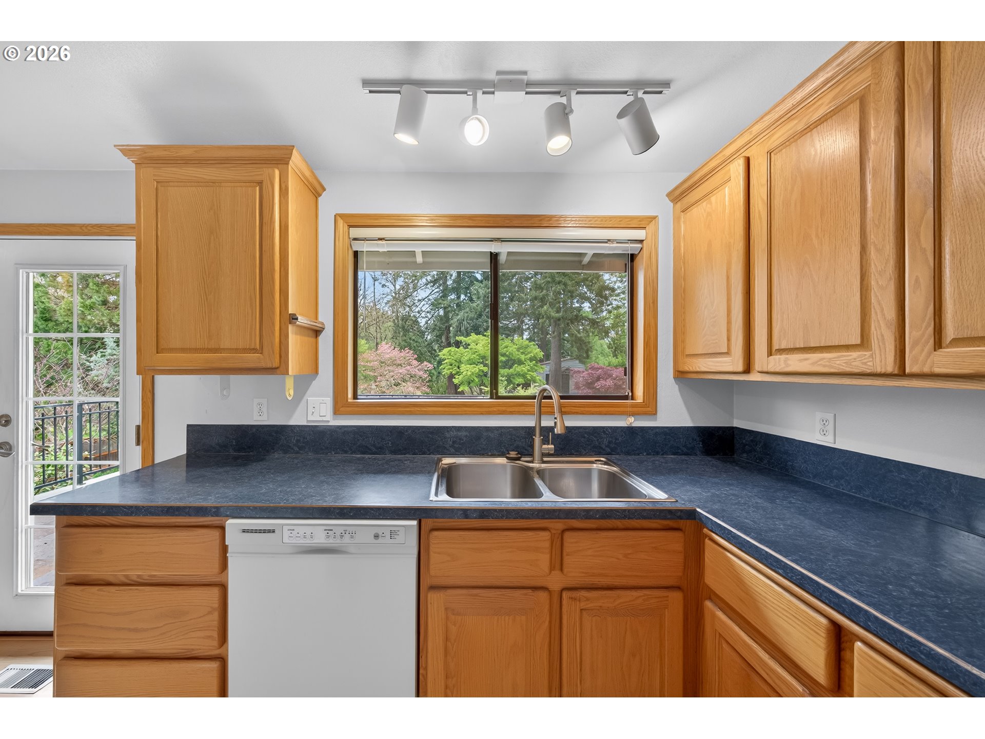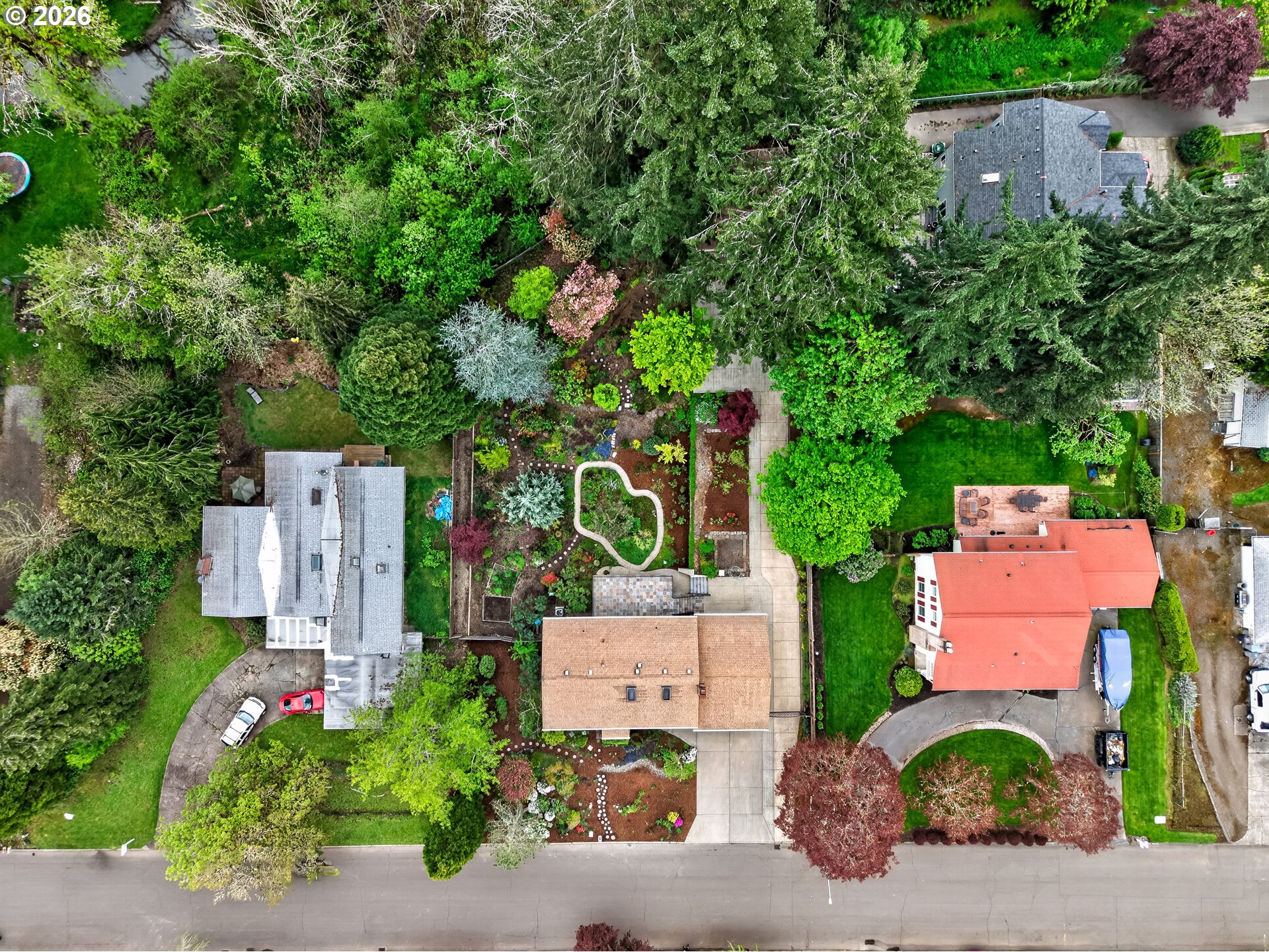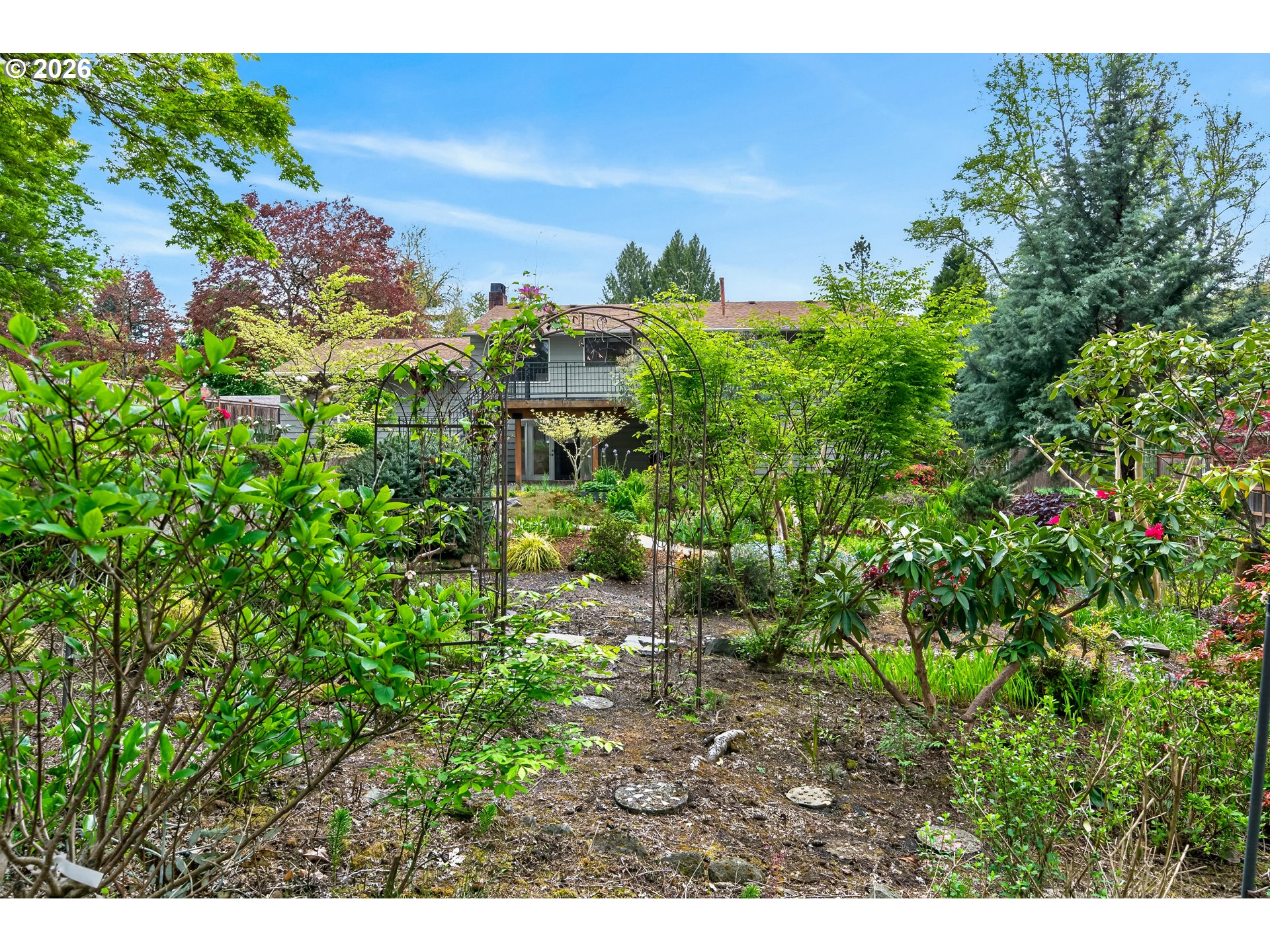 Welcome to your own private garden sanctuary in a quiet, established Tigard neighborhood. This split-level home features vaulted ceilings and skylights that fill the main level with natural light. The great room includes a gas-insert fireplace, large windows, and skylights. The open kitchen flows into the dining area and out to a large, deck, ideal for entertaining or relaxing. This level also includes a spacious primary bedroom with a sizeable walk-in closet and convenient access to the full hall bath via a pocket door. Downstairs offers two additional bedrooms, a second full bath, and a laundry/mud room with its own entrance to the back patio. The large downstairs bonus room has a thermostat-controlled gas-insert fireplace, and access to the two-car garage and the back patio. The AC and high-efficiency furnace are new as of 2022. Step outside to discover what truly sets this home apart, a fully fenced garden oasis on nearly half an acre, backing up to a green space for added privacy. Garden showpieces include a tulip saucer magnolia, dark pink dogwood, the unique Arizona "Blue ice" cypress, multiple flaming crape myrtles and burning bushes, a variety of Japanese maples, and four color variations of redbud trees. Blueberry bushes and fig trees have provided an abundance of fruit each year. To the right of the garage is a long driveway, suitable for RV parking, that reaches a versatile outbuilding. The outbuilding was thoughtfully designed for a past owner, a ceramic artist, featuring a half bath, an extended stainless-steel sink with hot and cold water, electrical service with 220V capability, an industrial gas heater, and central drain for easy cleanup. There are many shelves, and built-in drawers. The attached carport is also plumbed for water, gas and electricity and has a retractable garage door. Convenient front and back sprinkler systems for stress-free watering. This home is truly a standout, offering space, functionality, and a beautiful setting all in one.