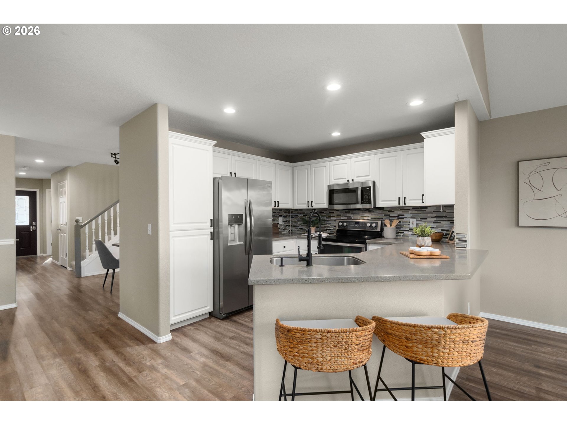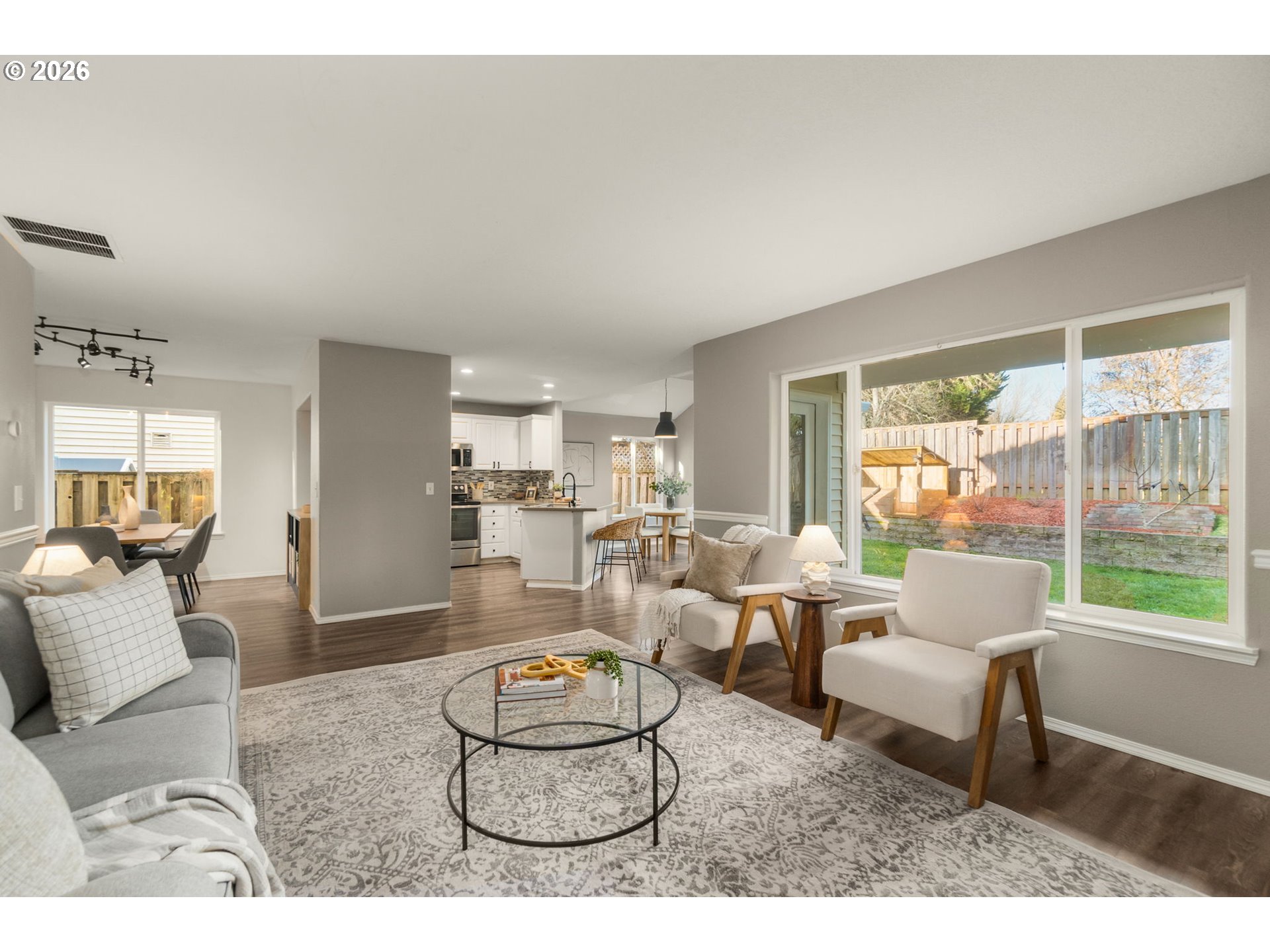 OPEN HOUSE SAT 1/24 12-2PM! Move in ready and well maintained in the highly sought after Jackson School neighborhood, this home offers recent major system updates and a functional layout for everyday living. The main level features luxury vinyl plank flooring throughout, a dedicated office with built-in desk and storage, and a formal dining space with built in cabinetry. A spacious living room with gas fireplace flows seamlessly into the kitchen, while an adjacent vaulted dining nook offers flexible use as a sitting area or secondary living space. Thoughtful built in features and plenty of storage space throughout the house. The primary suite is a peaceful retreat with a walk in closet, double sink vanity, and walk in shower. The upper level also includes a laundry room, a full hallway bathroom, and three additional bedrooms offering flexibility for guests, family, or work from home needs. The fully fenced backyard features raised garden bed and a covered patio, backing to peaceful greenspace and a walking path, with a private gate offering direct access to outdoor trails while maintaining a sense of privacy and connection to the neighborhood. Recent Home Updates include: New roof 2023, New Furnace 2026 and New back gutters 2026. All kitchen appliances, washer and dryer included! Enjoy access to exceptional community amenities including two swimming pools, a clubhouse, newly renovated park with playground & tennis/pickleball courts and walking paths, creating a true neighborhood lifestyle. If you want a home that is dialed in and well cared for, this is it! [Home Energy Score = 4. HES Report at https://rpt.greenbuildingregistry.com/hes/OR10243844]
