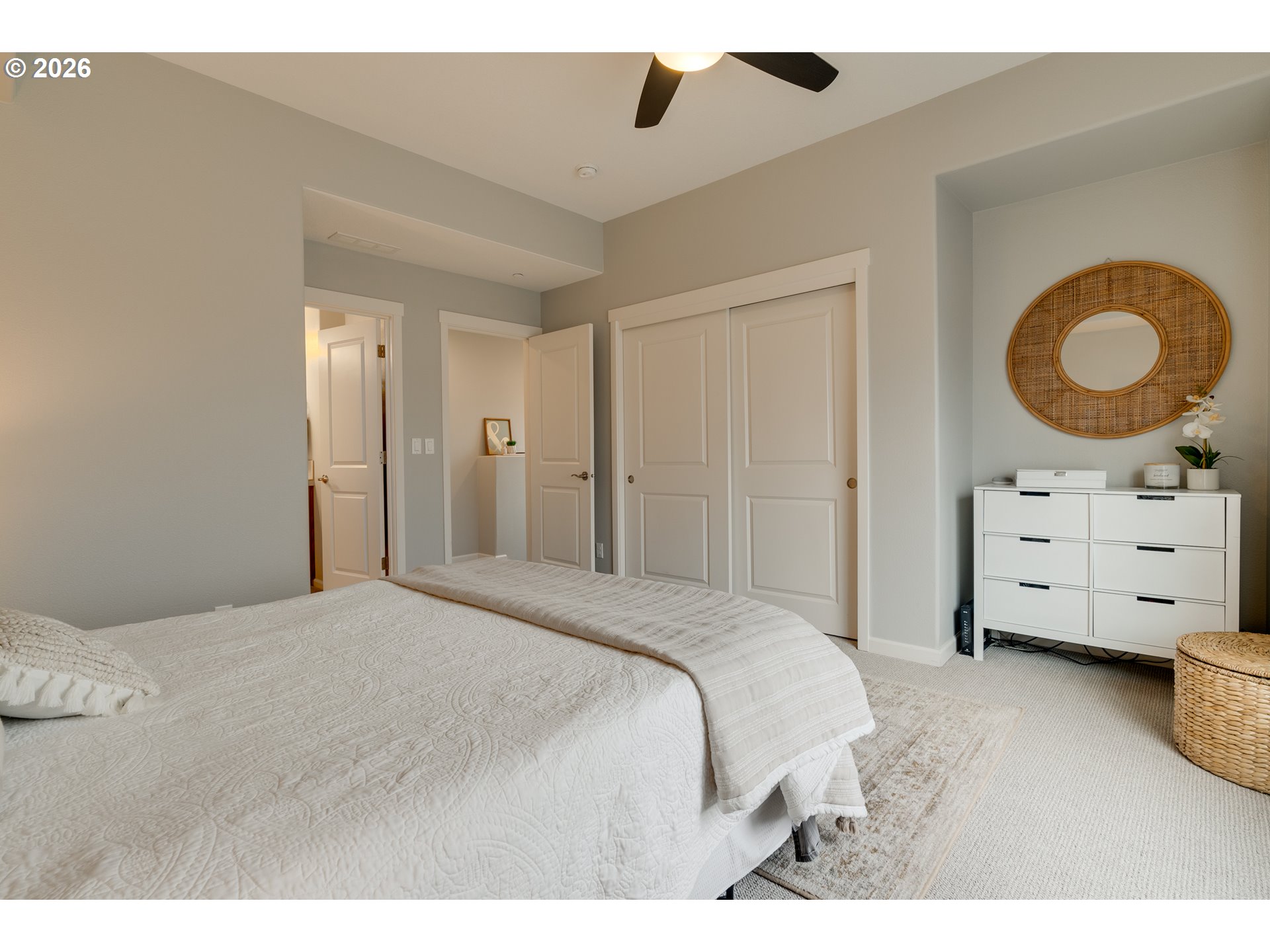 A block away from 25,000 sq. foot of pickleball, swim center, dog parks, playgrounds, retail, and restaurants! Discover the perfect blend of privacy, natural light, and modern upgrades in this stunning end-unit townhome, ideally located by Progress Ridge. Neighborhood amenities include: park, playground, pool, gym, clubhouse. As an end unit, this home offers only one shared wall, providing a quieter and more secluded living experience compared to interior units. Step inside to find an open and inviting floor plan, featuring easy-care engineered wood flooring on the main levels and plush new carpeting in the bedrooms. The living room is a cozy retreat, highlighted by a gas fireplace and flooded with natural light from multiple windows and a sliding glass door. Step outside to your private balcony, perfect for enjoying morning sunrises or evening relaxation, while over looking the fully fenced backyard—ideal for outdoor gatherings or gardening. The kitchen is a chef’s dream, featuring a gas stove, granite countertops, ample cabinet storage, and a spacious 13-foot island with a breakfast bar. The adjacent dining area is perfect for entertaining or can easily serve as a home office or tech center. Upstairs you’ll find a versatile loft, ideal for tech room/ office area and a spacious primary suite complete with a large picture window, a walk-in closet, and an en-suite bathroom. A convenient laundry closet with washer and dryer adds to the home’s functionality. With additional windows, more natural light, and a larger outdoor space, this end-unit townhome offers a bright and airy atmosphere. Enjoy the benefits of increased privacy and potential for higher resale value, all while still relishing the advantages of townhouse living. New construction across the street will be a short walk to retail shops, pickleball/basketball courts, dog parks and more. Don’t miss out—schedule a showing today!