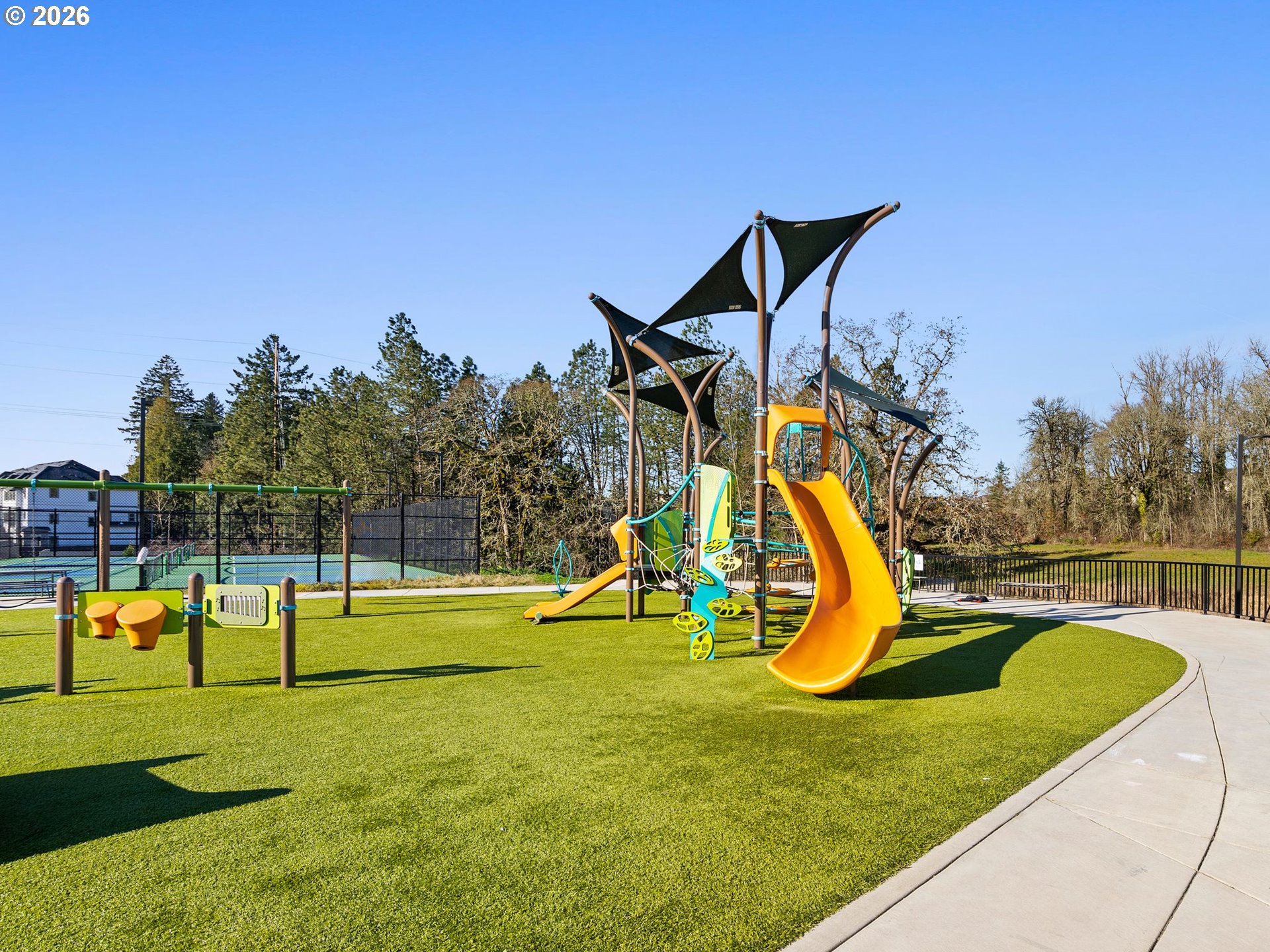 SUPERIOR TO NEW IN RIVER TERRACE! Turnkey Living with Premium Upgrades.?Skip the wait of new construction in this upgraded single-family home in sought-after River Terrace. Better than brand-new, this detached home features premium improvements you won't find in a standard builder package—all the work is done for you!?Step inside to an airy open floor plan with soaring 10-foot ceilings and abundant windows flooding the space with natural light. The main level is elevated by wood flooring and custom plantation shutters offering style and privacy. Gather around the cozy gas fireplace or entertain in the gourmet kitchen featuring quartz countertops, a spacious island, and high-end stainless-steel appliances, including a gas cooktop with hood.?Step outside to a showstopper: a fully landscaped side yard oasis complete with artificial turf, designer pavers, and a BBQ area ready for year-round entertaining. This low-maintenance retreat is move-in ready while neighboring yards struggle with sloped dirt.?Upstairs, the spacious primary suite boasts a spa-inspired bath. Two additional bedrooms and upper-level laundry offer flexibility for family or office use. High-value upgrades include a tankless water heater, AC, refrigerator, and washer/dryer—all just one year old!?The location is unbeatable! Blocks away, enjoy pickleball courts, dog parks, a playground, covered BBQ pavilions, and city parks. Construction has started for a future town center to include a coffee shop and local retail.?You’re just minutes to Progress Ridge Shopping with New Seasons, Ace Hardware, AMC Theater, Big Al's, Club Pilates, and great dining. Plus close proximity to blueberry farms and wineries.?Durable fiber cement exterior, 2-car attached garage, and over $25k+ in upgrades. This is turnkey living at its finest.