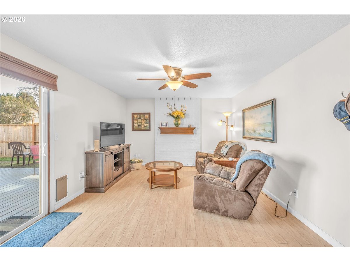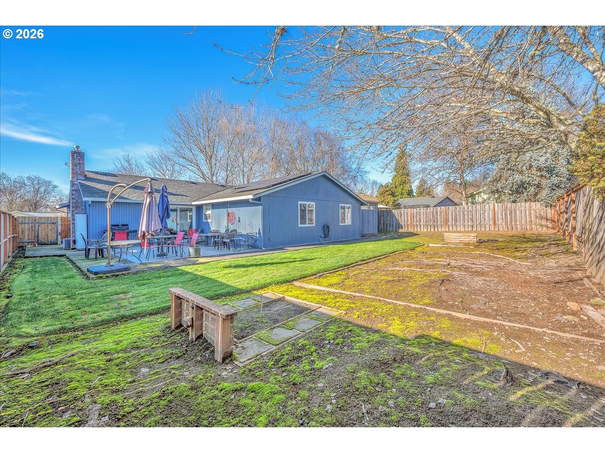 OPEN SATURDAY 1/24/26 12:00-2:00. Single level ranch home with a big country kitchen plan that opens to the fenced back yard. Bring your horseshoes and play! Nice deck for those summer gatherings, too. Updated kitchen cabinets and appliances, central AC, and solar panels to keep that electric bill in check. Located on a non-through street just a block from a huge city park, and around the corner from the high school, just a few blocks to shopping and transit. Family room has gas plumbed, sellers believe that prior owners had a free standing gas stove there.