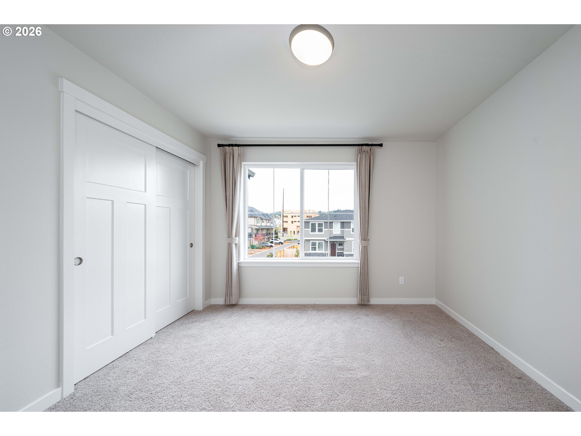 Open-concept home with high ceilings and 4 bedrooms. Gourmet kitchen features quartz countertops, gas range, pantry, and large island—flowing into the great room with gas fireplace and dining area with covered patio for easy indoor-outdoor living. Main-level bedroom or office. Spacious primary suite with soaking tub, tiled walk-in shower, double sinks, and large walk-in closet. Upstairs loft ideal for media or flex space. Two-car garage with extended driveway and street parking. Farmhouse-style exterior. Convenient location nearby Progress Ridge, Sabrina Park, and Mountainside High.