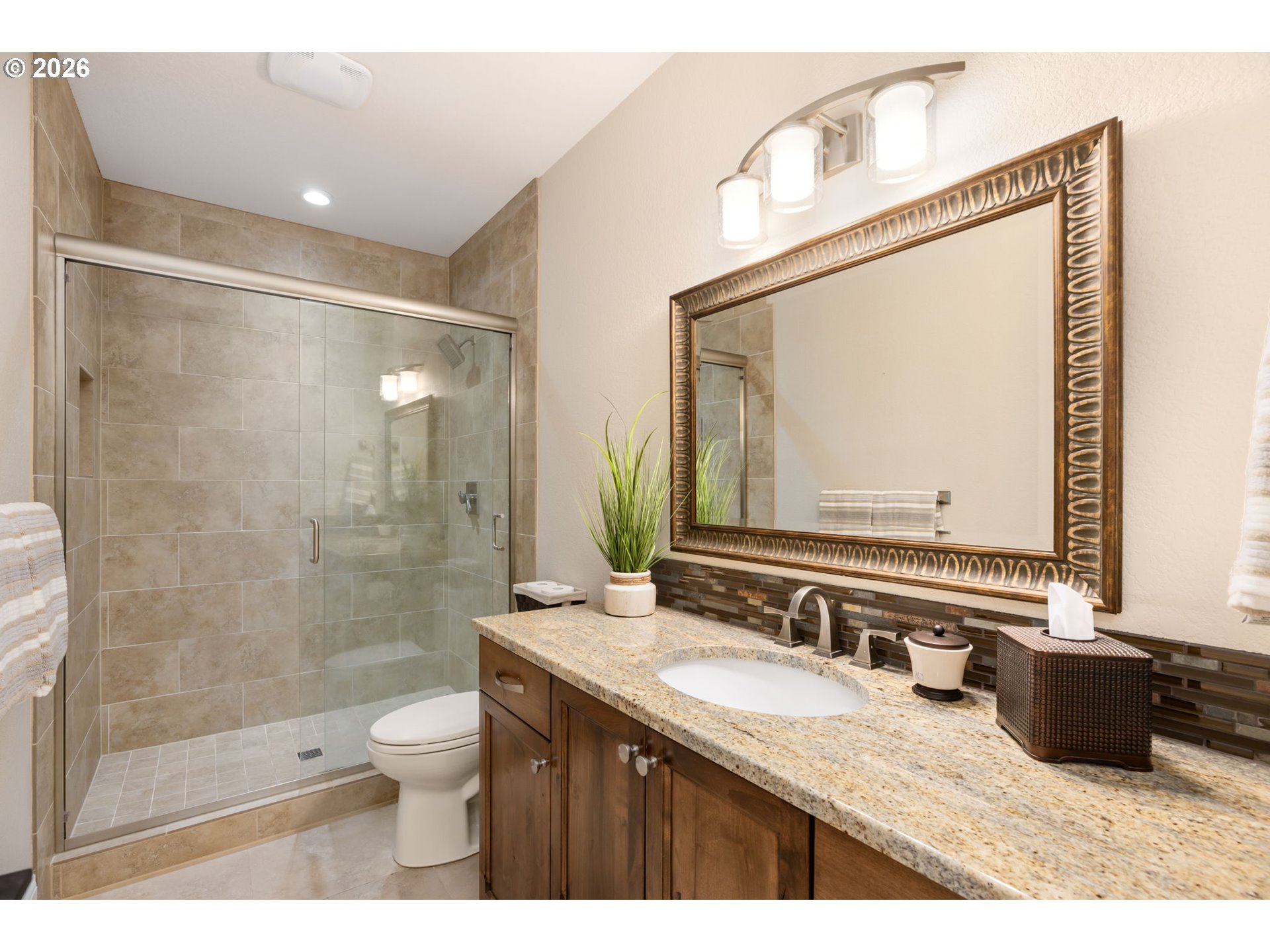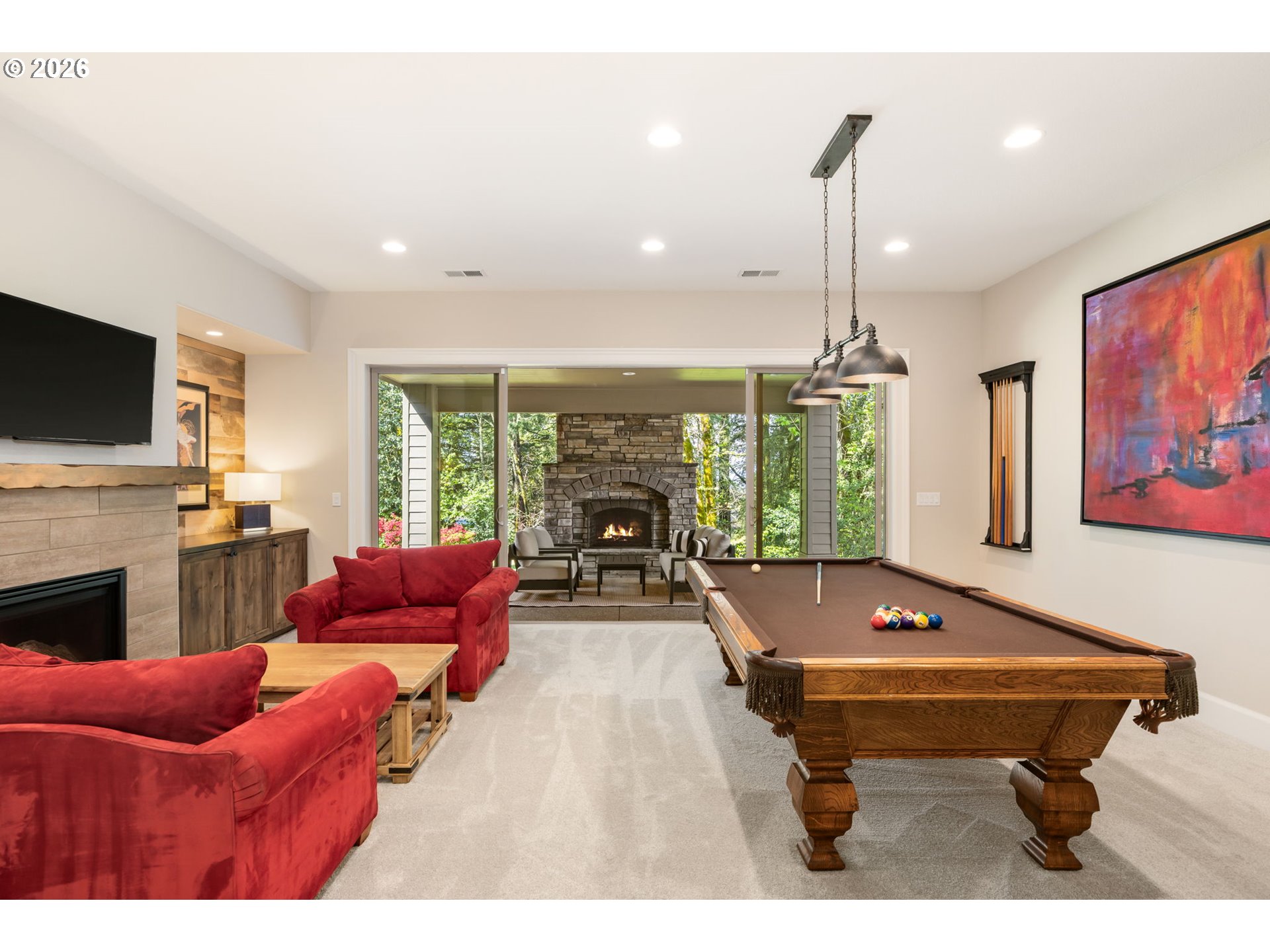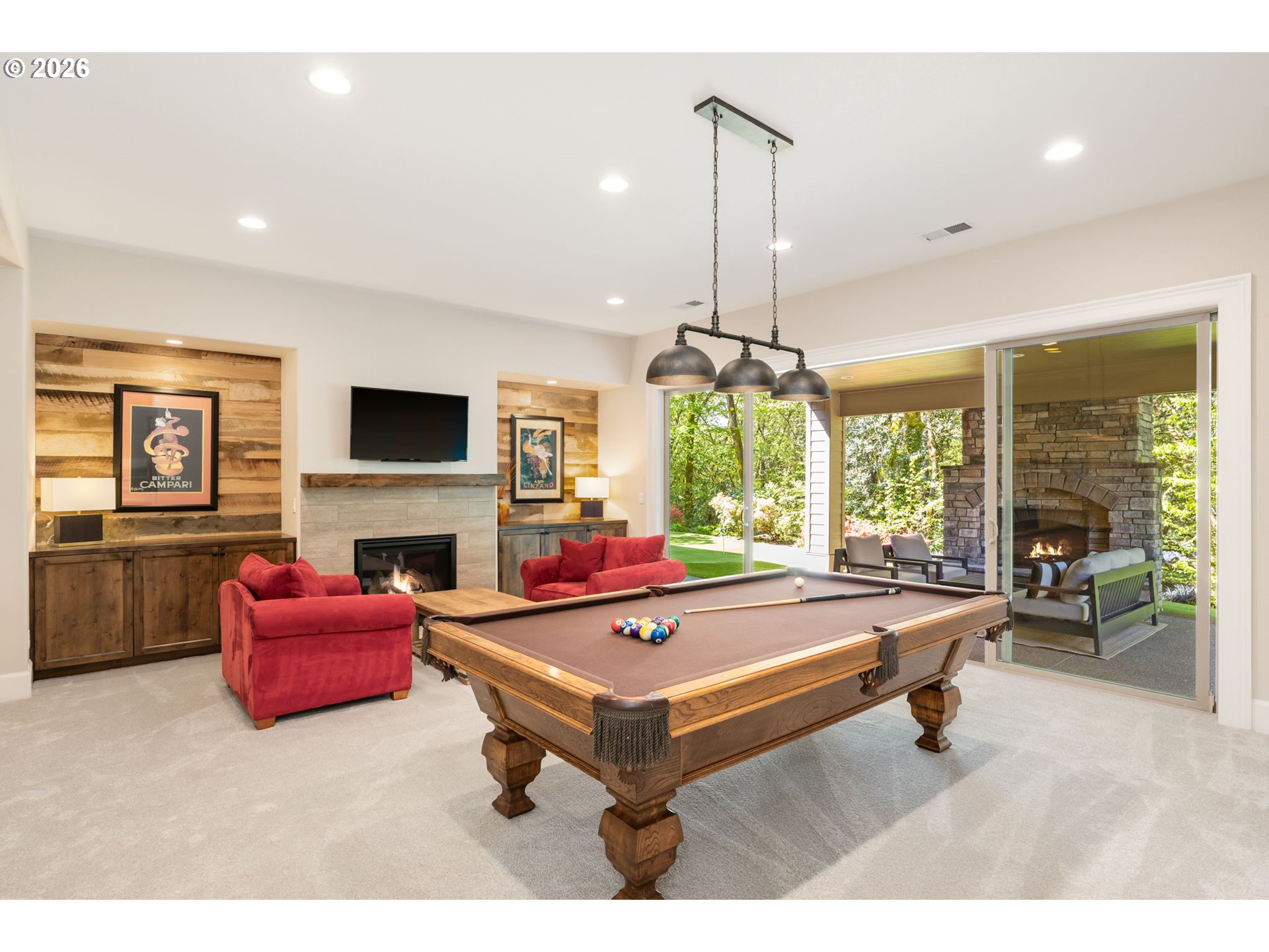 Experience exceptional living in this stunning custom home in Bull Mountain’s coveted Brentwood Estates - the 2011 Street of Dreams! Designed for both luxury and comfort, this light-filled home offers an open floor plan, exquisite custom cabinetry, and a rare main-level primary suite. The primary retreat features built-in dressers, open shelving, a cozy gas fireplace, dual walk-in closets with custom built-ins, a full-size stacked washer/ dryer, and a spa-like bath with double vanity, soaking tub, and walk-in tile shower. The gourmet kitchen is a chef’s dream with Sub-Zero refrigerator, Dacor six-burner gas cooktop, newer double wall ovens, dual sinks, and two dishwashers. The adjacent dining nook flows into a spacious mudroom and a two-car garage with epoxy floors, built-ins, EV charger, and hot/cold water. The great room showcases a dramatic 16’ Anderson wood slider opening to a covered terrace with a gas-start wood-burning fireplace and built-in grill—perfect for indoor-outdoor living. Downstairs features brand-new carpet throughout and a full entertainment level with game room, pool table, and gas fireplace. A large slider opens to a covered patio, second fireplace, and a private backyard with low-maintenance turf and your own putting green! Also included are two en suite bedrooms, an office/craft room, large laundry, and a large bonus room. A separate ADU offers a large bedroom, family room with surround sound, kitchenette, full bath, and access to an additional 1.5-car garage—ideal for guests, live in care-taker, or multigenerational living. Custom window coverings & plantation shutters throughout. Many custom and personalized touches throughout. Minutes to Progress Ridge and Hwy 99, 10 minutes to Washington Square Mall, 20 minutes to downtown. Washington County taxes. This one-of-a-kind home truly has it all. Call today for a private tour!