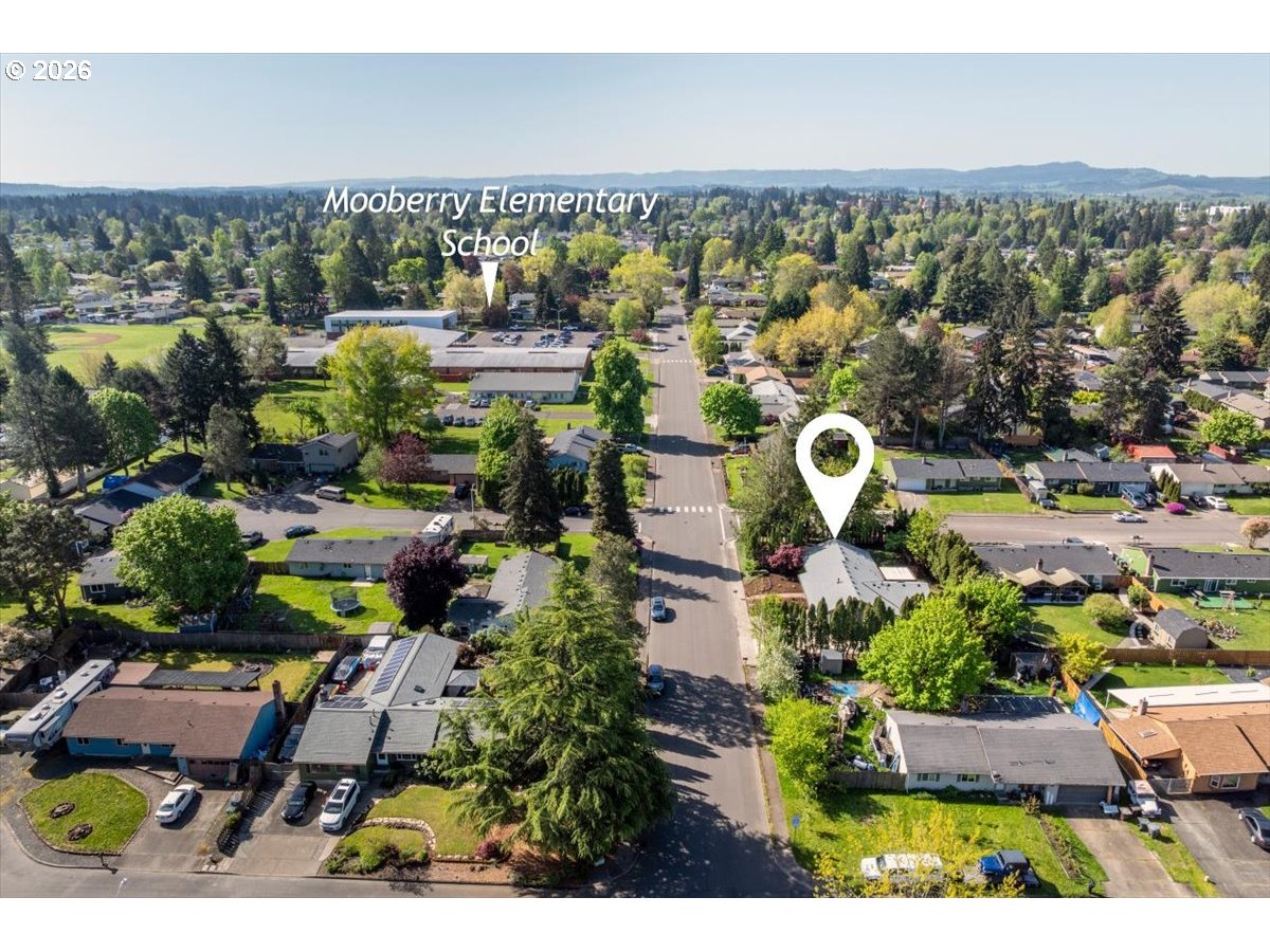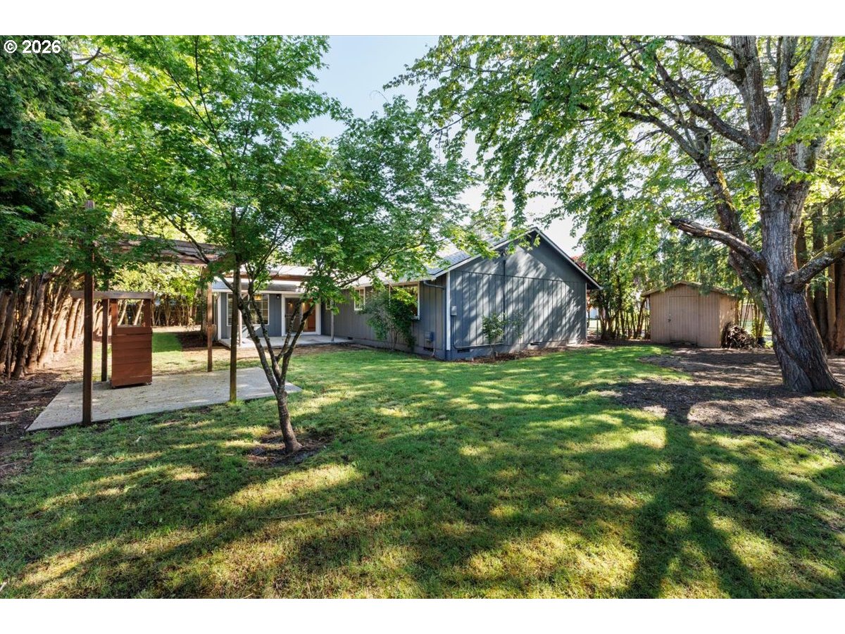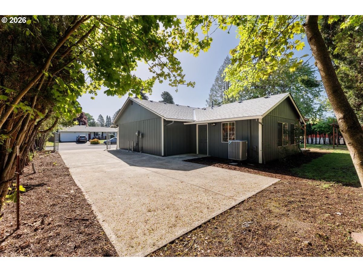 Enjoy easy one-level living in this beautifully updated 3-bedroom, 2-bath home. The refreshed kitchen features a new gas range, new dishwasher, new sink, and abundant cabinet storage with new hardware. A light-filled dining/family room offers a welcoming space with a skylight, multiple windows, and direct access to a covered patio—perfect for indoor-outdoor living. Fresh interior and exterior paint, along with new lighting throughout, give the home a clean, modern feel. The spacious laundry room adds convenience, while the heat pump ensures year-round comfort. 2 car garage with workbench. New Roof Oct. 2024. Outside, you’ll find a large fenced yard, shed and an expansive paved driveway adjacent to garage with plenty of room for RV, boat, or additional parking. One block to Mooberry Elementary, easy access to Downtown Hillsboro & Intel.
