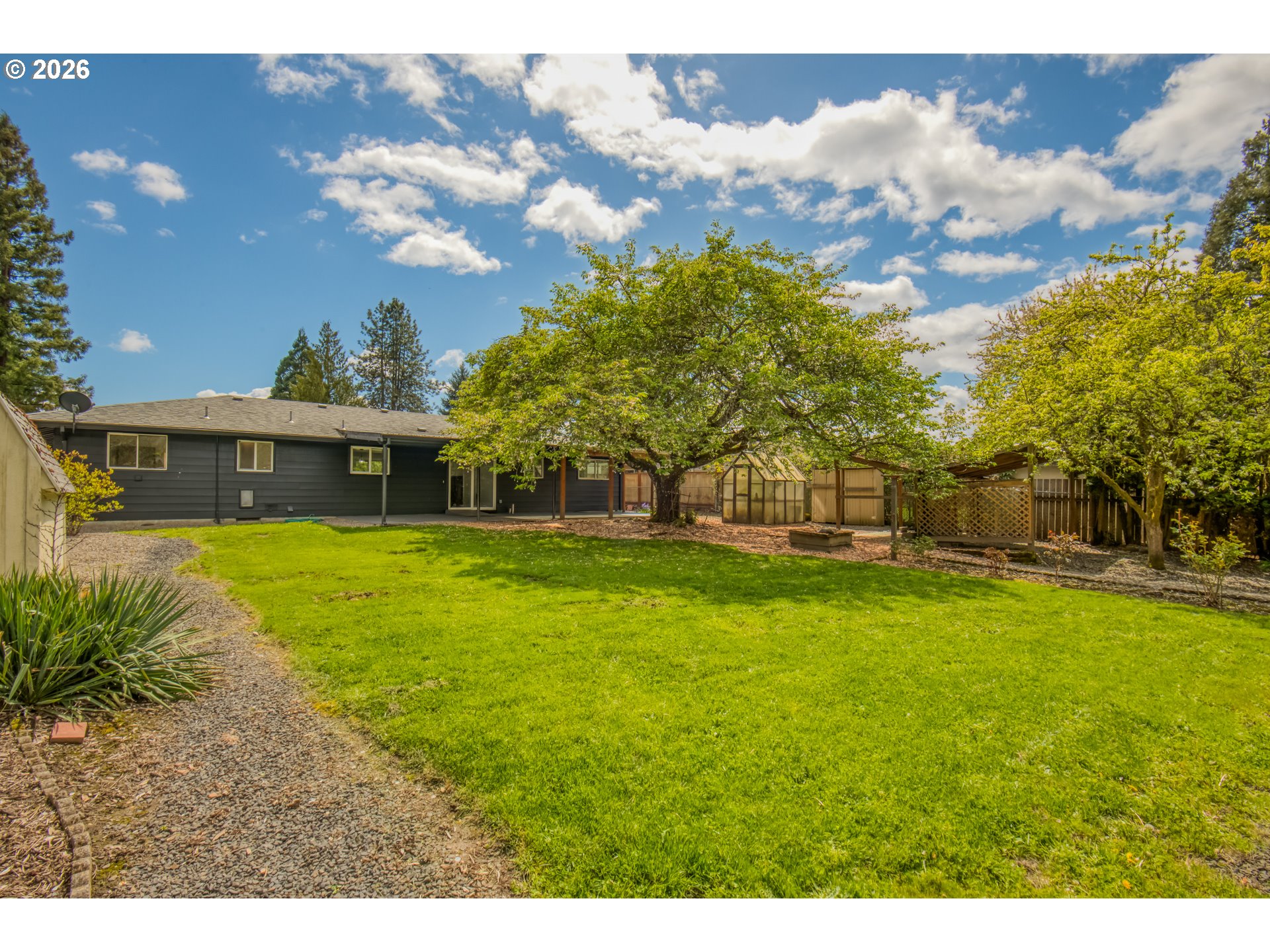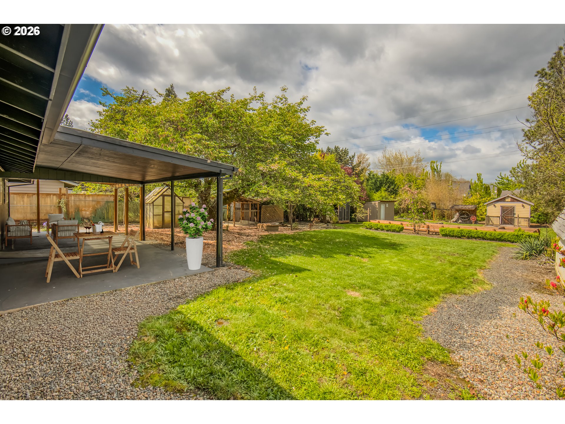 This is the one you've been waiting for! Very solid and well maintained 2 bd, 1 1/2 bath, 1 level home on almost 1/2 acre level lot with double car garage and RV/boat parking. Zoned R7, lot backs up to Bonnie Lane with possible development opportunity. Buyer to verify with city of Forest Grove. This move-in ready ranch has newer vinyl windows, new exterior paint and a well maintained 10yr old roof so you can be assured many years of carefree living! The interior has fresh, classically neutral paint, new flooring throughout and a brick wood burning fireplace to cozy up to on chilly nights. Preparing meals is a breeze in the updated kitchen with modern stainless steel appliances and breakfast bar. There are 2 comfortably sized bedrooms adjacent to the freshly remodeled bathroom. Another 1/2 bath and laundry area is available off the deep 2 car garage. Think big and make your dreamy primary suite or income producing ADU a possibility! Outside you will find a huge covered patio perfect for summer cookouts and making memories. There are several outbuildings and a shed with power already hooked up that would make a great shop, creative art space or whatever your heart wants! With a perfect mix of sun and shade, opportunities abound to get back to the land and create a gorgeous garden that will be the envy of the neighborhood. Don't wait to make this fine house your home! Furnished photos virtually staged.