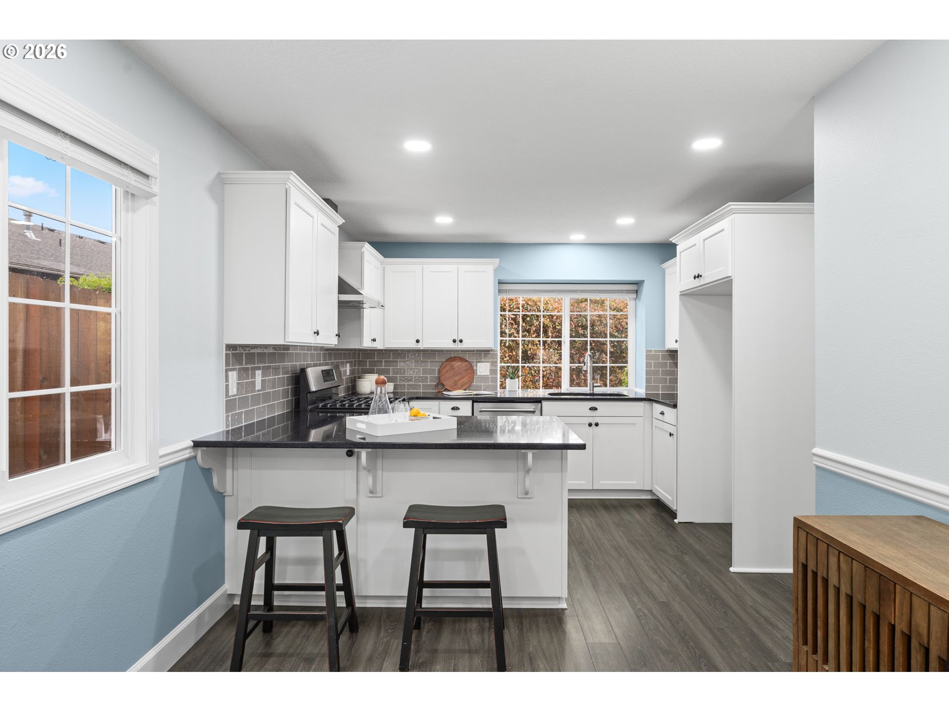 Tucked away on a quiet cul-de-sac, this beautifully updated Tigard traditional offers the perfect blend of comfort, style, and convenience. A welcoming split-level layout features a formal living room with a newer gas fireplace insert, spacious dining area, and a stunning kitchen with slab granite, statement tile backsplash, and stainless steel appliances. Upstairs, you’ll find two generous guest rooms, a hall bath, and a lovely primary suite with walk-in closet and ensuite. The lower level boasts a large family room with built-ins, plus laundry and a convenient half bath.Step outside to a private, professionally landscaped yard with terraced spaces, hardscaping, and raised garden beds - your own backyard retreat. Major updates include a brand new roof, newer flooring, A/C, furnace, fencing, and more - truly move-in ready! All just minutes to downtown Tigard, two Trader Joe’s, and the beloved Tigard Library.