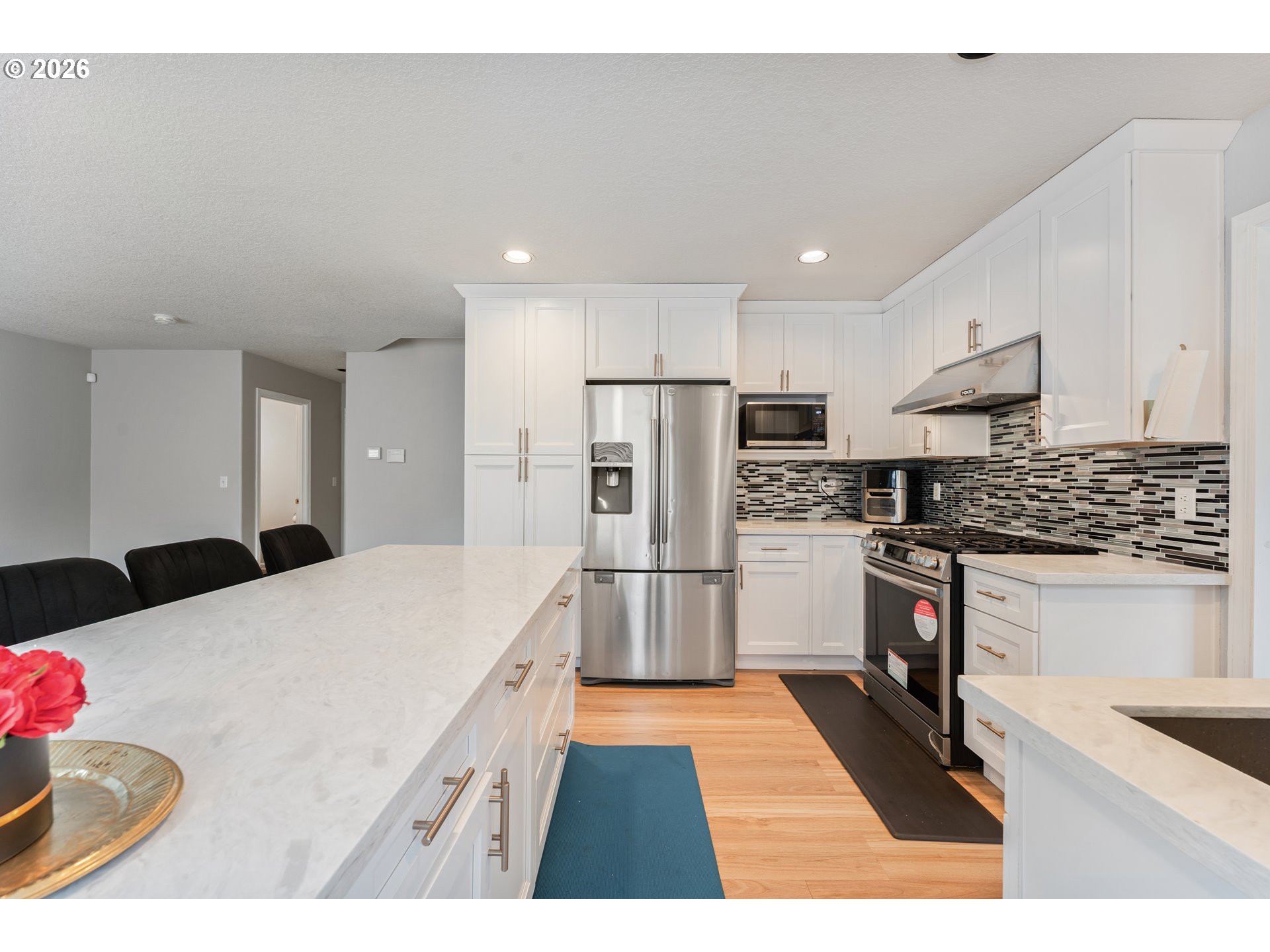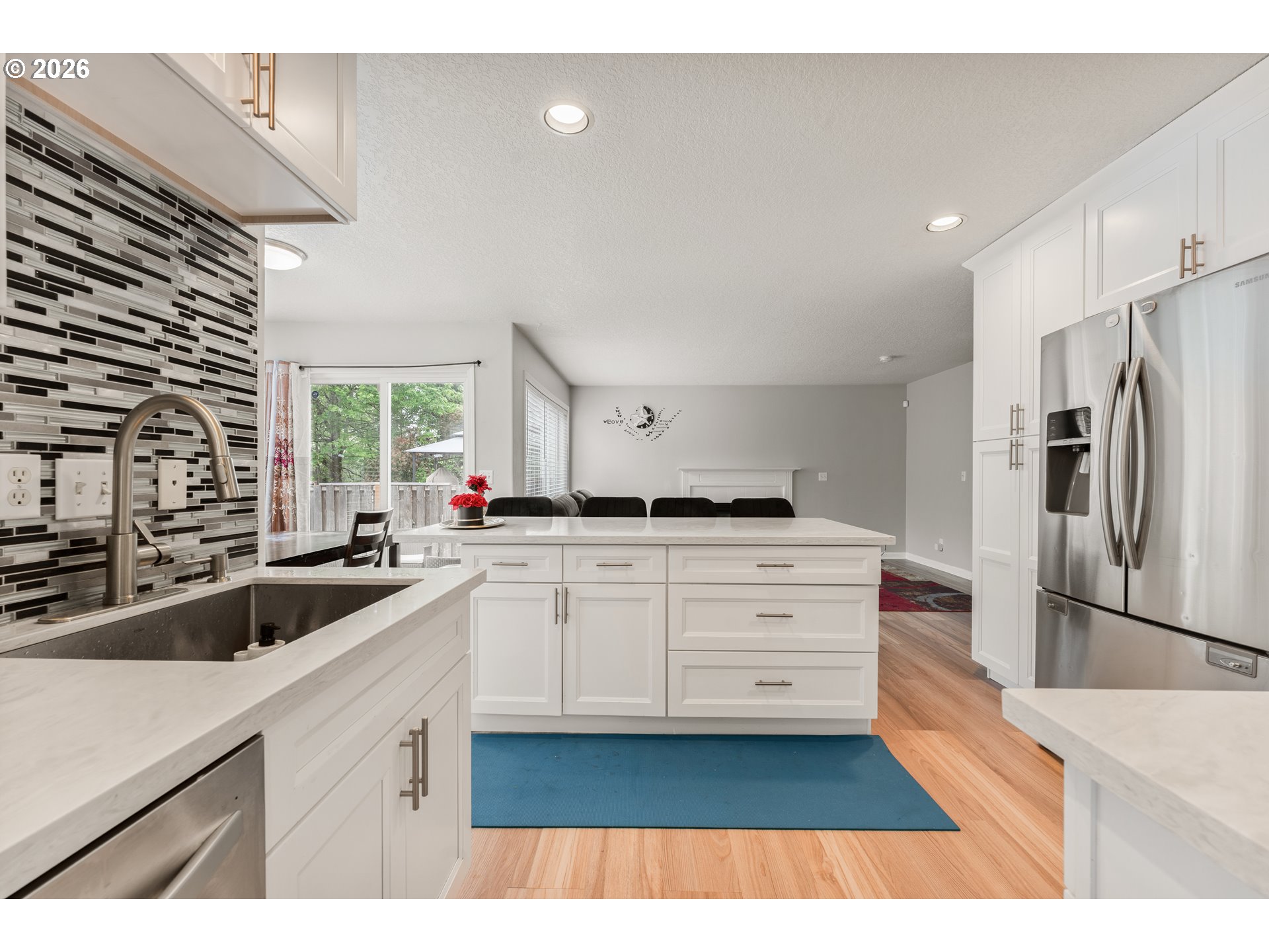 Charming home in an exceptional location on a level corner lot, offering comfort, style, and convenience. The beautifully updated kitchen showcases all new cabinetry, quartz countertops, gas cooking, and a large island, opening seamlessly to a cozy nook and inviting family room with a fireplace. Recent updates include new exterior paint, new carpet, luxury vinyl plank flooring, a new side fence, and a newer roof (2022), with major systems already taken care of thanks to a newer furnace and AC (2021). Upstairs, you will find four bedrooms, including a spacious primary suite featuring a walk in closet, tray ceiling, dual vanity, and skylight. The private, south facing backyard provides great natural light and a perfect space to relax or entertain. Located in a highly regarded school district and just minutes to parks, trails, and Bethany amenities, with easy access to walking paths and Highway 26 for an easy commute. Additional highlights include stainless steel appliances, with the washer, dryer, and freezer included, plus close proximity to Bethany Village for shopping, dining, and everyday essentials, along with access to THPRD programs offering excellent recreational opportunities for all ages.