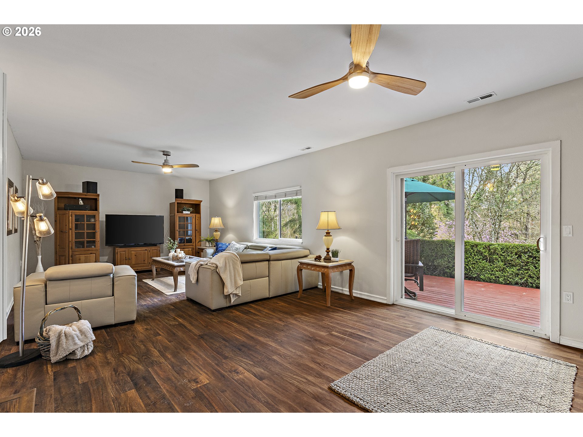 Rare Bull Mountain retreat on .76 of an acre backing to protected greenspace. This fully updated home offers true main-level living, 4 bedrooms, and a finished lower level with 2 additional bedrooms/bonus options. The main level features a large living room with panoramic forest views, gas fireplace, formal dining with bay window, new flooring, and a large deck overlooking tranquil landscaped grounds with waterfall and pond. With 2,884 sq ft of thoughtfully designed space, the home combines privacy, flexibility, and turnkey updates. The main level features panoramic forest views, a gas fireplace, formal dining with bay window, and a large deck overlooking tranquil landscaped grounds with waterfall and pond.The expansive eat-in kitchen includes a large island, granite countertops, stainless steel appliances, double oven, and abundant storage—perfect for everyday living and entertaining.The spacious primary suite offers commanding forest views and an updated ensuite bath. Two additional main-level bedrooms share an updated bath.Downstairs, enjoy a large living room basement with cozy fireplace, patio access, and flexible rooms with closets—providing excellent separation for guests, office use, or extended living.Extensive upgrades include HVAC, plumbing updates, and a brand-new roof. Oversized heated two-car garage offers additional workspace or hobby potential.Just minutes from Sunrise Park, trails, top-rated schools, shopping, dining, and major employers including Nike and Intel.Privacy, space, and flexibility—rarely found in one property.