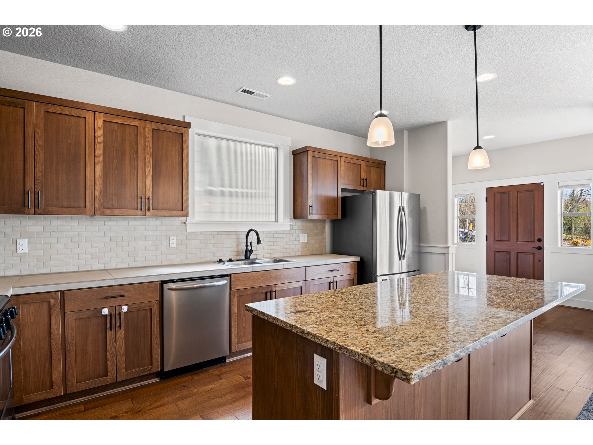 BuiltinRefrigerator, Dishwasher, Disposal, Granite, Island, Microwave, StainlessSteelAppliance