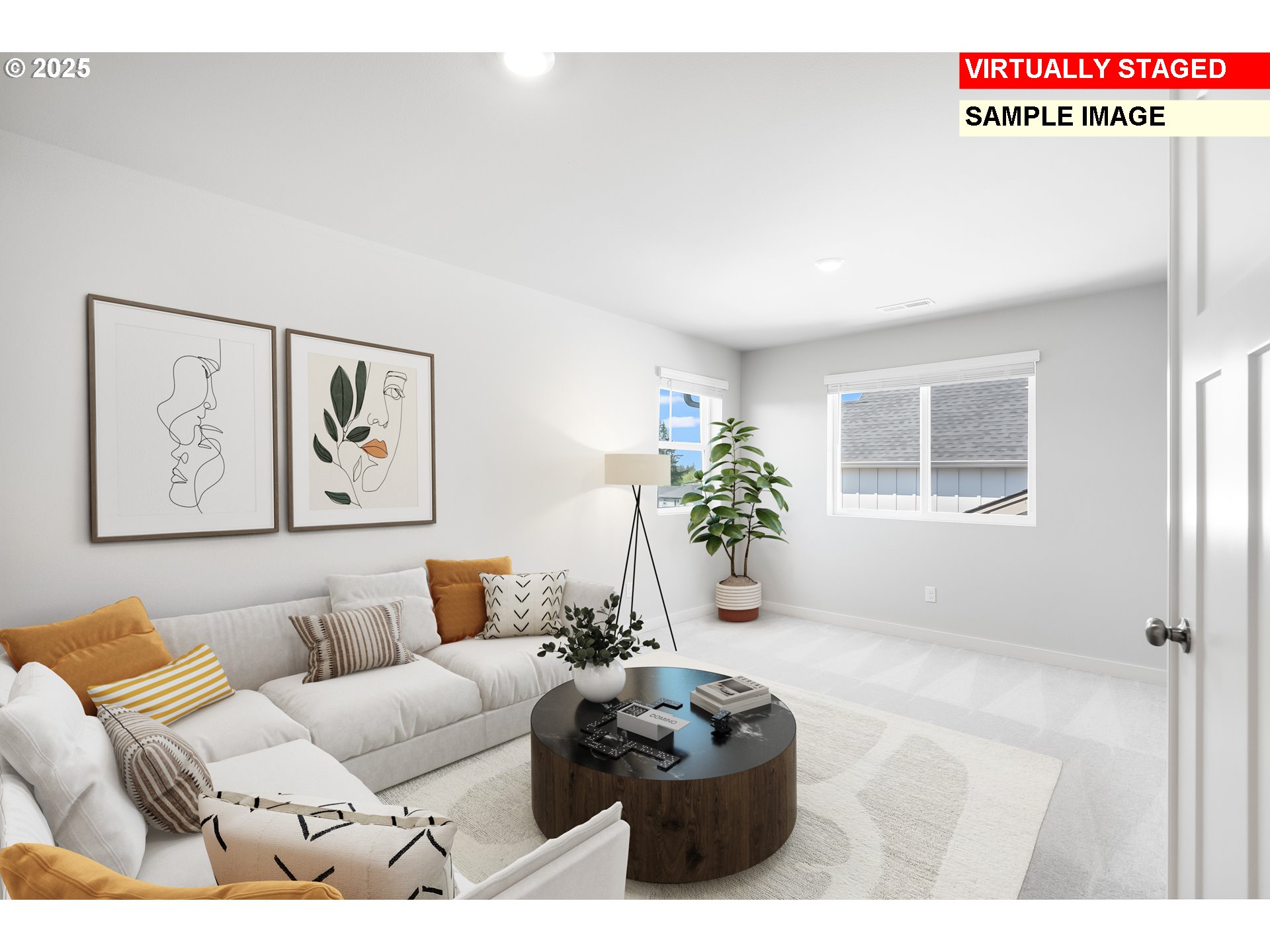 This move in ready, new construction two-story home is located at South River Terrace, a community near schools, shopping, dining, and freeway access, with its own park and sports courts. The Judith plan includes a main-level bedroom near the entry plus an expansive great room with fireplace, dining area, and kitchen that flow to a patio. Upstairs, three additional bedrooms, a bonus room, and the private primary suite with a soaking tub and walk-in closet complete the layout. Interior details include quartz countertops, shaker-style cabinets, LVP flooring, two-tone paint, and a separate tub and shower in the primary bath. This home also includes central air conditioning, a refrigerator, washer and dryer, and blinds—all at no extra cost! Located on Homesite 180 Judith. Estimated completion is May. Rendering is artist conception only. Photos are of a similar home, features and finishes will vary.