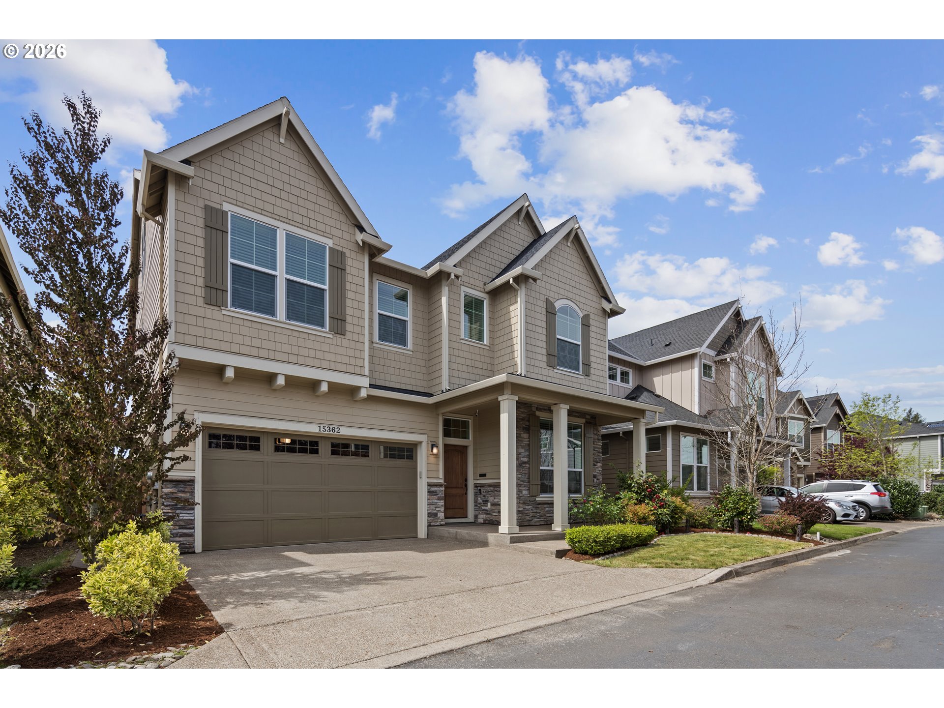 Tucked back on a private road in desirable North Bethany, this spacious three-level home offers the perfect blend of comfort, flexibility, and convenience. With 5 bedrooms and 3 full bathrooms, including a bedroom and full bath on the main level. Built by Noyes, a local quality builder, this home is loaded with a lot of upgrades. The downstairs bedroom could also be converted to a home office. This thoughtfully designed floor plan is ideal for hosting guests or multigenerational living. A formal dining room welcomes you in and flows into the expansive kitchen, featuring a gas cooktop, stainless steel appliances, and plenty of space for gathering. The kitchen opens to the inviting living room, complete with a stunning floor-to-ceiling gas fireplace and built-in bookcases. An additional dining area provides easy access to the covered patio and backyard, making indoor-outdoor entertaining effortless. Upstairs, double doors lead to the spacious primary bedroom, complete with a large en-suite bathroom and walk-in closet. The second level also features additional bedrooms, a versatile loft area, and a full laundry room for added convenience. The third level offers a generous bonus space with endless possibilities - perfect for a home theater, game room, gym, or additional living area. Step outside to enjoy the private backyard (no homes facing behind) with territorial views, complete with a pavers, large patio and raised garden beds ideal for relaxing, entertaining, or gardening enthusiasts. Additional highlights include a 2-car attached garage. Located within sought-after school boundaries for Sato Elementary School, Stoller Middle School, and Westview High School, this home is also just minutes from Bethany Village, offering convenient access to shopping, dining, parks, and scenic walking and running trails. To top it all off, a fully paid off and owned 4.3 KWH Solar system and EV Charger in the garage is included! This North Bethany gem truly has it all!