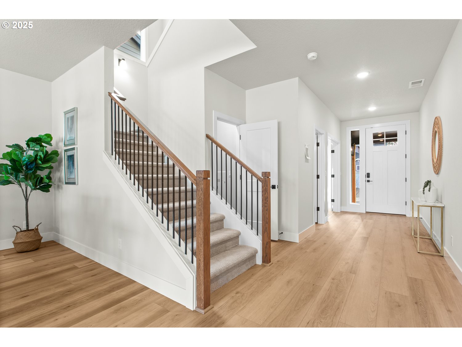 This daylight basement home features generous living space throughout plus stunning territorial views from upstairs. Appointed with mission style alder cabinetry, a gourmet kitchen with slab quartz countertops and undermount sinks, a walk-in pantry off the owner's entry and stainless steel Whirlpool appliances, including 5 burner gas cooktop w/hood vent, built-in double-ovens, microwave and SS tub dishwasher. A large dining area and a den/5th bed on the main level. Upstairs you will enjoy an expansive primary suite with generous walk-in closet and adjoining bath with all tile shower and soaking tub plus 2 additional bedrooms and a large bonus/4th bed. Fully landscaped front and rear yard. Fenced back yard with gate. Seek solitude or fun in the daylight basement featuring a rec room and full bath. Central air conditioning, tankless hot water heater and built with energy saving features! Builder incentive available!