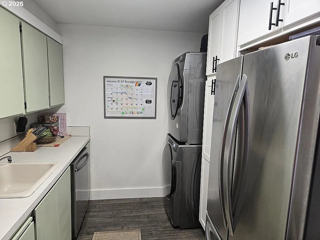 Dishwasher, FreeStandingRange, FreeStandingRefrigerator, Microwave, RangeHood, StainlessSteelAppliance