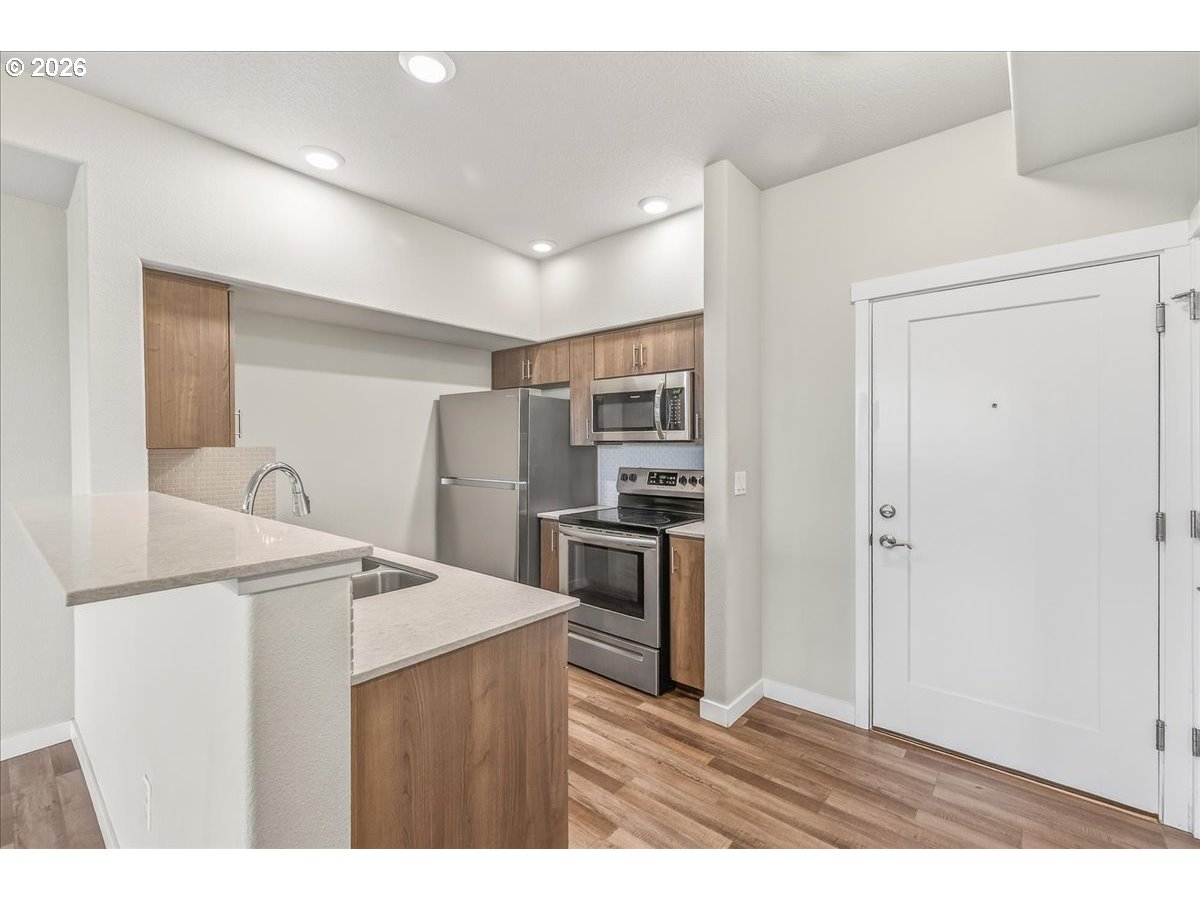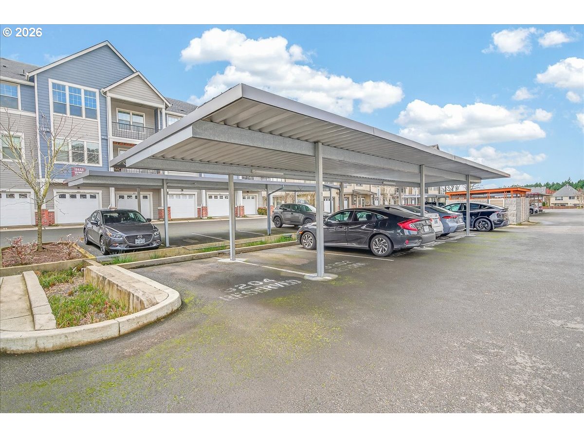 The best value in the complex and the best location! Move in ready one bedroom, with a view out over open area to the north from your private patio and both the bedroom and living area. Ground level living with absolutely no stairs and covered parking spot just a few steps from the front door. If you are looking for an affordable spot to call home, this is it! Low HOA dues, low Washington County taxes, yet close in enough to be part of all the fun in downtown Portland in a few minutes, then come home to your peaceful and quiet sanctuary. The secure building includes community bike storage, and the condo comes with all the appliances, you can truly just move right in and enjoy your new home.