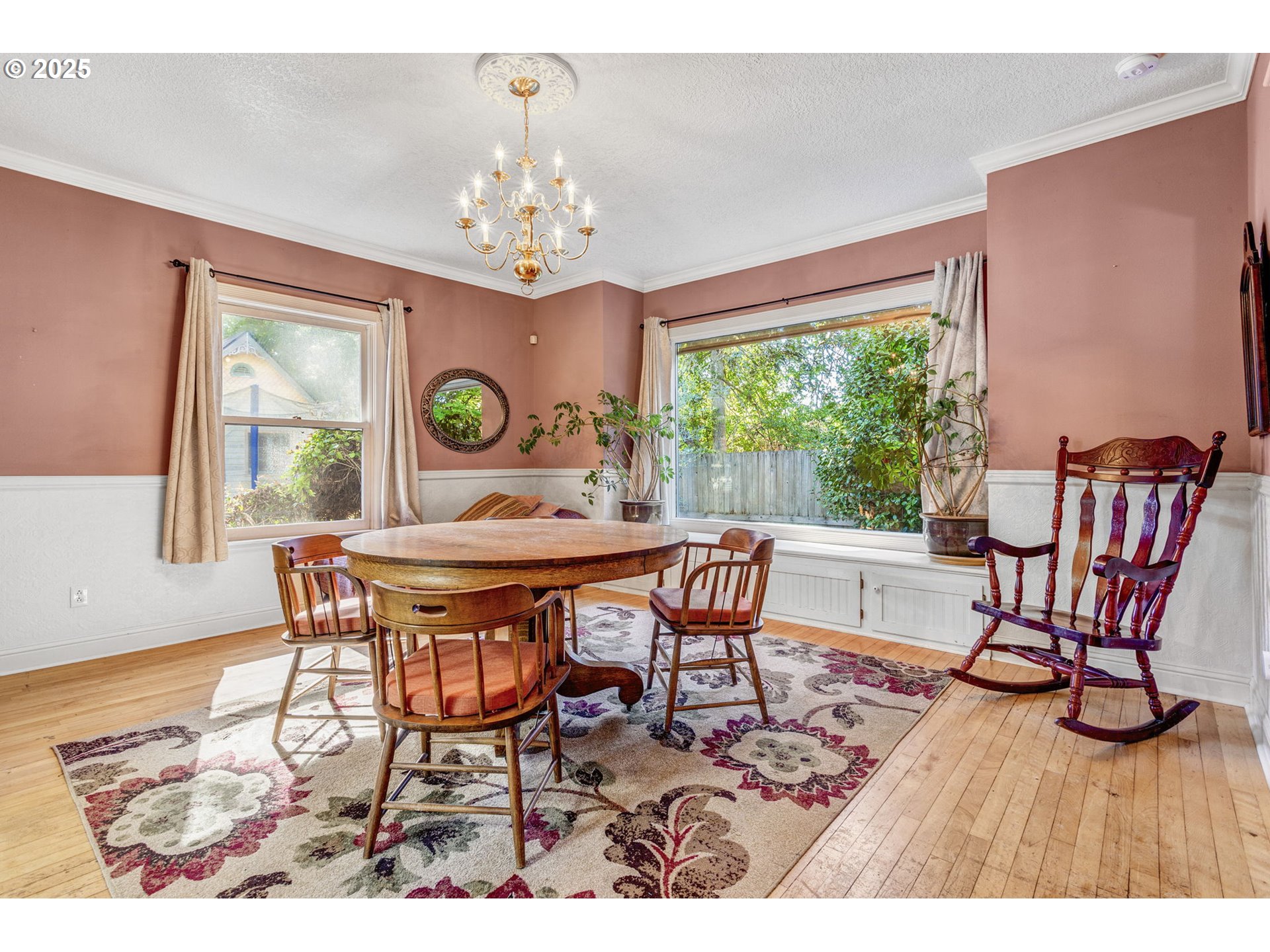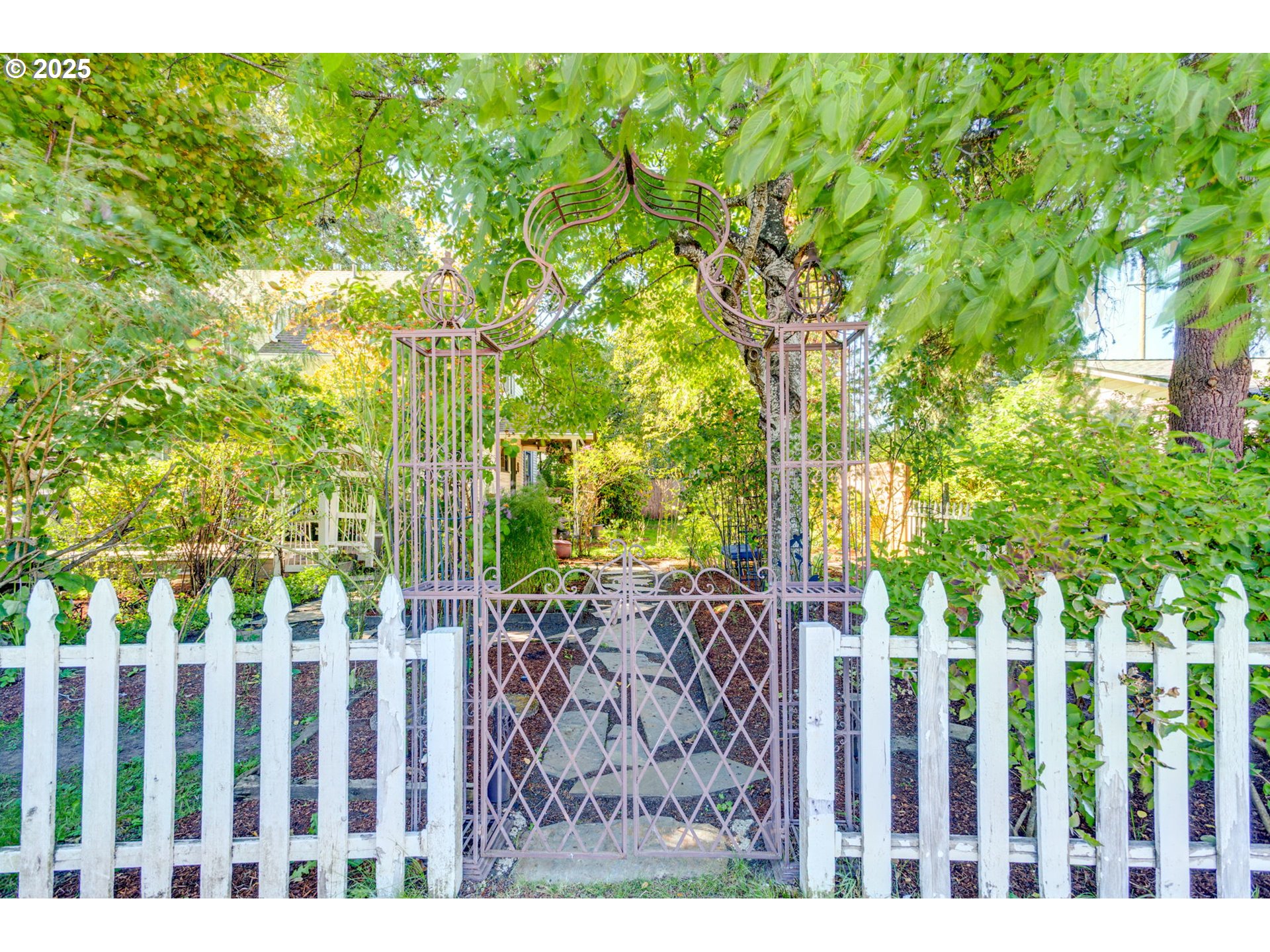 Welcome to this beautiful 1913 converted 4 square farm house on a 1/4 acre wraparound yard. The various fruit trees(apple, pear, fig, and walnut etc.) and mature oak trees help to isolate you from the outside world while still being by max and shopping, dining and everyday conveniences. English style rose garden, blueberries, raspberries, grapevines as well as perennials/shrubs are scattered throughout the yard. Backyard Habitat Certification in process visit backyardhabitats.org if u are continuing.Large mudroom with built -in shoe cabinets and sink leads to the kitchen with Myrtlewood accents and several leaded glass cabinet features. Bottom cabinets in kitchen have pull outs for easy access. Pecan hardwood in the living and dining room. Pocket doors in downstairs full bathroom hide the washer and dryer from sight. Leaded stain glass window at bottom of staircase. Bonus area the top of the staircase. all bedrooms have ceiling fans and wall to wall carpet. Upstairs bathroom has an oversized tub and adjustable shower head. 500 plus square feet of Trex decking, 4,000 gallon Koi pond, his or hers shed (with electricity) and a 16ft by 12ft aluminum gazebo attached to pavers create a year round outdoor living space. Side yard with enclosed turf area means easy clean up and plenty of outdoor fun, room for as pets. Fully fenced yard. Functional greenhouse (with electricity/and water) makes it easy to weather over plants and get an early start on your seedlings.Tankless gas water heater 2025. Artificial turf 2024. Gutter Shutter system on garage and house 2023. Trex decking , pavers, aluminum gazebo, Rainbird ( remote ) irrigation system 2021. Trane Heater (gas)/AC new in 2018