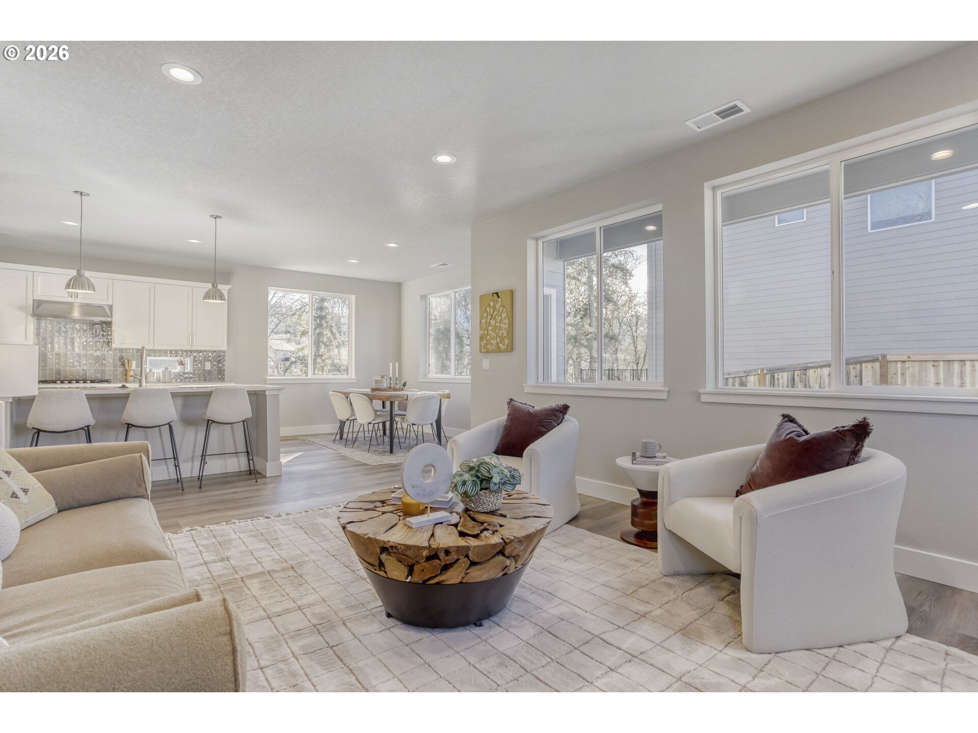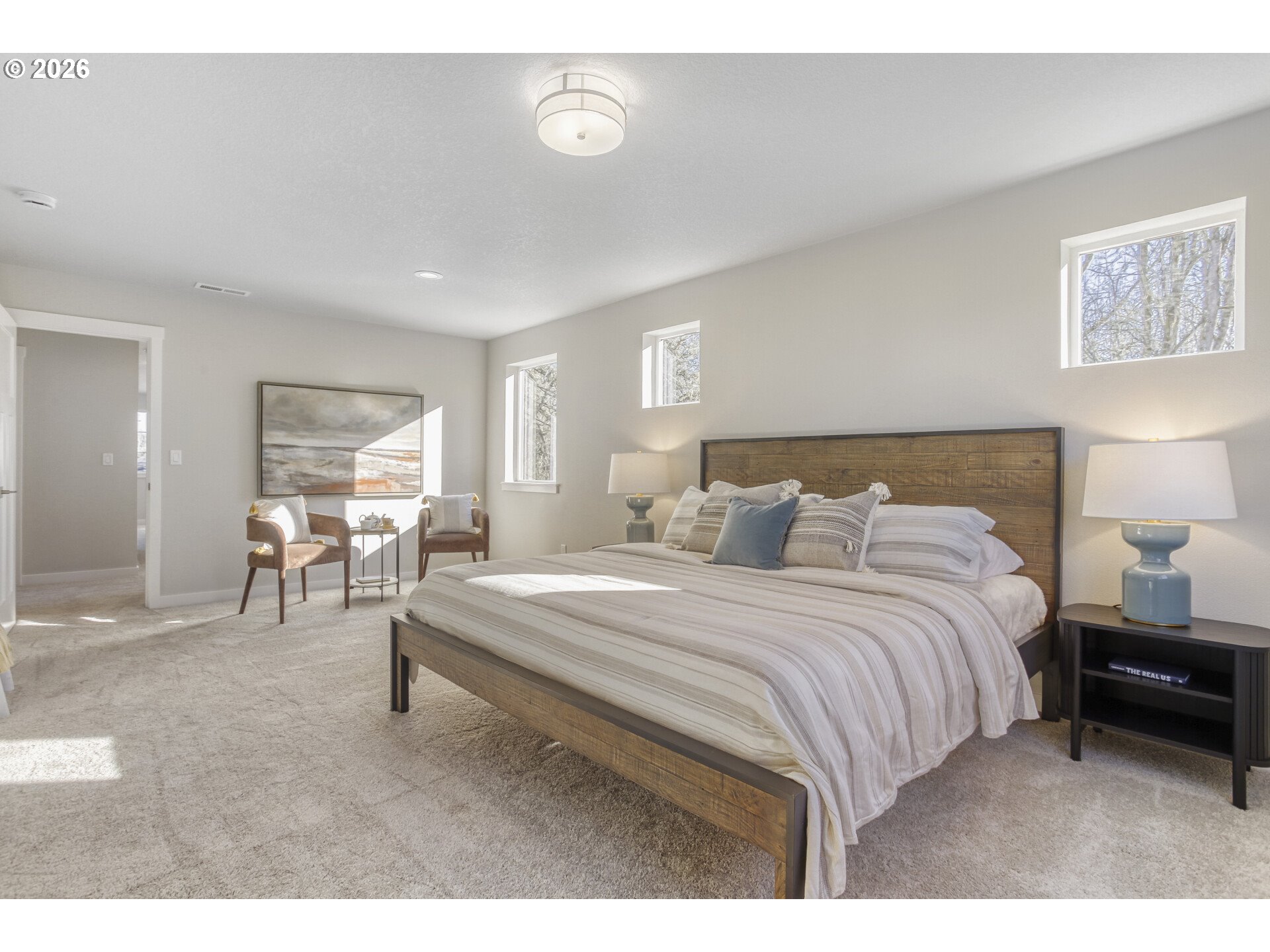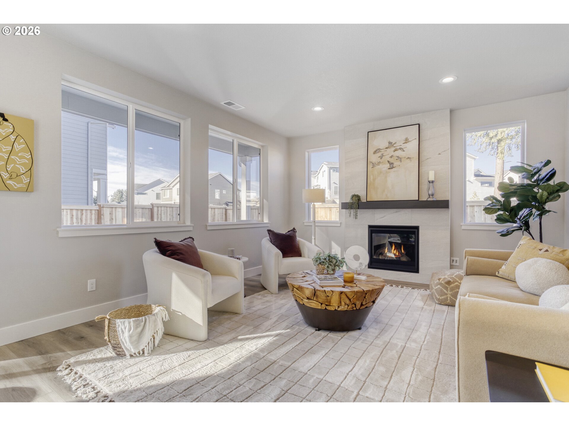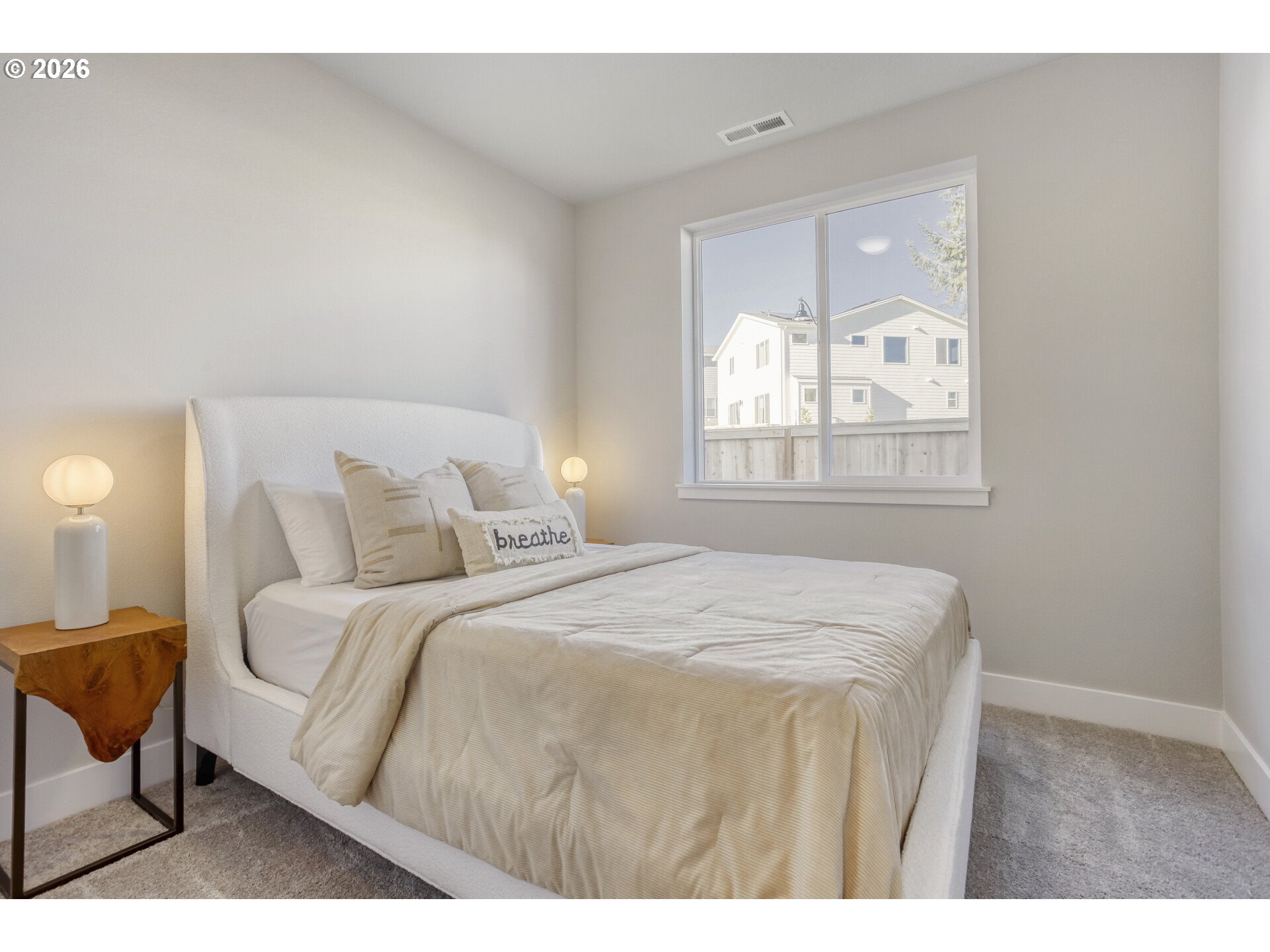 Move in ready new construction! Tucked against a tranquil greenspace, this 4-bedroom, 3 full bath home offers rare natural privacy. Thoughtfully designed with a flexible floorplan, this home delivers modern comfort with timeless appeal. Light pours through expansive windows, framing serene views and creating an easy flow between indoors and out. The open main level is ideal for both everyday living and entertaining, anchored by a beautifully appointed gourmet kitchen with sleek finishes, generous storage and a welcoming connection to the living and dining spaces. A full bedroom and bath on the main level provide flexibility for guests, multigenerational living, or a dedicated home office. Upstairs, the primary suite feels like a private retreat with wooded views, complete with spa-inspired bath and walk-in closet. Two additional bedrooms, a full bath, and a versatile bonus space round out the upper level, offering room to grow, gather, and recharge. Backing to protected greenspace, the backyard becomes a peaceful extension of the home—perfect for morning coffee, evening sunsets and moments of quiet. With new construction peace of mind, energy-efficient features and a coveted Sherwood address, this home invites you to settle into something both beautiful and enduring. Award winning schools, neighborhood trails, community park, minutes to shopping, historic downtown Sherwood and gateway to wine country. Open Sun 1-4pm.