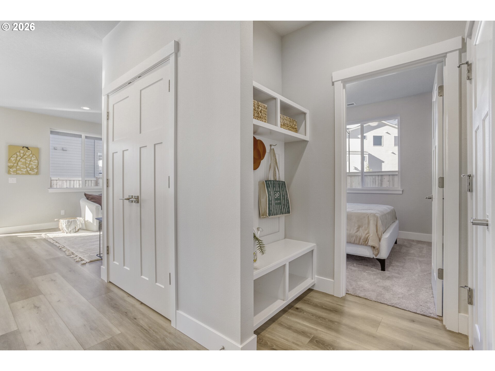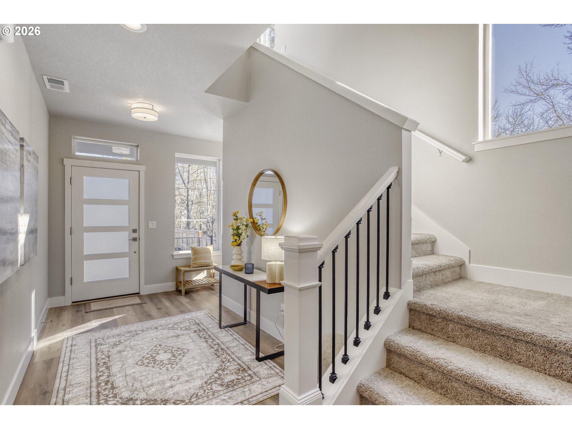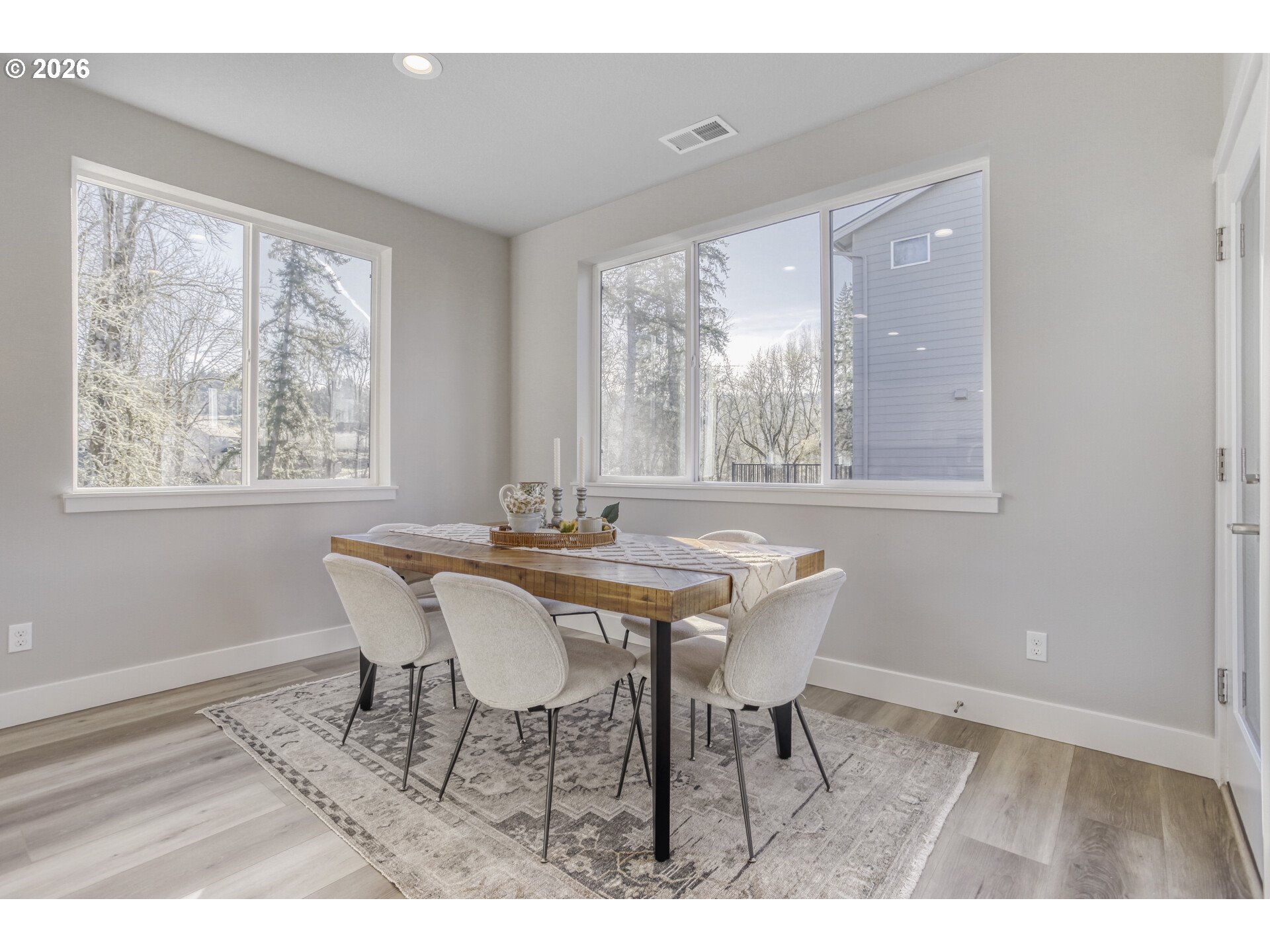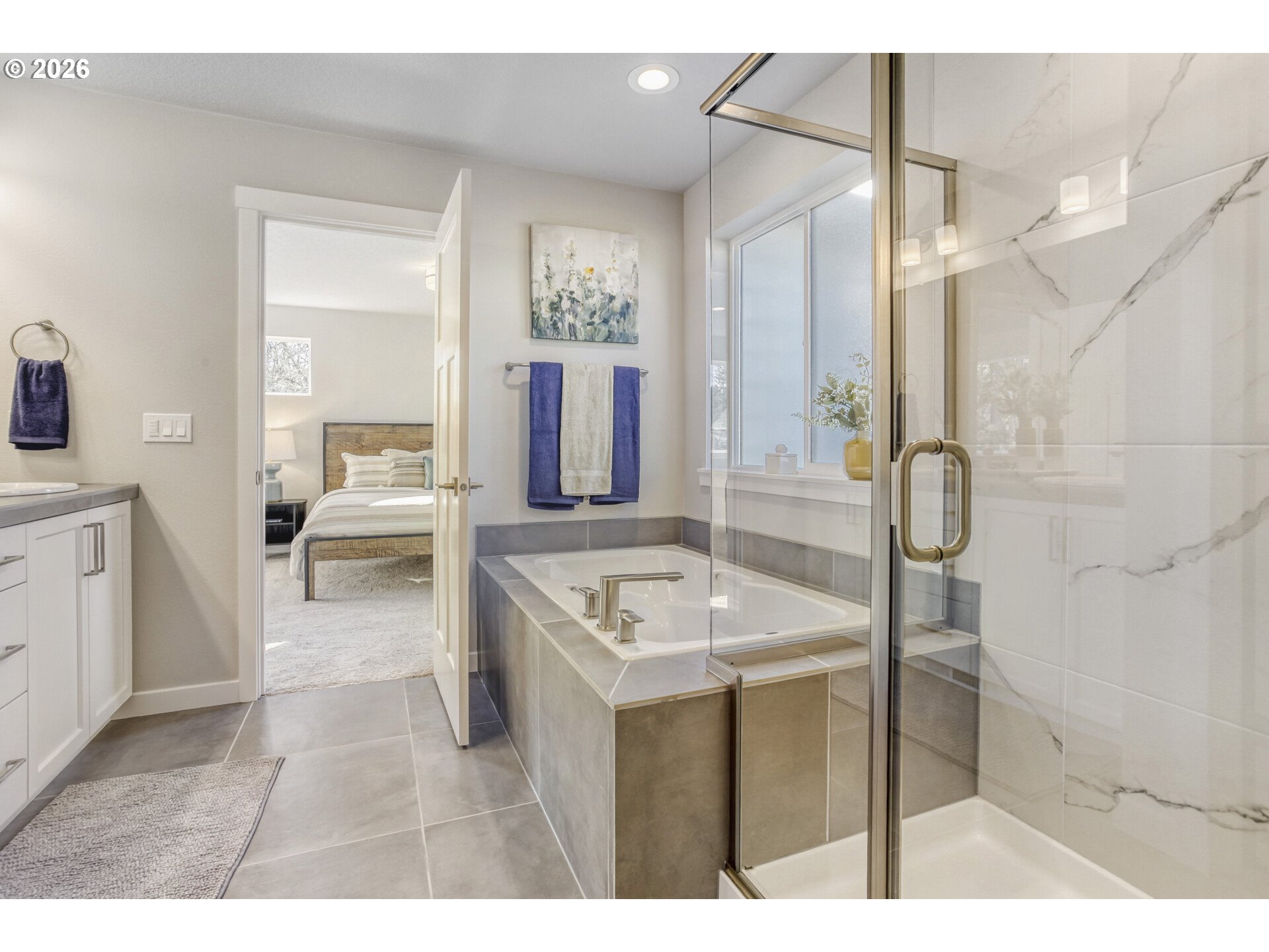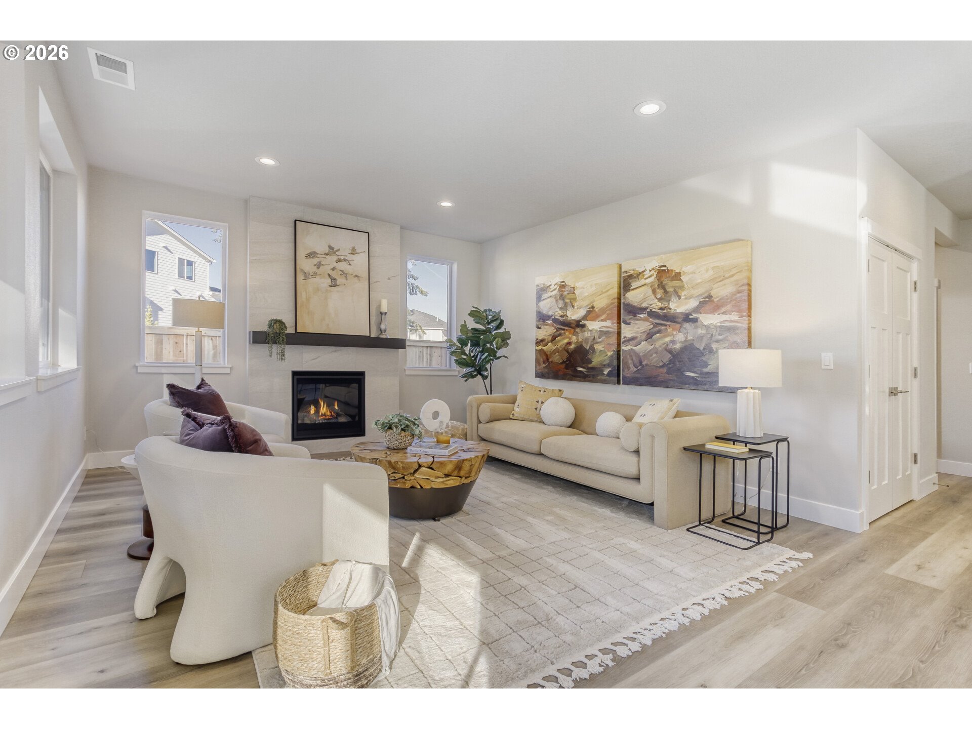 Move in ready new construction! Tucked against a tranquil greenspace, this 4-bedroom, 3 full bath home offers rare natural privacy. Thoughtfully designed with a flexible floorplan, this home delivers modern comfort with timeless appeal. Light pours through expansive windows, framing serene views and creating an easy flow between indoors and out. The open main level is ideal for both everyday living and entertaining, anchored by a beautifully appointed gourmet kitchen with sleek finishes, generous storage and a welcoming connection to the living and dining spaces. A full bedroom and bath on the main level provide flexibility for guests, multigenerational living, or a dedicated home office. Upstairs, the primary suite feels like a private retreat with wooded views, complete with spa-inspired bath and walk-in closet. Two additional bedrooms, a full bath, and a versatile bonus space round out the upper level, offering room to grow, gather, and recharge. Backing to protected greenspace, the backyard becomes a peaceful extension of the home—perfect for morning coffee, evening sunsets and moments of quiet. With new construction peace of mind, energy-efficient features and a coveted Sherwood address, this home invites you to settle into something both beautiful and enduring. Award winning schools, neighborhood trails, community park, minutes to shopping, historic downtown Sherwood and gateway to wine country. Open Sun 1-4pm.
