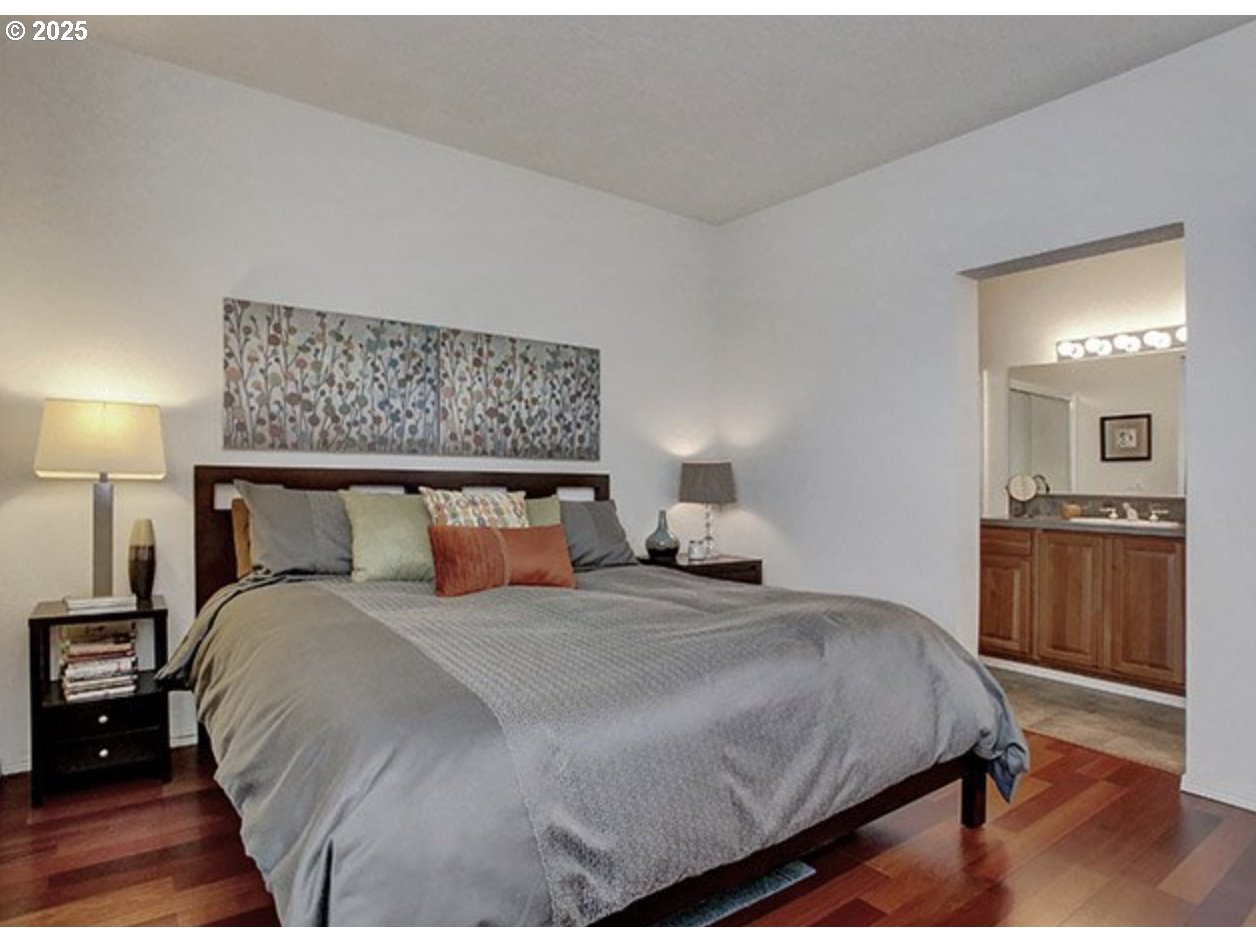 Beautiful upper one level in Orenco Station! Cherry floors and cabinets, beautiful kitchen with tile, high ceilings with ton of natural light, primary suite includes walk-in-closet and full bath. Don't miss out on this!