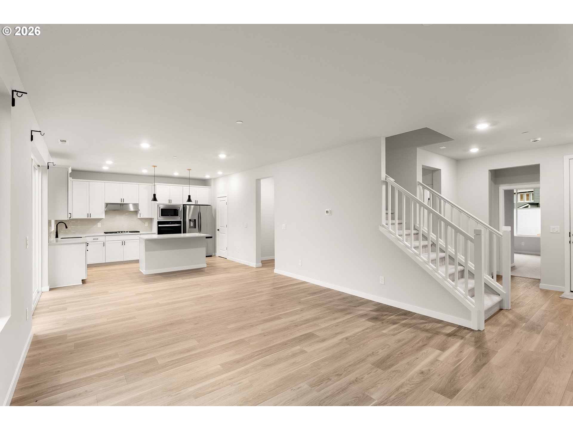 Open House: Sat 4/11 & Sun 4/12 1-3pm. Beautiful 5-bedroom, 3-bath home in the desirable Abbey Woods Terrace community in Portland’s sought-after Bethany area. Located on a quiet private road, this spacious two-level floor plan features a bedroom and full bath on the main level—ideal for guests or multi-generational living. A charming covered front patio welcomes you inside to a light and bright open-concept living room. The gourmet kitchen offers a slab quartz island with eating bar, subway tile backsplash, stainless steel appliances, gas range, pantry, and abundant cabinetry, flowing into the informal dining area with a tall sliding glass door to a LARGE backyard and patio—perfect for entertaining. Upstairs includes a versatile loft, generous guest bedrooms, a second-level laundry room and a spacious primary suite with dual sinks, luxury glass shower, and walk-in closet. Central gas heating and A/C complete this exceptional home. Close to Nike, Intel and other high tech jobs. Close to neighborhood parks, PCC parks and recreation center.