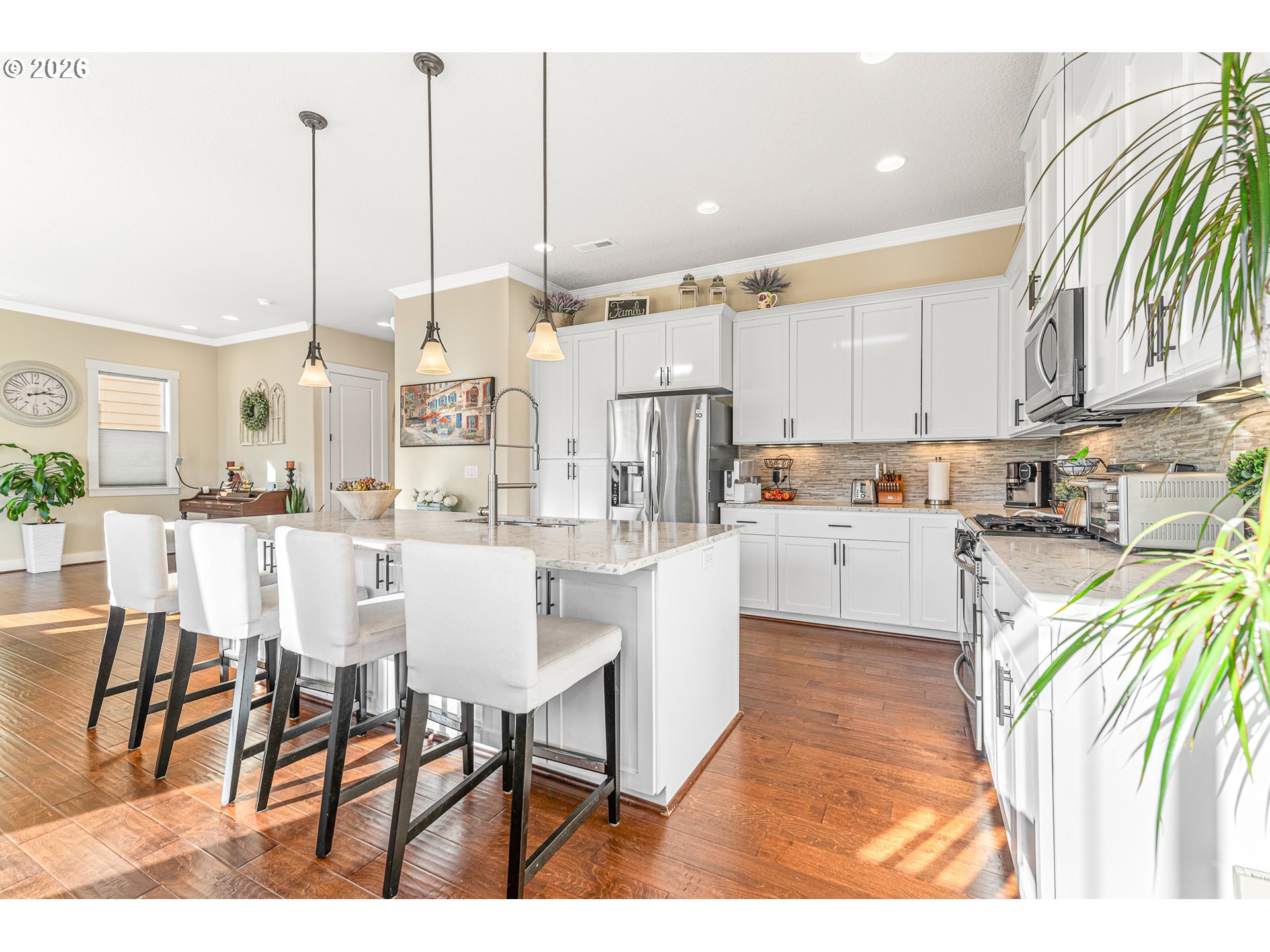 Welcome home to this beautifully appointed 4-bedroom residence where modern design meets everyday comfort, ideally located in Beaverton’s highly sought-after River Terrace community.The sun-filled main level showcases an impressive kitchen anchored by an oversized granite island—perfect for casual mornings or effortless entertaining. Stainless steel appliances, a gas range, and abundant cabinetry make the space both stylish and functional. Expansive windows bathe the home in natural light, while the generous dining area and spacious living room provide seamless flow for gatherings of any size.Upstairs, all four bedrooms are thoughtfully situated, including a serene primary suite designed for relaxation. Dual walk-in closets offer exceptional storage, and the spa-like ensuite features a deep soaking tub and an oversized tiled shower.The daylight basement adds exceptional flexibility, ideal for a home office, media room, or bonus living space. Outdoor living is equally inviting with both an upper deck and a covered lower deck, creating year-round opportunities to enjoy the Pacific Northwest lifestyle.Residents enjoy access to outstanding community amenities, including a fitness center, seasonal pool, community center, and party room. Conveniently located by top-rated schools, parks, and natural areas, this home truly offers the best of comfort, convenience, and community.Schedule your private showing today and experience River Terrace living at its finest.