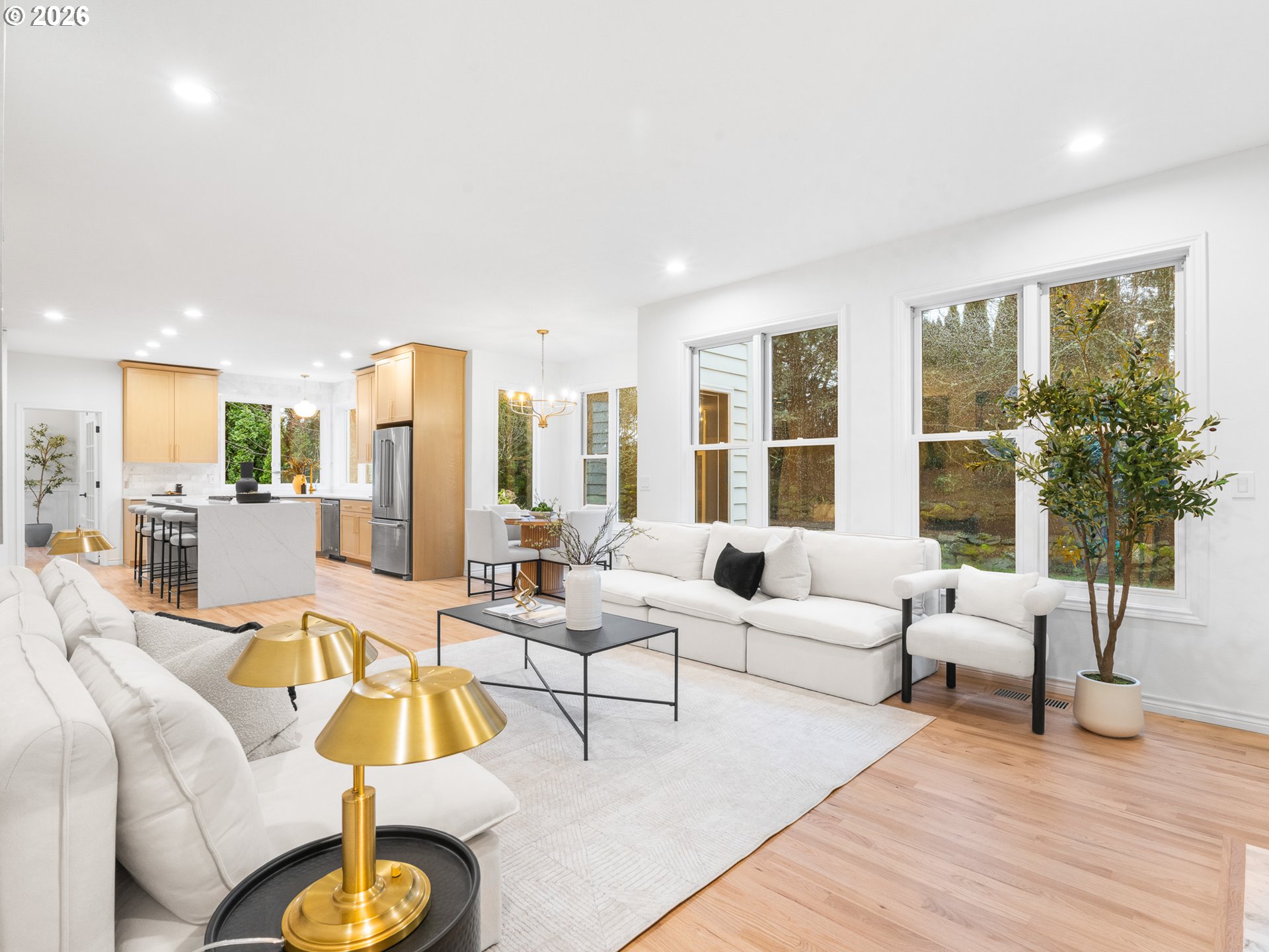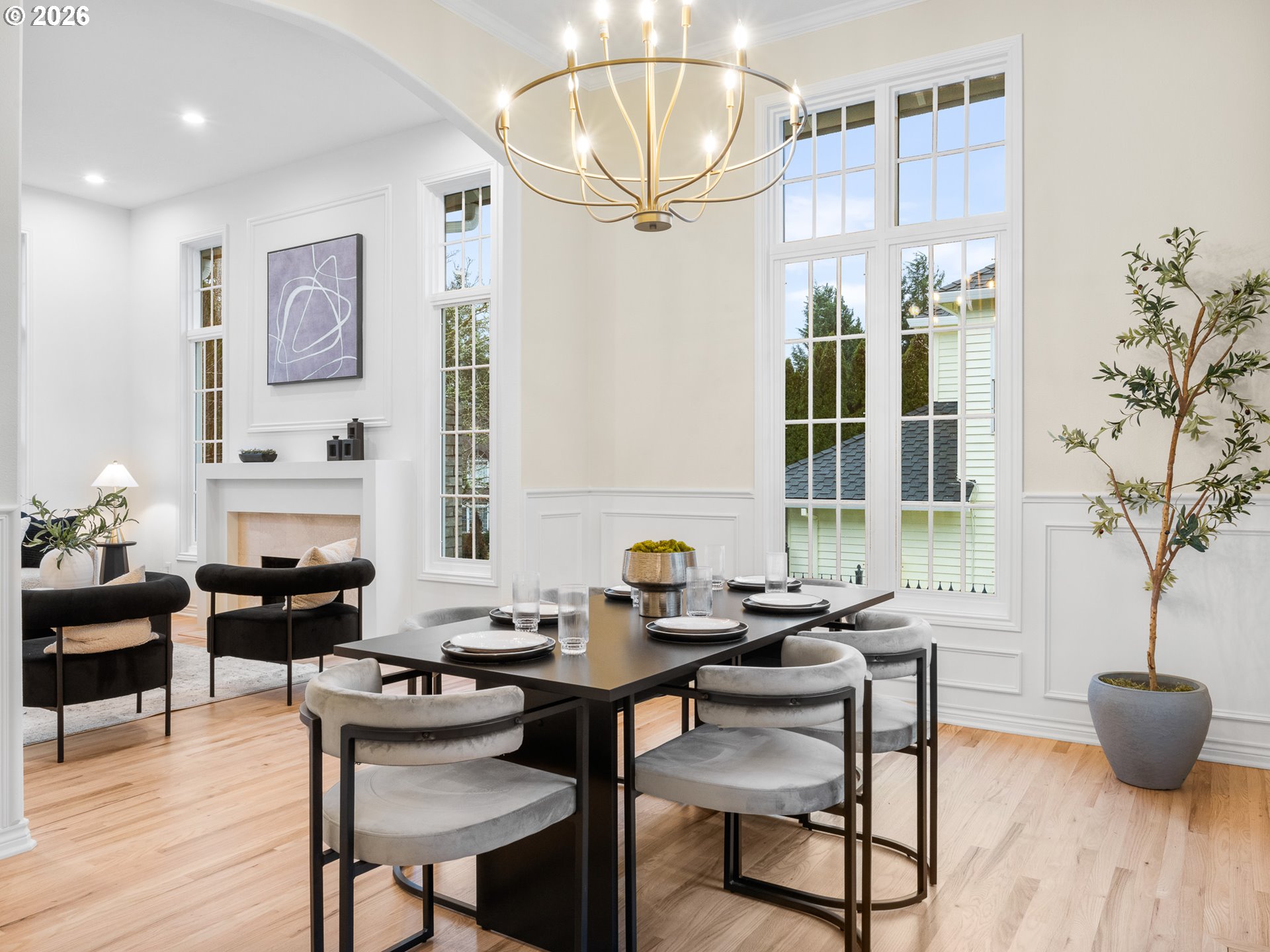 Hello! I’m a fully renovated, move-in-ready home offering 3,448 square feet of thoughtfully designed living space in Beaverton’s desirable Kemmer View Estates neighborhood. I span two levels, sit on nearly a quarter-acre lot, and feature an attached oversized three-car garage. My neighborhood is prized for its established residential character, larger lots, and quiet, low-traffic setting, while still being close to parks, walking routes, neighborhood coffee shops, restaurants, bars, and everyday amenities at Murrayhill and Progress Ridge. On my main level, dramatic oversized windows with soaring proportions flood my living spaces with natural light. My front entry showcases a beautiful stairwell with a statement light fixture and custom railing that draws light through the center of the home. I offer multiple inviting gathering spaces, including a living room with a gas fireplace and a separate family room with a wood-burning fireplace. My kitchen anchors the home with a full-size island with waterfall countertop and eat bar, built-in gas cooktop, stainless steel appliances, custom cabinetry, tilework, a double oven, and a floor-to-ceiling wine display behind glass paneling. I also feature both a formal dining room and a dining nook just off the kitchen. A paneled office provides flexibility as a fifth bedroom or flex space, and my main level includes a half bathroom and a dedicated laundry room with built-in cabinetry and solid surface counters for everyday convenience. Two stairwells lead upstairs, including a secondary staircase off the laundry room. Upstairs, I offer four spacious bedrooms filled with natural light. My primary suite is a true retreat with a walk-in closet and spa-inspired bathroom featuring a soaking tub, walk-in shower, and extensive tilework, while a second full bathroom serves the remaining bedrooms. Outside, I offer a private back patio and generous yard space, perfect for relaxing or entertaining while enjoying the rare scale of my setting.