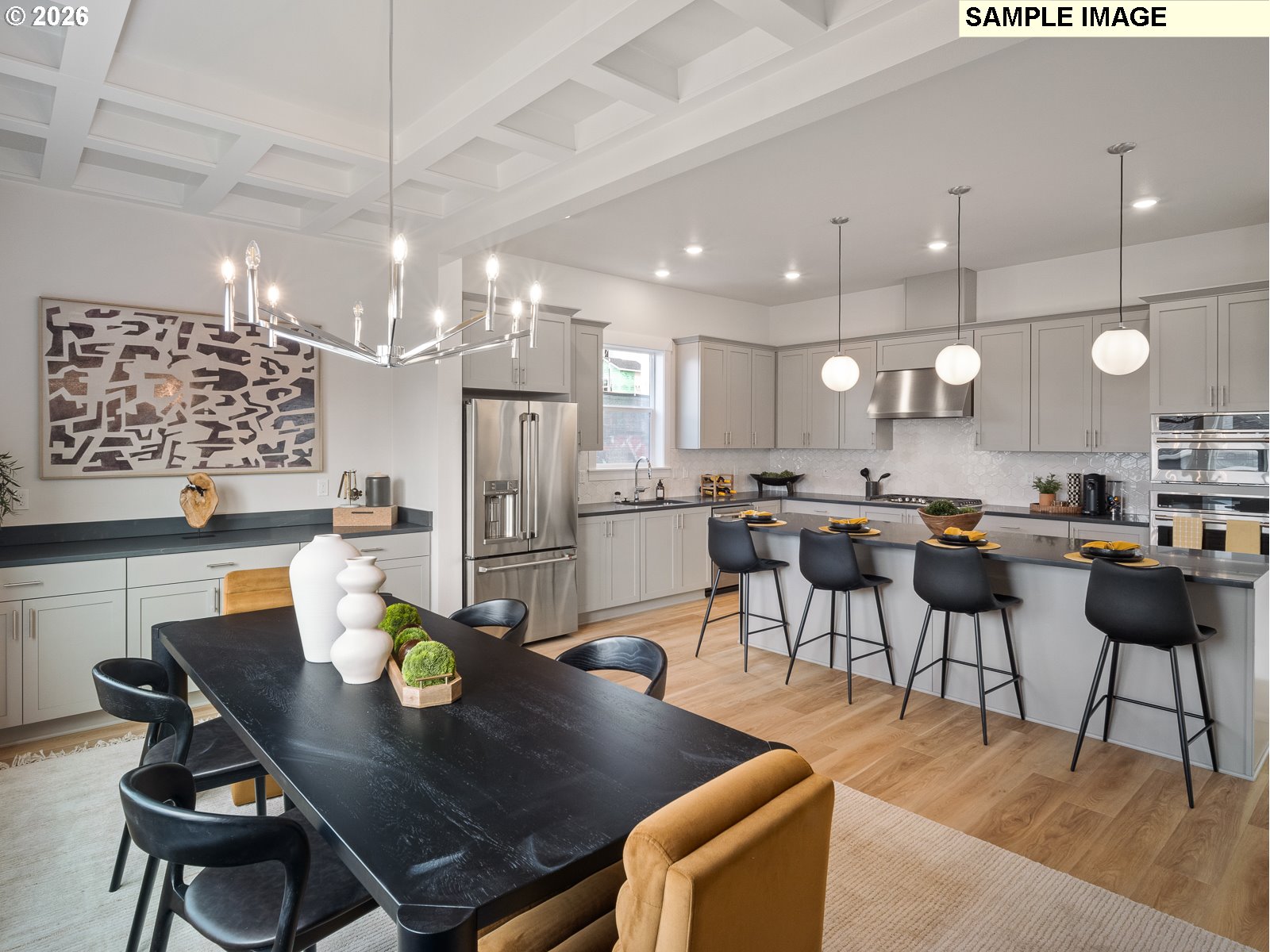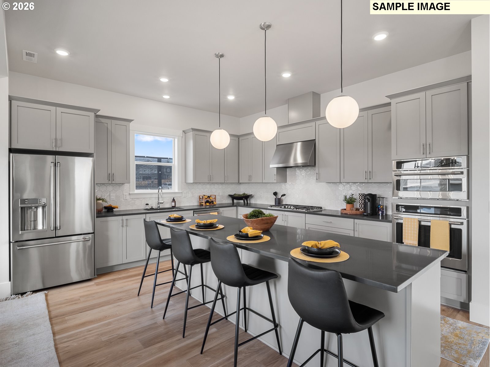 Step into the Tuscany Tuck Under, where thoughtful design, elevated finishes, and generous living spaces come together in a home that truly stands apart. A rare three-car side-by-side garage offers exceptional flexibility for vehicles, storage, or weekend adventure gear. Inside, the expansive great room seamlessly connects the kitchen, living, and dining areas—perfect for both everyday living and entertaining. The kitchen is rich with detail, featuring a large island, pantry, soft-close drawers, and a convenient slide-out garbage cabinet. The dining room is elevated by a beautiful coffered ceiling, adding architectural interest and warmth.The main level also includes a dedicated office ideal for working from home, along with a second living room that offers additional space for relaxing, hosting, or creating a media or play area. These purposeful spaces flow with style and intention, showcasing designer-curated, high-end finishes throughout. Upstairs, spacious bedrooms, ample storage, and a serene primary suite create a private retreat. Blending modern functionality with timeless design, this home delivers the space, comfort, and style to truly make it your own.