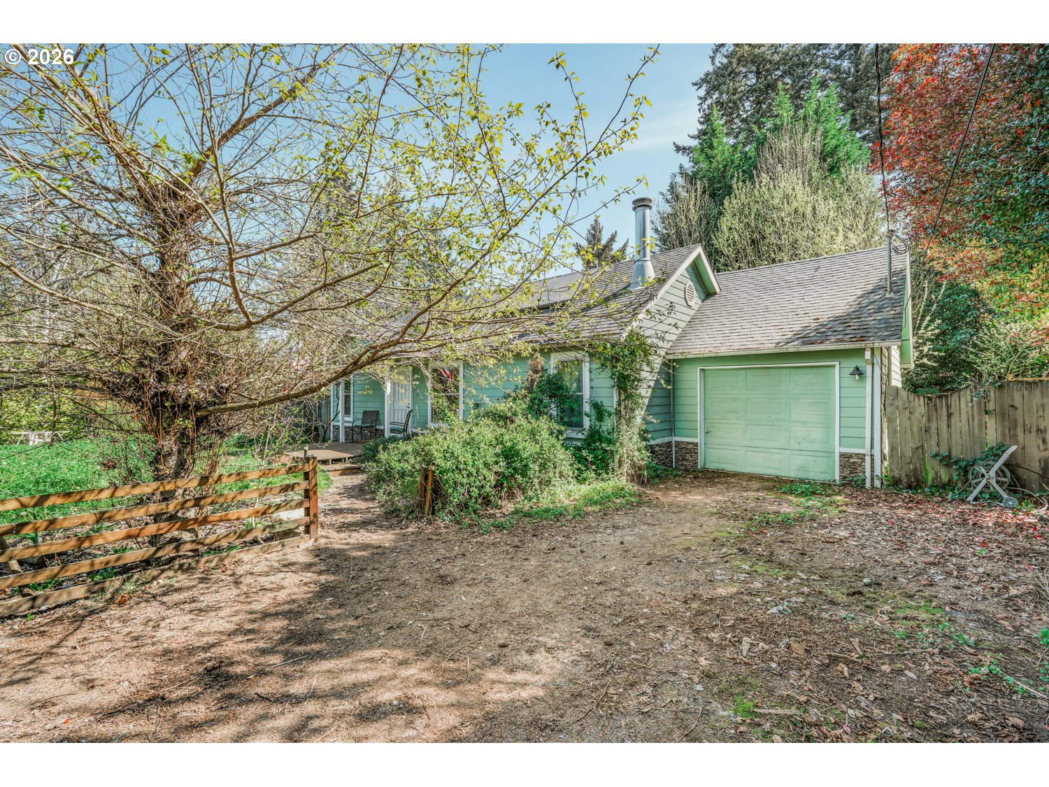 Charming cottage on a large, private lot with incredible potential! The oversized lot is zoned for multi-family (buyer to do due diligence), offering future development opportunities. Inside, you’ll find a spacious living room with hardwood floors and a cozy fireplace. The kitchen features stainless steel appliances and flows into an adjacent dining area with a door leading to a covered patio making it perfect for indoor/outdoor entertaining. The home offers two comfortable bedrooms and an updated bathroom with a tub/shower combo. A dedicated laundry room with built-ins and backyard access doubles as a functional mudroom that's ideal after gardening or outdoor activities. The fully fenced backyard provides space for a garden or additional outdoor living. Major updates include approximately 90% new siding, solar panels installed in 2016/2017, new windows (2021/2022), all new doors except the front, and a newer roof (approx. 2014). Excellent location close to MAX, the high-tech corridor, Intel, and Nike. A rare opportunity with both charm and future potential!