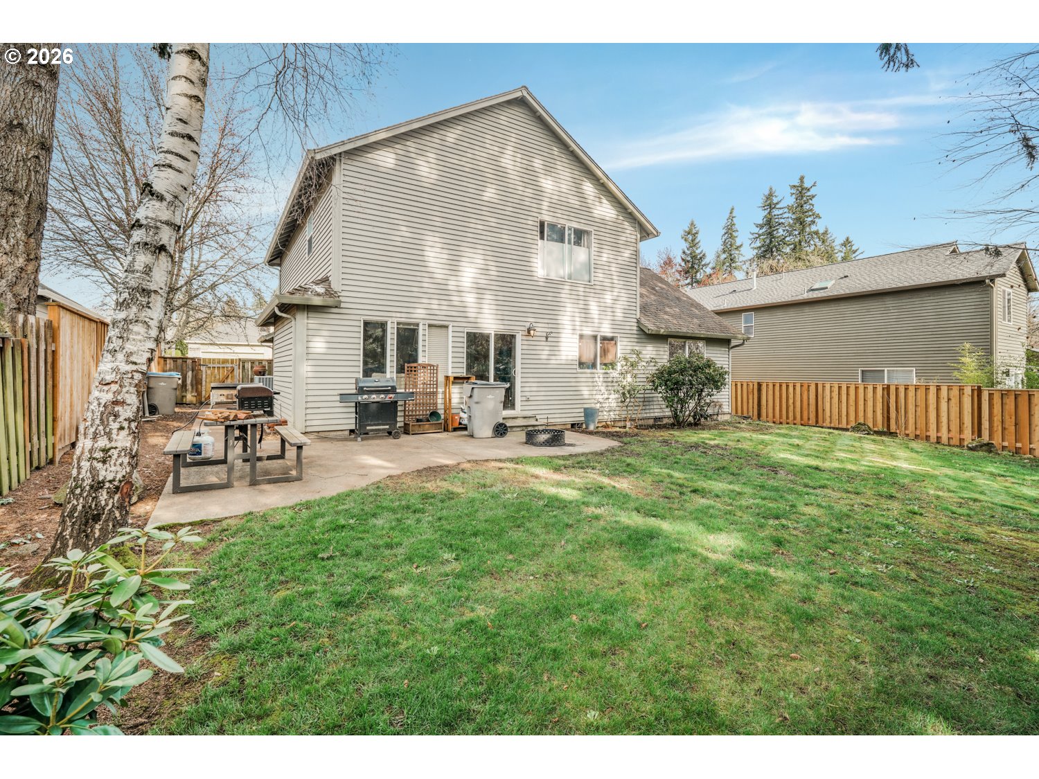 Beautiful Craftsman-style 3 bedroom, 2.5 bath home on a quiet cul-de-sac in the friendly and safe Woodhaven neighborhood. Enjoy nearby walking trails, a new pedestrian bridge within walking distance, and access to excellent schools with some of the highest ratings in Oregon. The bright living room welcomes you with a vaulted ceiling and cozy gas fireplace, flowing seamlessly into the dining area making it perfect for entertaining. The kitchen features Energy Star–qualified stainless steel appliances (new in 2020), an eat bar, pantry, and an eating space with sliding doors leading to the backyard patio that's ideal for morning coffee or outdoor dining. The adjoining family room features hardwood floors refinished in 2022. Upstairs, the spacious primary suite offers a walk-in closet and private bath. Two additional bedrooms, a full guest bath, and a convenient upstairs laundry room with sink complete the upper level.Enjoy the large fenced backyard with garden space, sprinkler system, and a newly replaced section of fencing (2026). Fantastic location just minutes to shopping, dining, schools, Tualatin Island Golf Course, and easy access to Hwy 99W for commuting.