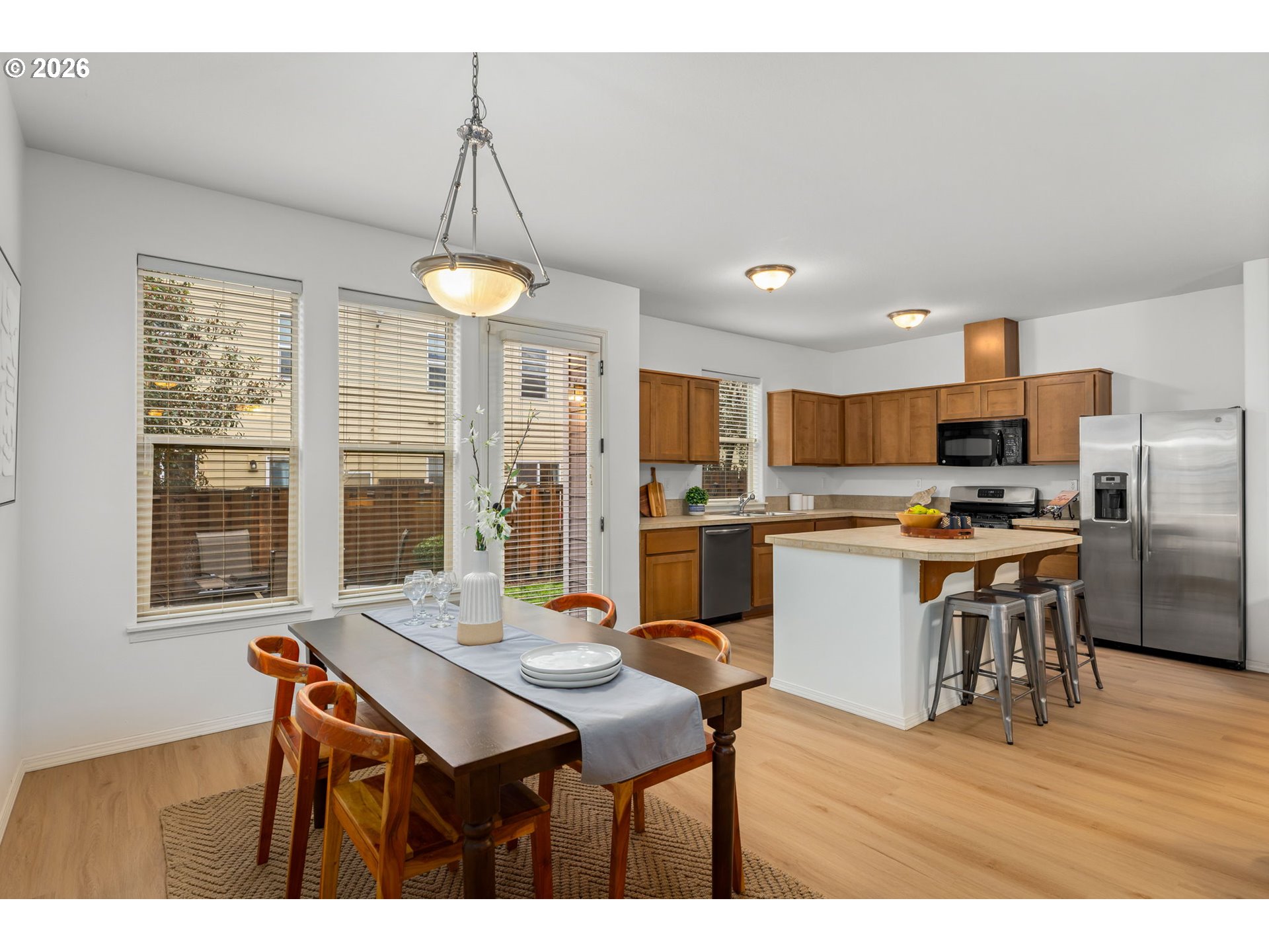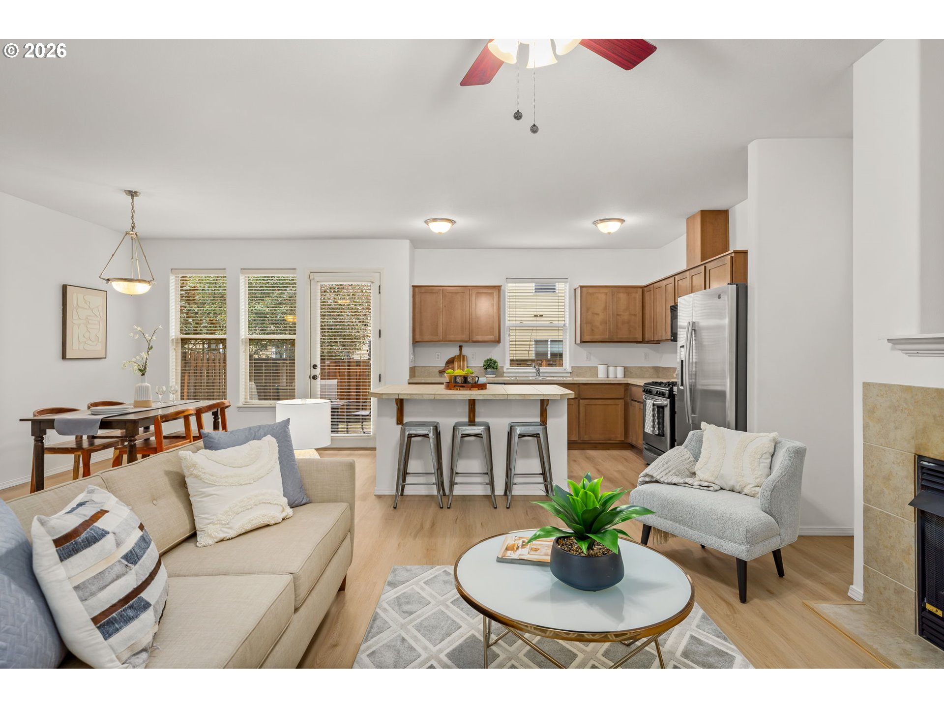 ***OPEN HOUSES THIS WEEKEND! Saturday 2/28 and Sunday 3/1 from 1-3pm!***With ALL NEW interior paint, gorgeous new LVP on the main, and pristine NEW carpet upstairs, this spacious home is bright and airy with oversized windows! High ceilings on both levels. The greatroom features a large living space with gas fireplace and well thought-out kitchen with gas stove, stainless appliances, and island with seating. From the dining room, enjoy easy access to a fenced backyard with oversized patio. Upstairs is a luxurious primary bedroom with ensuite bathroom, soaking tub, double sinks, and walk-in closet. Conveniently located laundry room with folding counter and newer washer & dryer. Two large bedrooms with walk-in closets and oversized bathroom upstairs. Convenient location near Intel, Nike, public transportation, shopping, dining and parks. All appliances stay and no HOA.