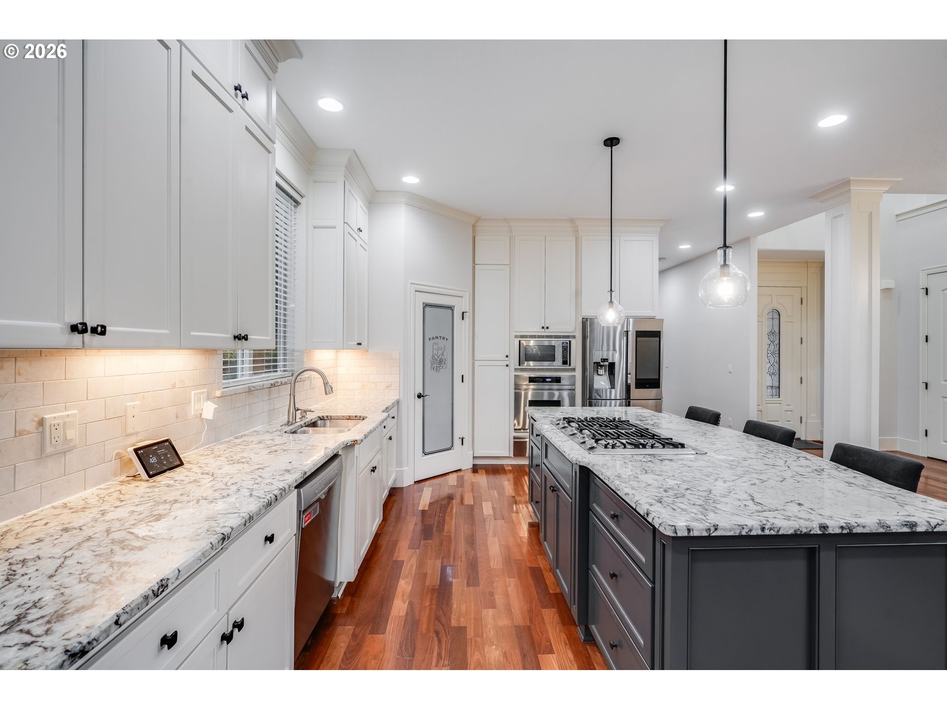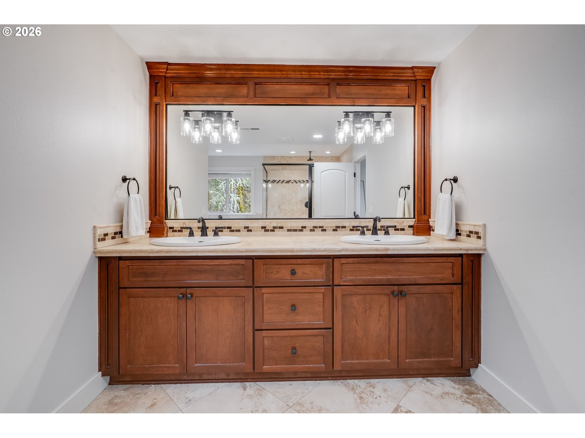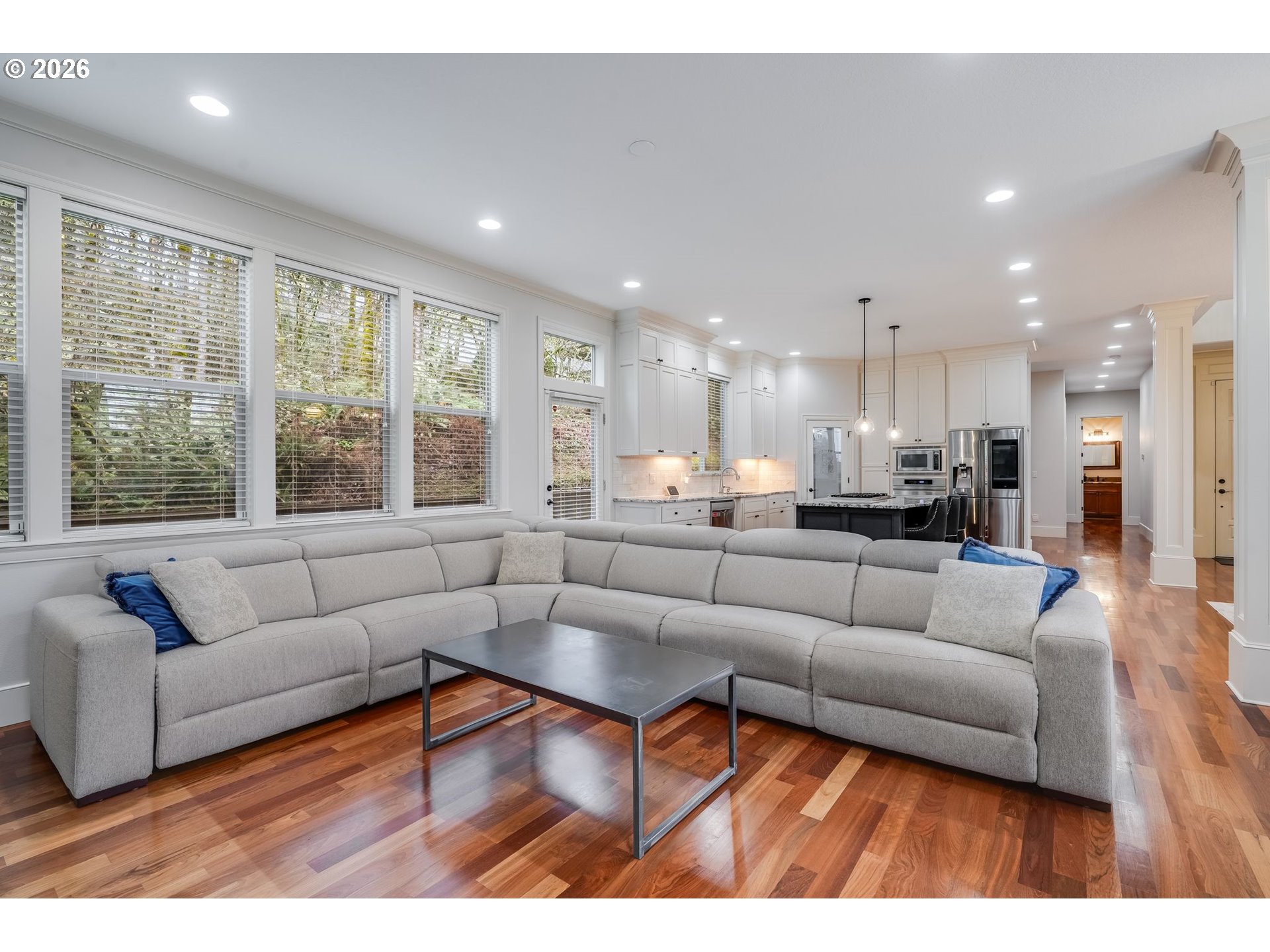 Tucked into the heart of Forest Heights, this beautifully updated residence offers a rare blend of refined living and serene privacy—backing to lush green space for a true retreat-like setting, all with no HOA. From the moment you arrive, the home unfolds with a sense of warmth and sophistication, where hardwood floors span the main level and natural light fills the open, thoughtfully designed spaces. The great room floor plan invites effortless living and entertaining, anchored by a gas fireplace with custom built-ins and peaceful views of the surrounding greenery. The fully updated kitchen is both elegant and functional, featuring a large island with seating, walk-in pantry and seamless access to the backyard and deck—perfect for indoor-outdoor living. A formal dining room with classic wainscoting adds a touch of timeless charm. The main level offers exceptional flexibility with a private office complete with built-ins and a full primary suite with a walk-in shower—ideal for guests or multigenerational living. Upstairs, a second expansive primary suite creates a true sanctuary with vaulted ceilings, double sinks, a soaking tub, walk-in shower, and a custom walk-in closet. Three additional bedrooms, a full bath, and a laundry room complete the upper level. Fresh interior and exterior paint, meticulous maintenance, and an oversized three-car garage elevate the home’s functionality. Ideally located near Forest Park, Mill Pond Park, Amaterra Winery and Forest Heights Village, with convenient access to NW 23rd, top private schools including French American and Catlin Gabel and major employers like Nike, Intel, Columbia, and Providence St. Vincent. Close-in Washington County living meets elevated privacy—this is more than a home, it’s a lifestyle.