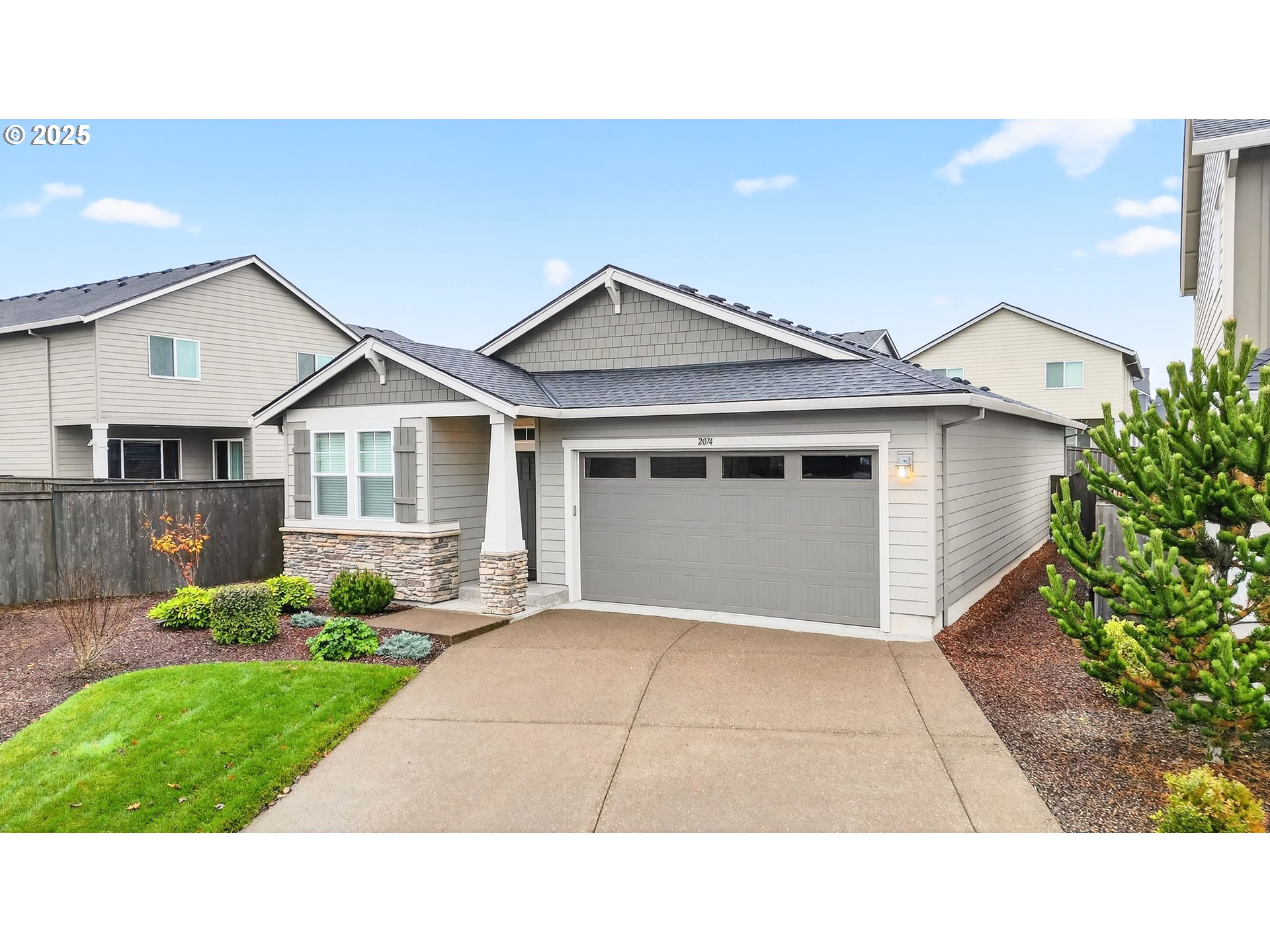 Welcome to this charming single-level Carlton plan home in Laurel Woods. Thoughtfully designed for comfort and convenience, this residence features granite slab kitchen countertops, solid wood cabinetry, a full-height tile backsplash, and a tankless hot water heater. The main living areas offer durable laminate plank flooring, with cozy carpet in the bedrooms for added warmth.Enjoy the natural light and easy indoor-outdoor living with a patio off the living room, plus front and back yard landscaping complete with a sprinkler system. Additional touches include 2" faux wood blinds throughout the home. What the seller loves most is the unbeatable location—just minutes to grocery stores, pharmacies, shopping, and banking. The neighborhood offers well-maintained sidewalks, perfect for daily walks, and a warm, welcoming community where neighbors are friendly and parks are always active with children and families.This home combines modern finishes, single-level convenience, and a walkable, community-oriented setting—truly a wonderful place to call home.