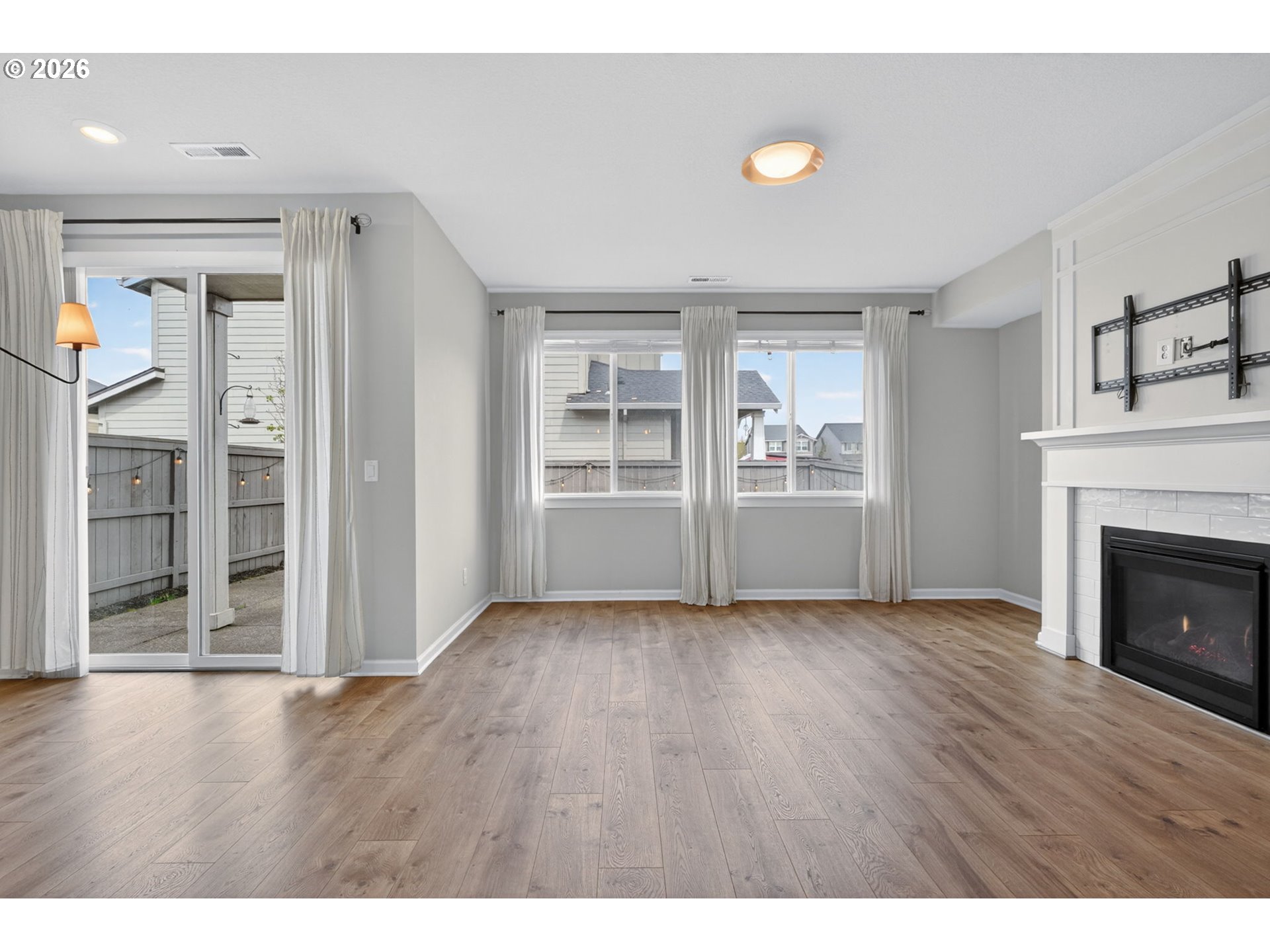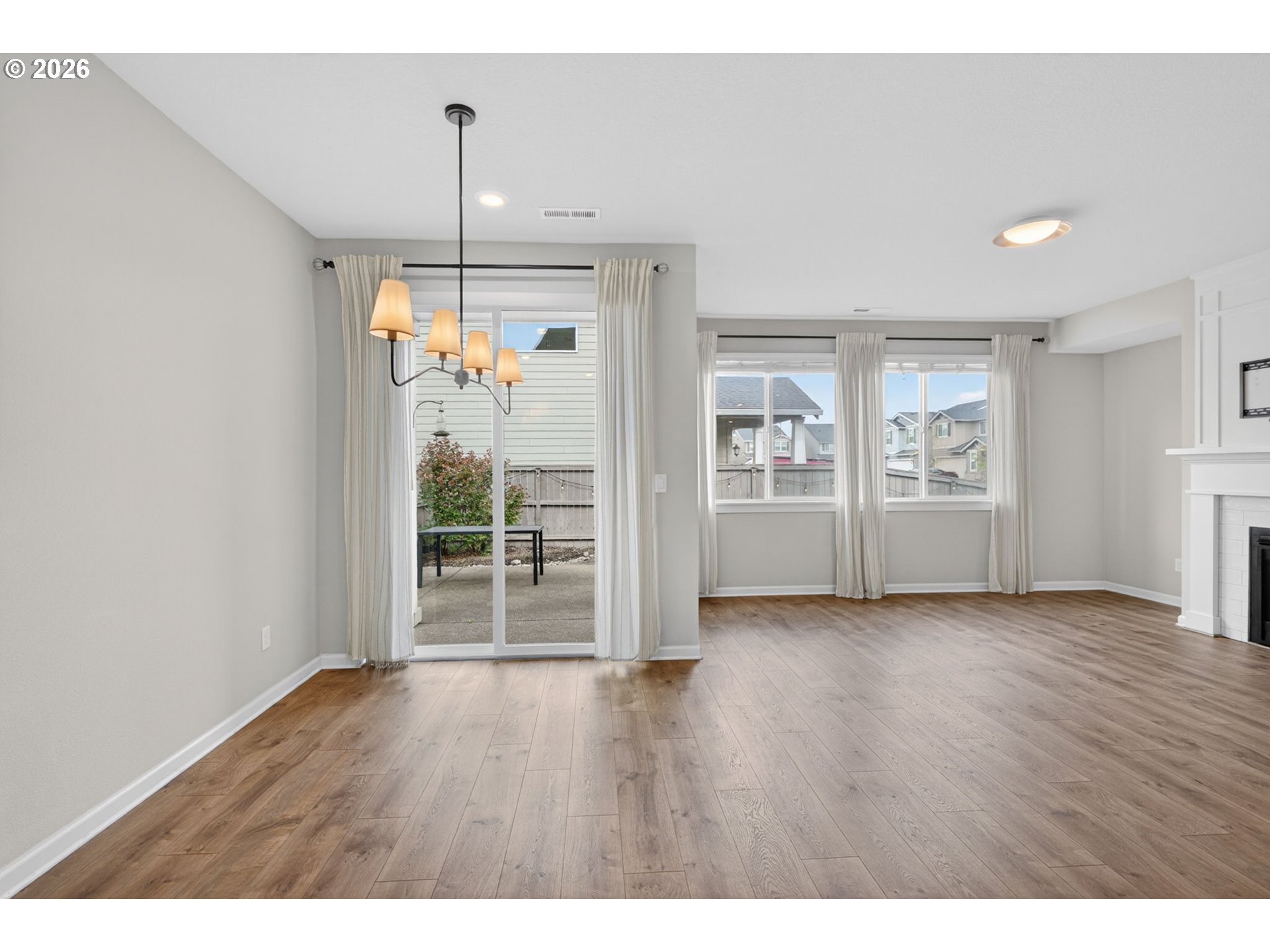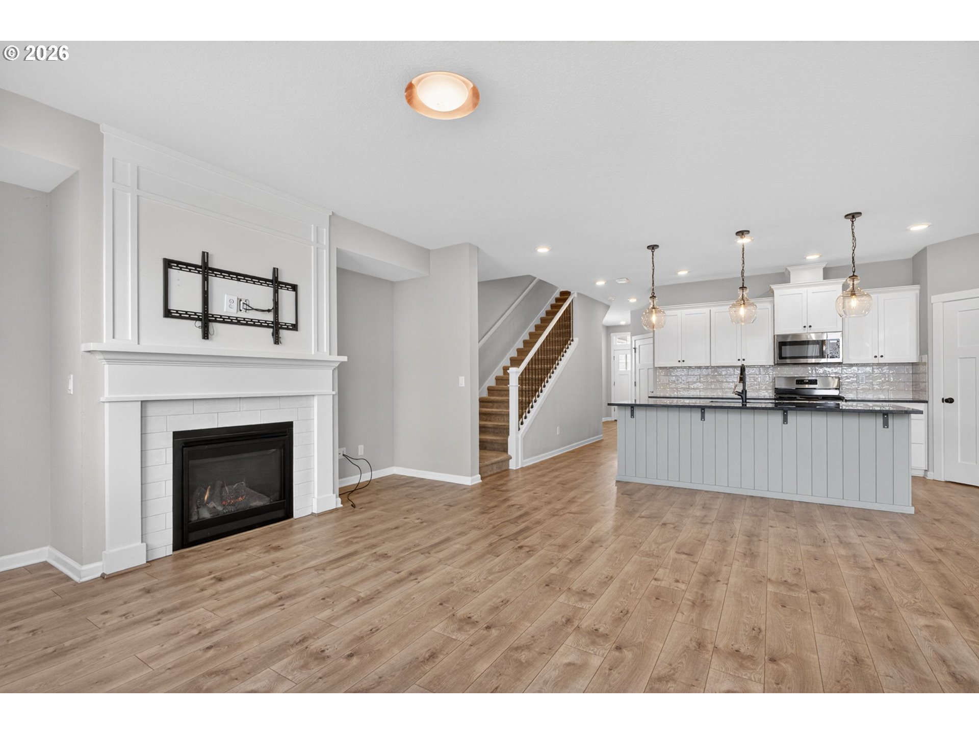 Beautifully appointed 3 bedroom, 2.5 bath residence set on a premium corner lot with a flat, fully usable backyard, offering the perfect setting for refined outdoor living, entertaining, or quiet relaxation. Built in 2018, this home showcases modern design, quality finishes, and effortless move in ready living.The open concept main level is both stylish and functional, featuring a well designed kitchen with granite countertops, an expansive island, and a walk in pantry, all flowing seamlessly into the living and dining areas. Stainless steel appliances, along with the washer, dryer, and garage refrigerator, are included for a truly turnkey experience. Central air conditioning and a tankless water heater provide year round comfort and efficiency.Upstairs, you’ll find all three bedrooms, a dedicated laundry room, and a versatile loft space ideal for a home office, media lounge, or additional living area. The guest bedroom offers added privacy and flexibility with a walk in closet and direct access to the bathroom, creating a secondary suite feel.Step outside to a covered patio and built in fire feature, perfect for elevated outdoor gatherings or relaxing evenings at home. The oversized garage offers generous storage, space for hobbies, and a 220V outlet ready for EV charging.A thoughtfully designed home that blends comfort, style, and functionality in a highly desirable setting.