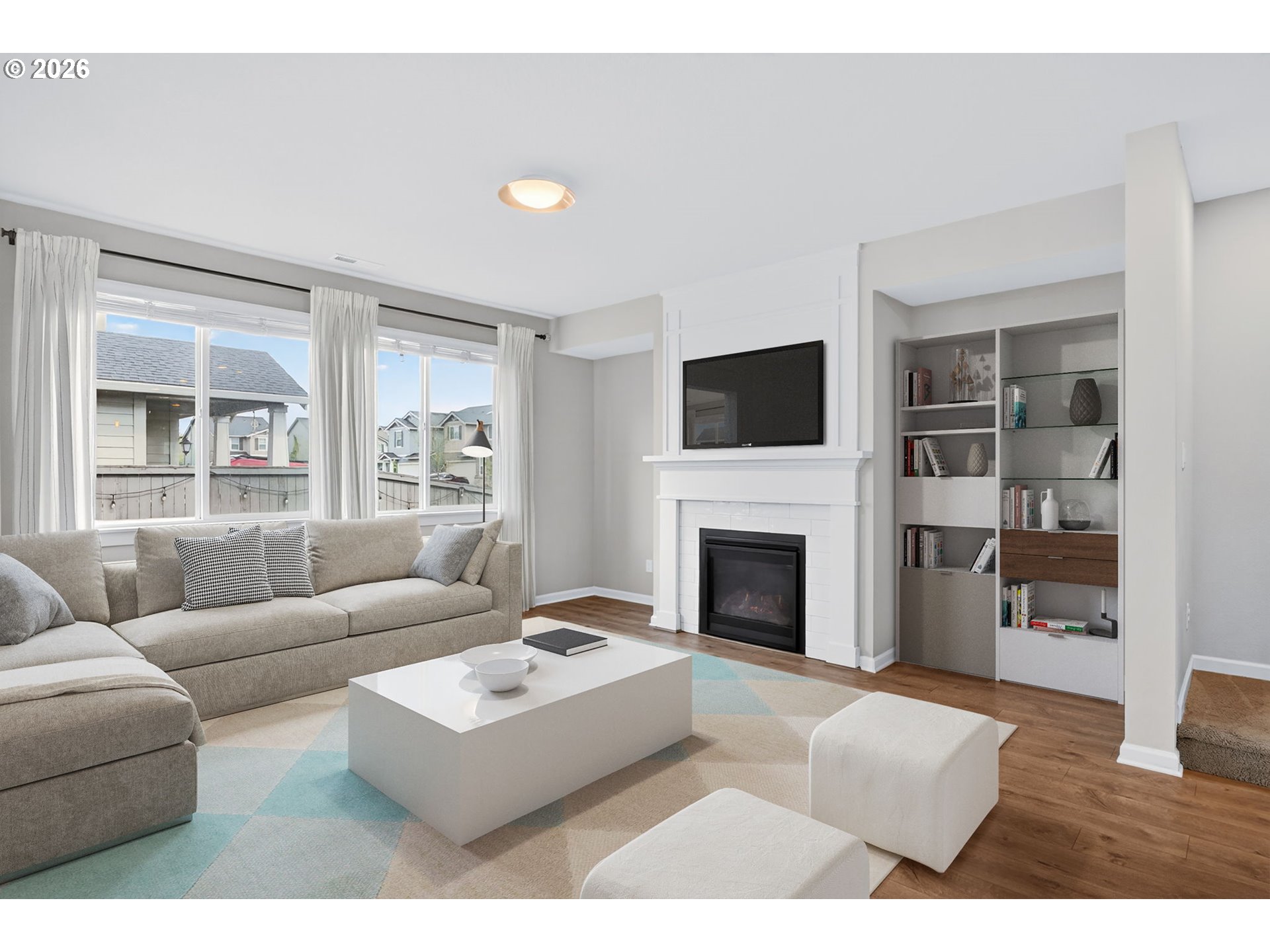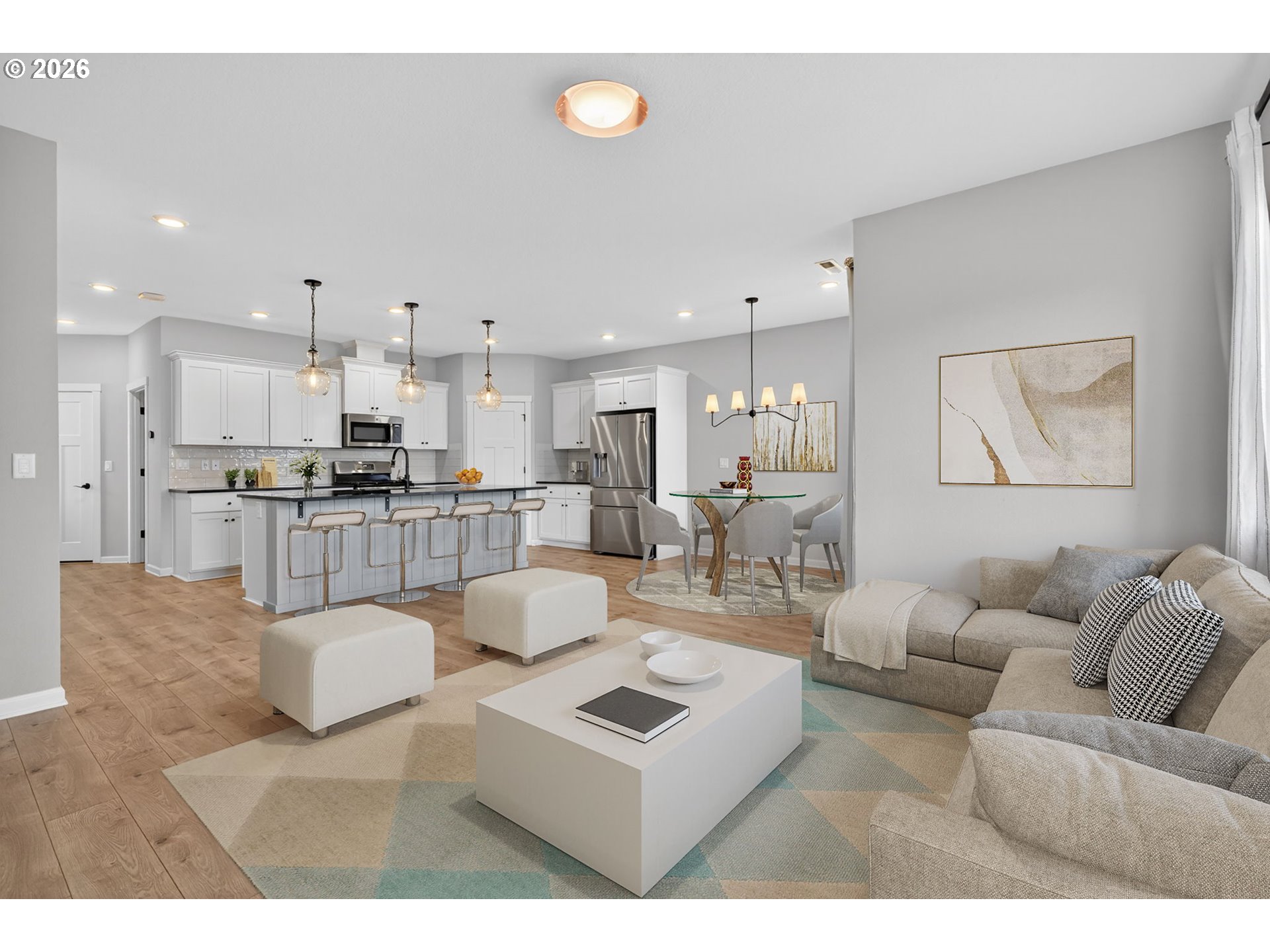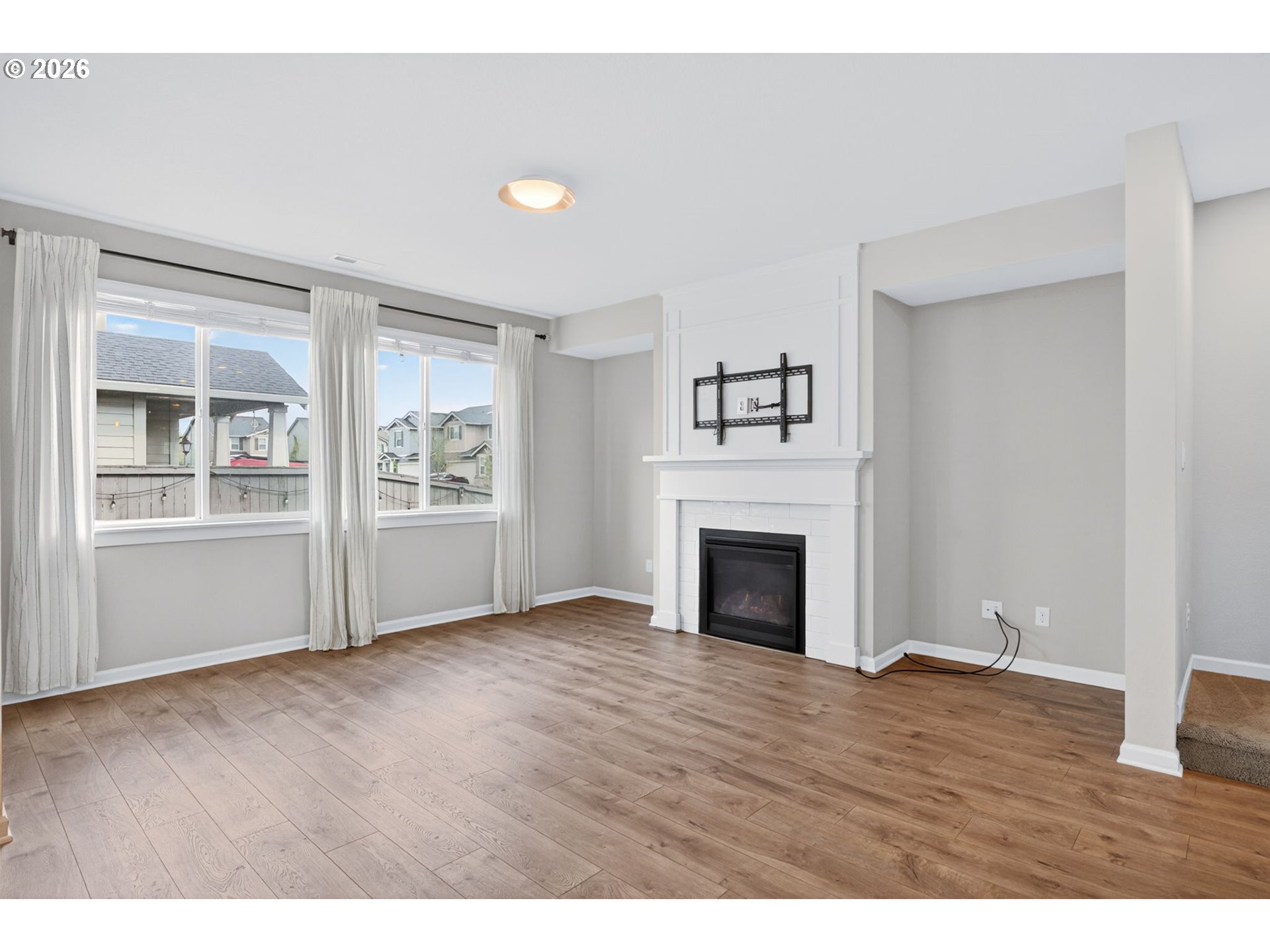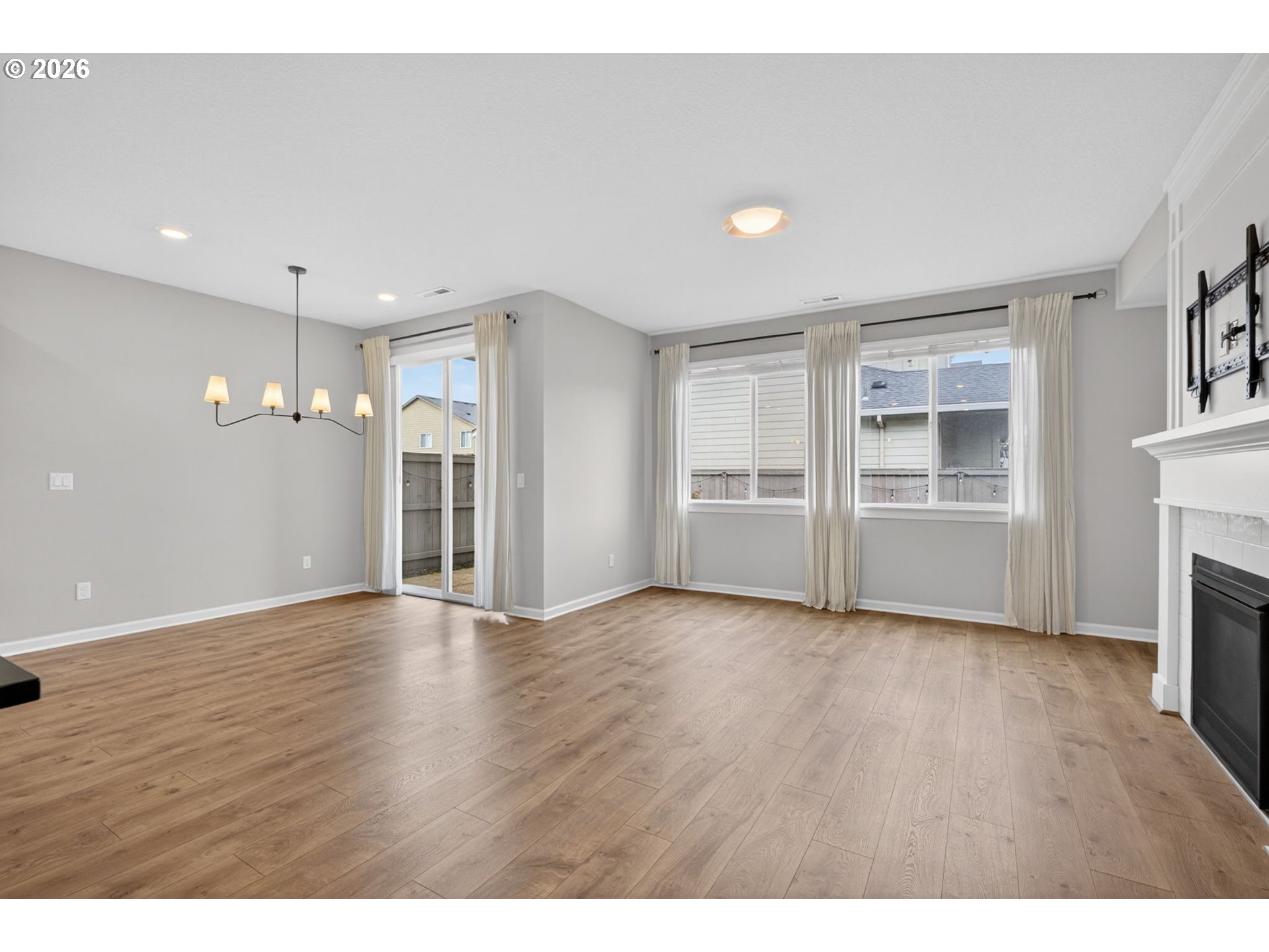 Beautifully appointed 3 bedroom, 2.5 bath residence set on a premium corner lot with a flat, fully usable backyard, offering the perfect setting for refined outdoor living, entertaining, or quiet relaxation. Built in 2018, this home showcases modern design, quality finishes, and effortless move in ready living.The open concept main level is both stylish and functional, featuring a well designed kitchen with granite countertops, an expansive island, and a walk in pantry, all flowing seamlessly into the living and dining areas. Stainless steel appliances, along with the washer, dryer, and garage refrigerator, are included for a truly turnkey experience. Central air conditioning and a tankless water heater provide year round comfort and efficiency.Upstairs, you’ll find all three bedrooms, a dedicated laundry room, and a versatile loft space ideal for a home office, media lounge, or additional living area. The guest bedroom offers added privacy and flexibility with a walk in closet and direct access to the bathroom, creating a secondary suite feel.Step outside to a covered patio and built in fire feature, perfect for elevated outdoor gatherings or relaxing evenings at home. The oversized garage offers generous storage, space for hobbies, and a 220V outlet ready for EV charging.A thoughtfully designed home that blends comfort, style, and functionality in a highly desirable setting.