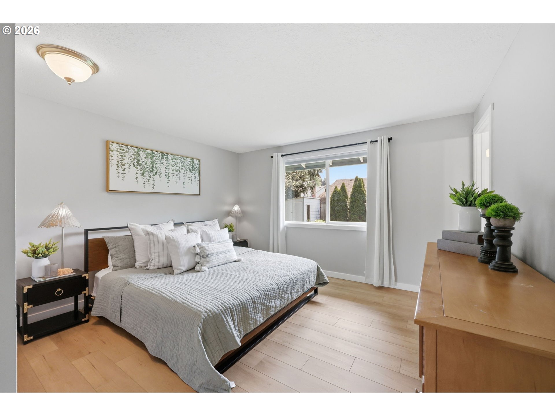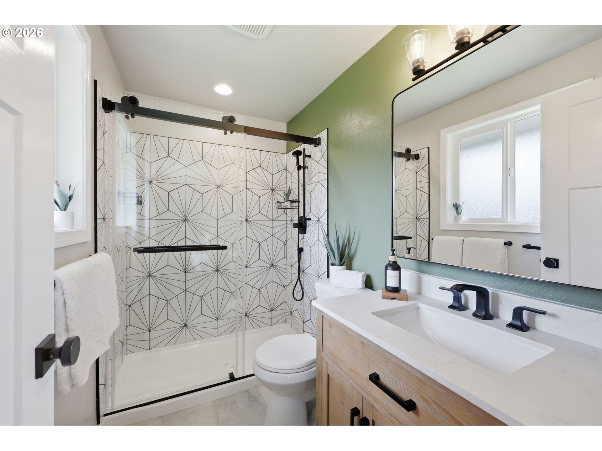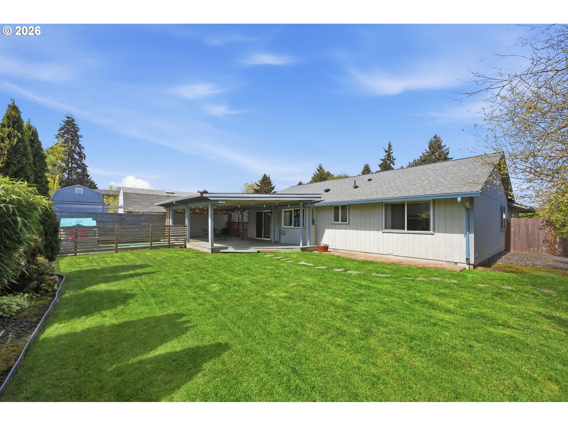 Curb appeal with a bonus!! The front yard is home to established fruit trees and blueberries creating a lush, productive landscape that greets you and your guests from the moment you arrive.Out back, the large fenced yard offers a versatile set up with separated areas for room to garden, relax or play! Plus a tool/storage shed to keep everything tidy. Entertain in style on the expansive covered back deck. Rain or shine, this space was made for year-round gathering. Inside, enjoy the ease of new LVT flooring throughout and a freshly remodeled primary bath with heated floors, new vanity, fixtures and bold tile walk in shower with sliding glass doors completed this year. Major systems have been taken care of with a new roof in 2021 and newer furnace and central air in 2020. Meaning worry-free living from day one. Located close to the exciting growth of South Hillsboro, with quick access to Powerline Trail and Reedville Creek Park.