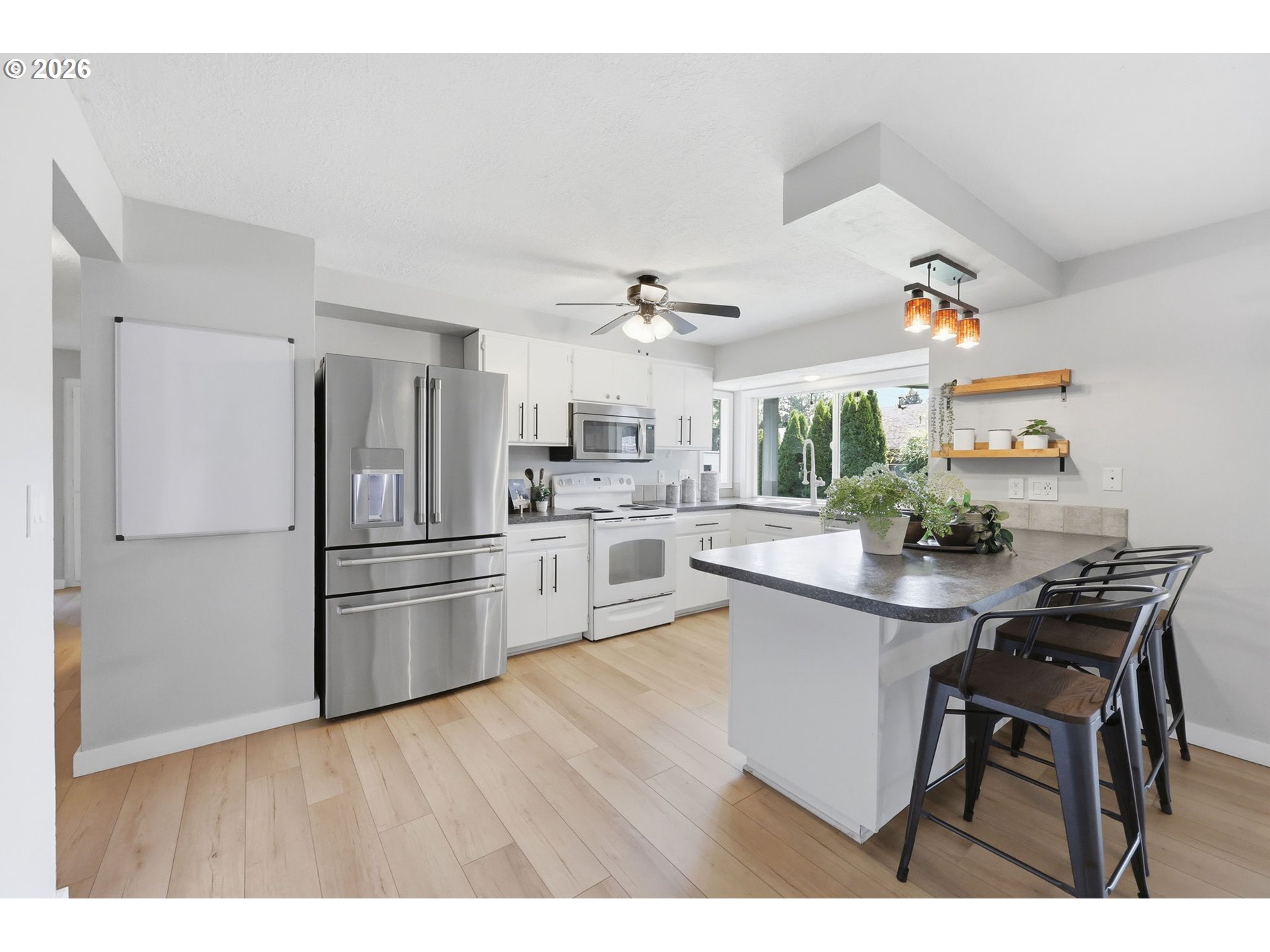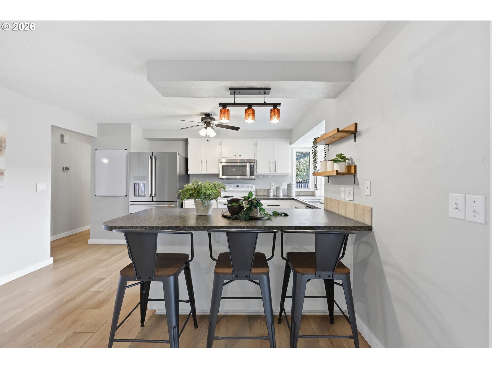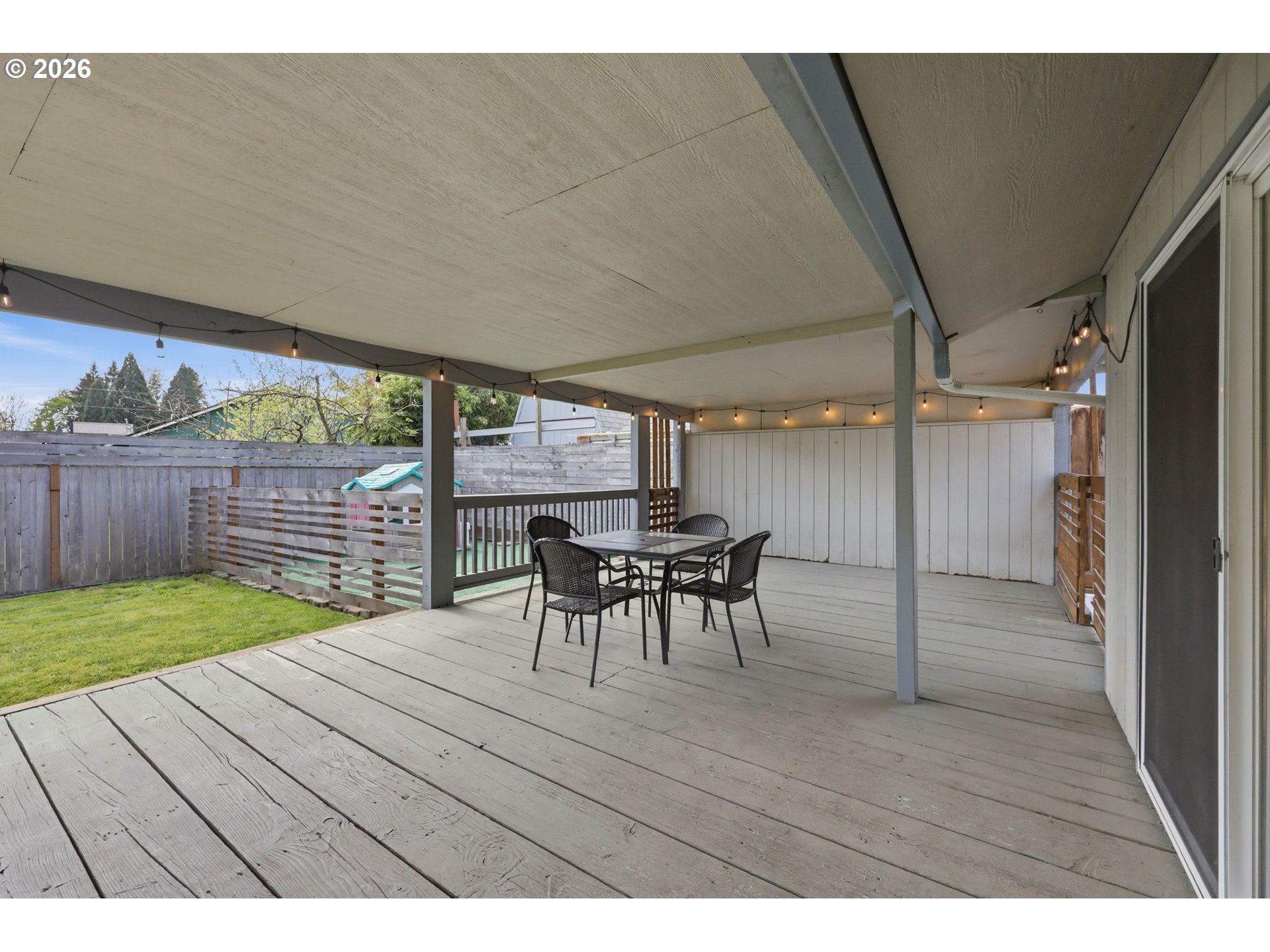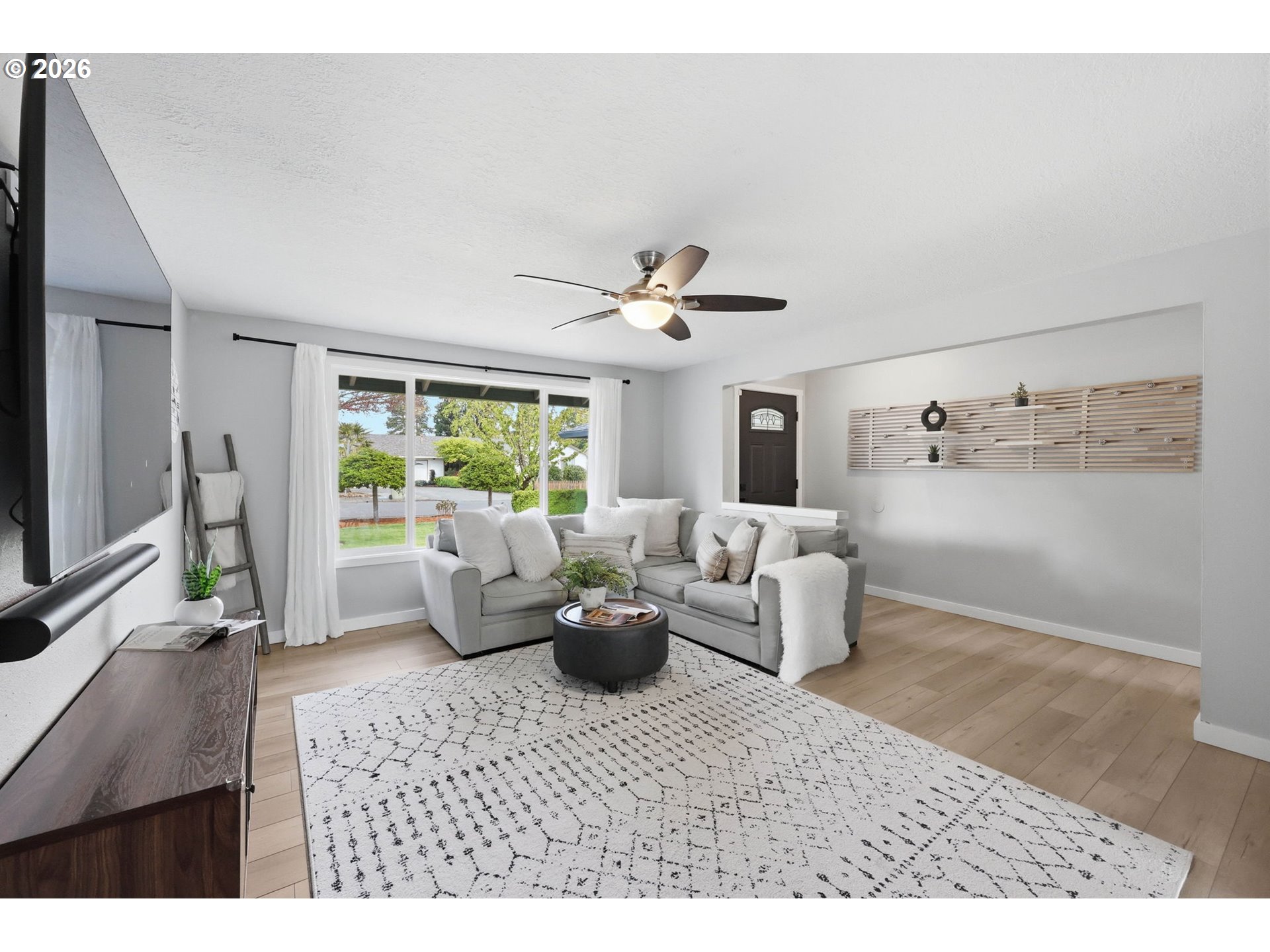 Curb appeal with a bonus!! The front yard is home to established fruit trees and blueberries creating a lush, productive landscape that greets you and your guests from the moment you arrive.Out back, the large fenced yard offers a versatile set up with separated areas for room to garden, relax or play! Plus a tool/storage shed to keep everything tidy. Entertain in style on the expansive covered back deck. Rain or shine, this space was made for year-round gathering. Inside, enjoy the ease of new LVT flooring throughout and a freshly remodeled primary bath with heated floors, new vanity, fixtures and bold tile walk in shower with sliding glass doors completed this year. Major systems have been taken care of with a new roof in 2021 and newer furnace and central air in 2020. Meaning worry-free living from day one. Located close to the exciting growth of South Hillsboro, with quick access to Powerline Trail and Reedville Creek Park.